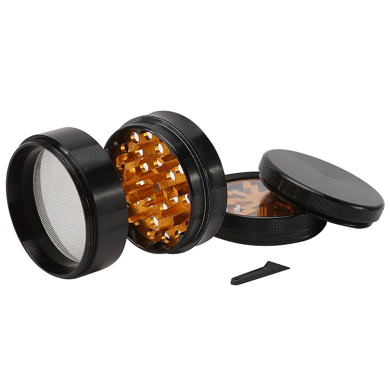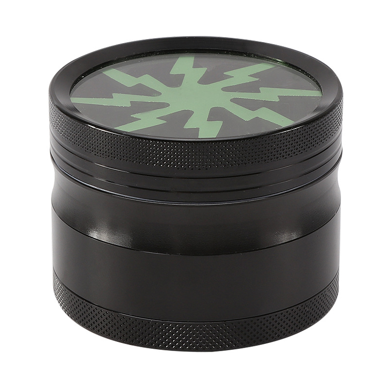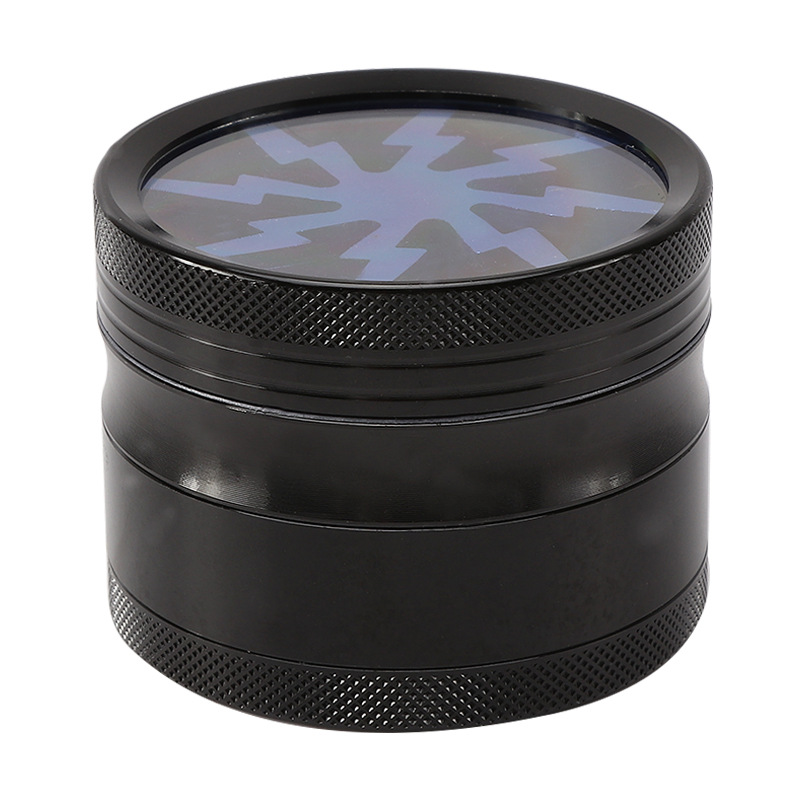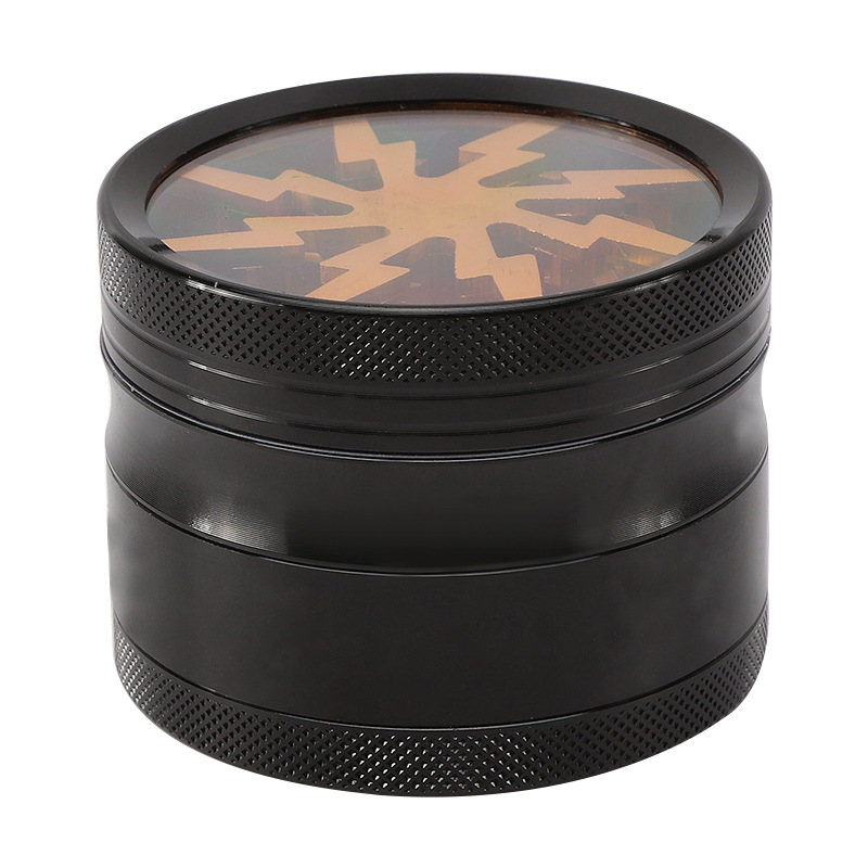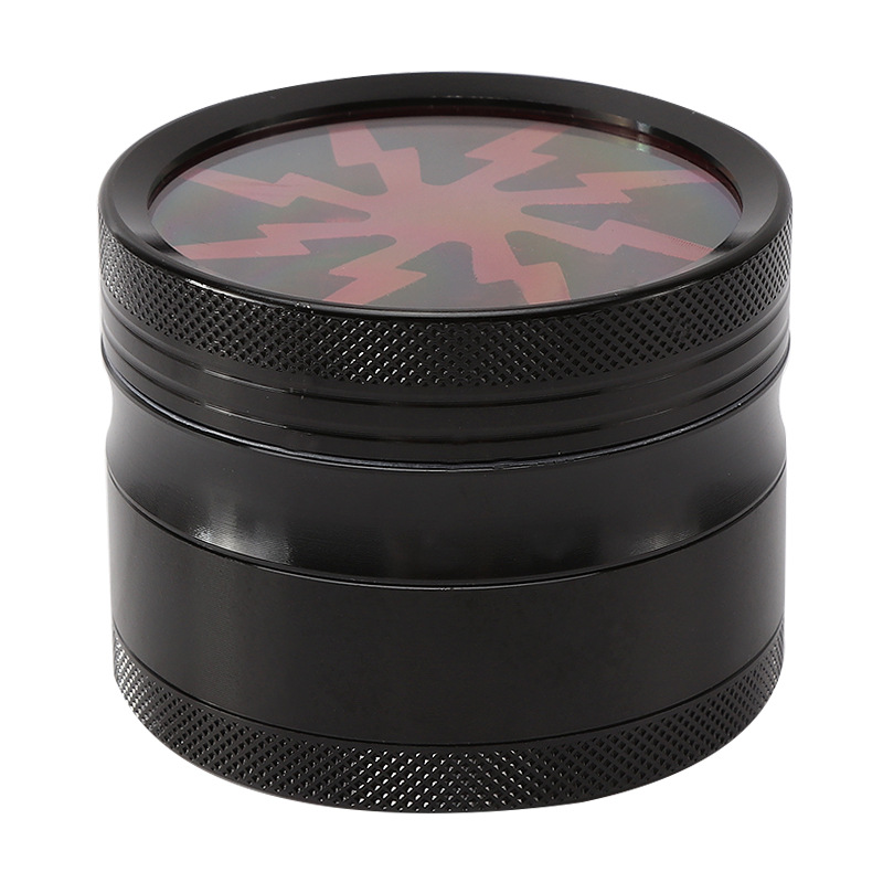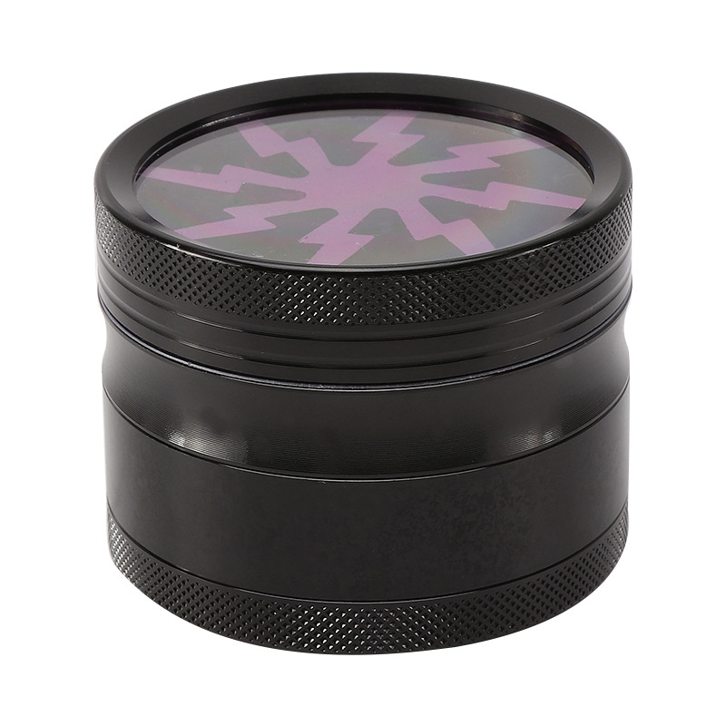 跨境热销63MM铝合金闪电款平板磨烟器 现货多色四层金属磨烟器
