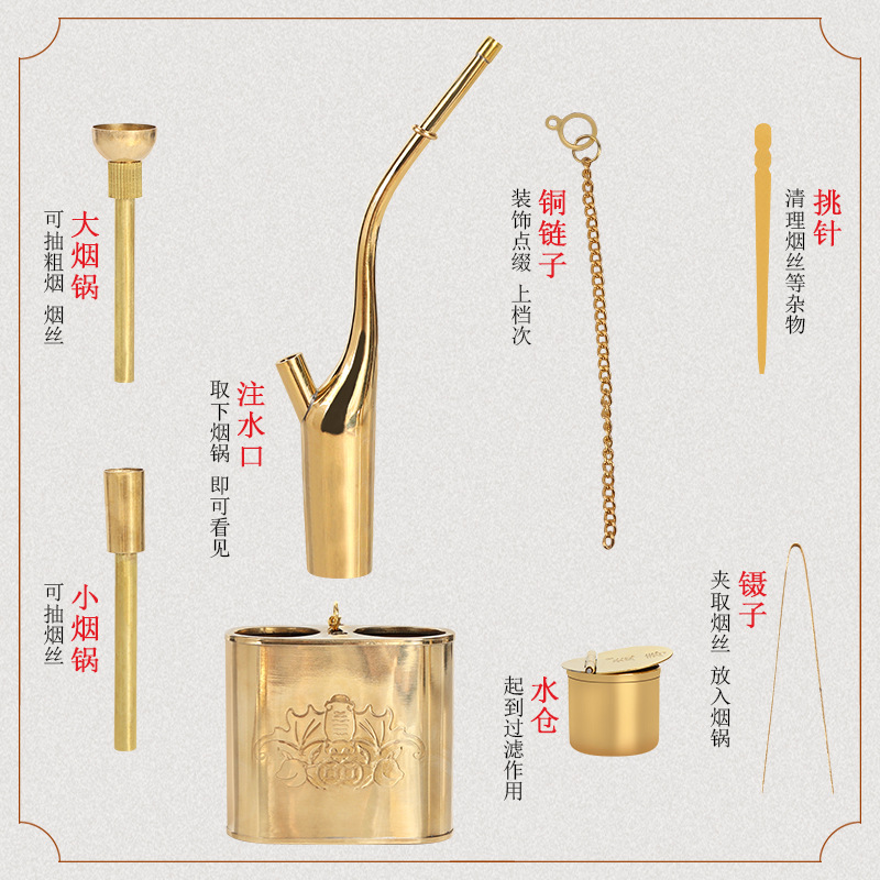 复古老式金属铜制水烟壶便携创意手握式两用健康水过滤水烟袋
