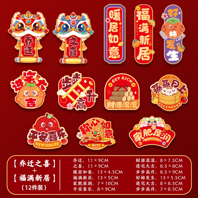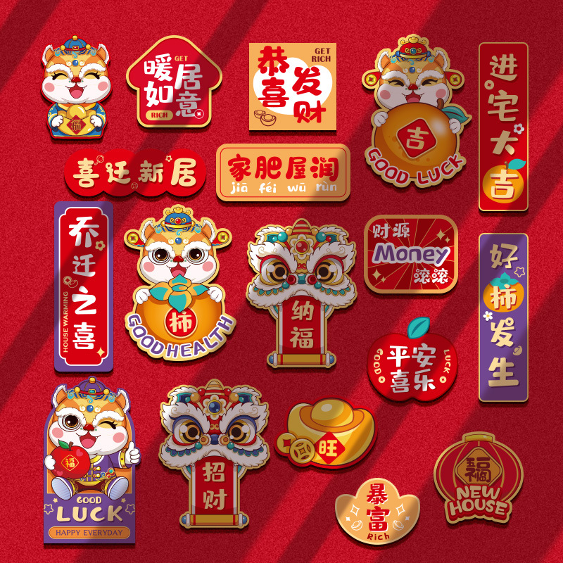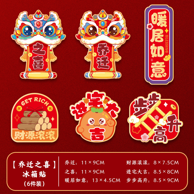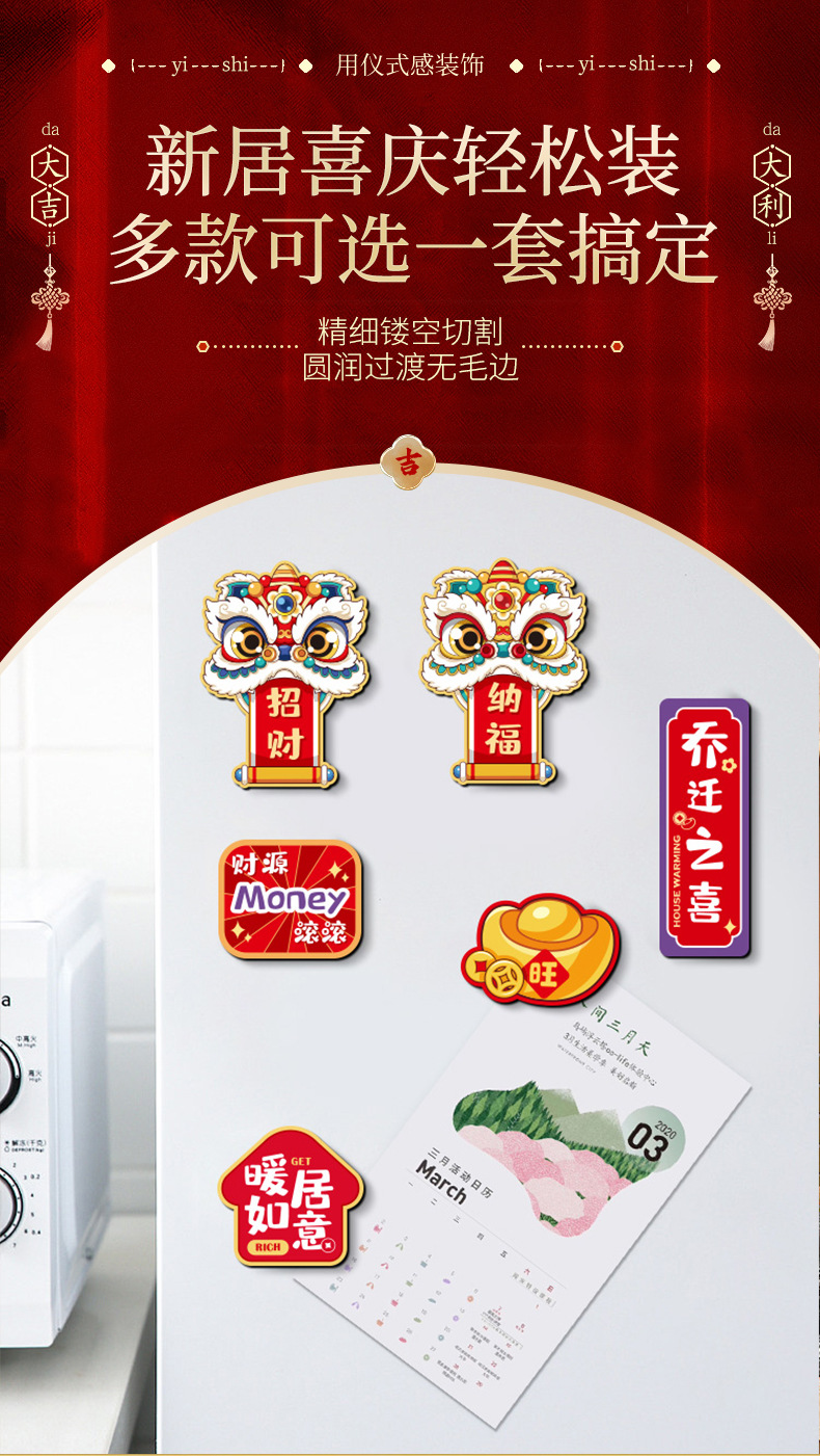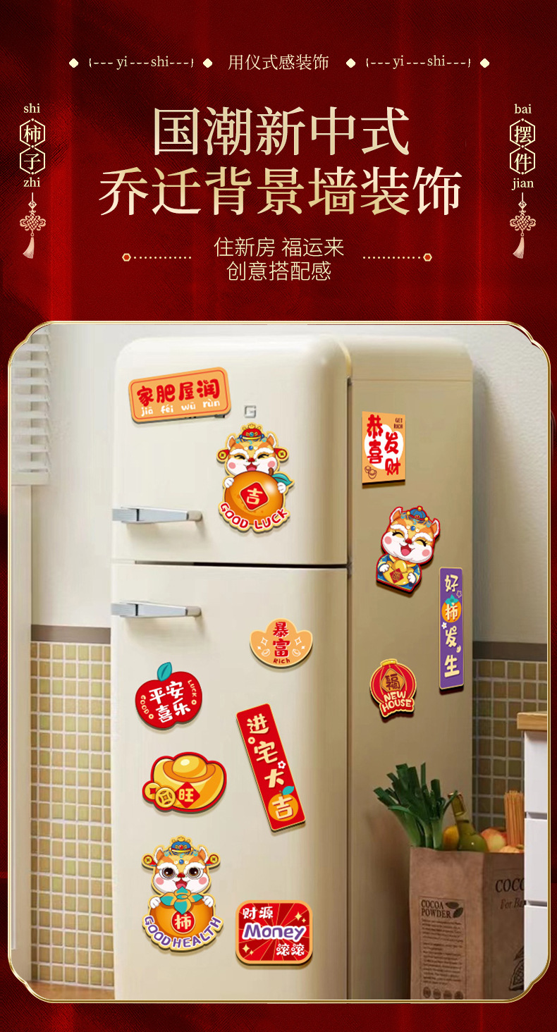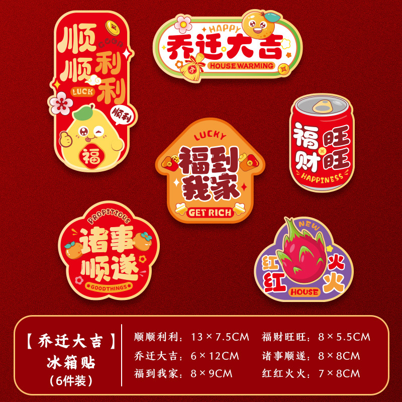 乔迁之喜装饰磁吸式卡通冰箱贴创意磁贴新居进宅大吉搬家布置用品