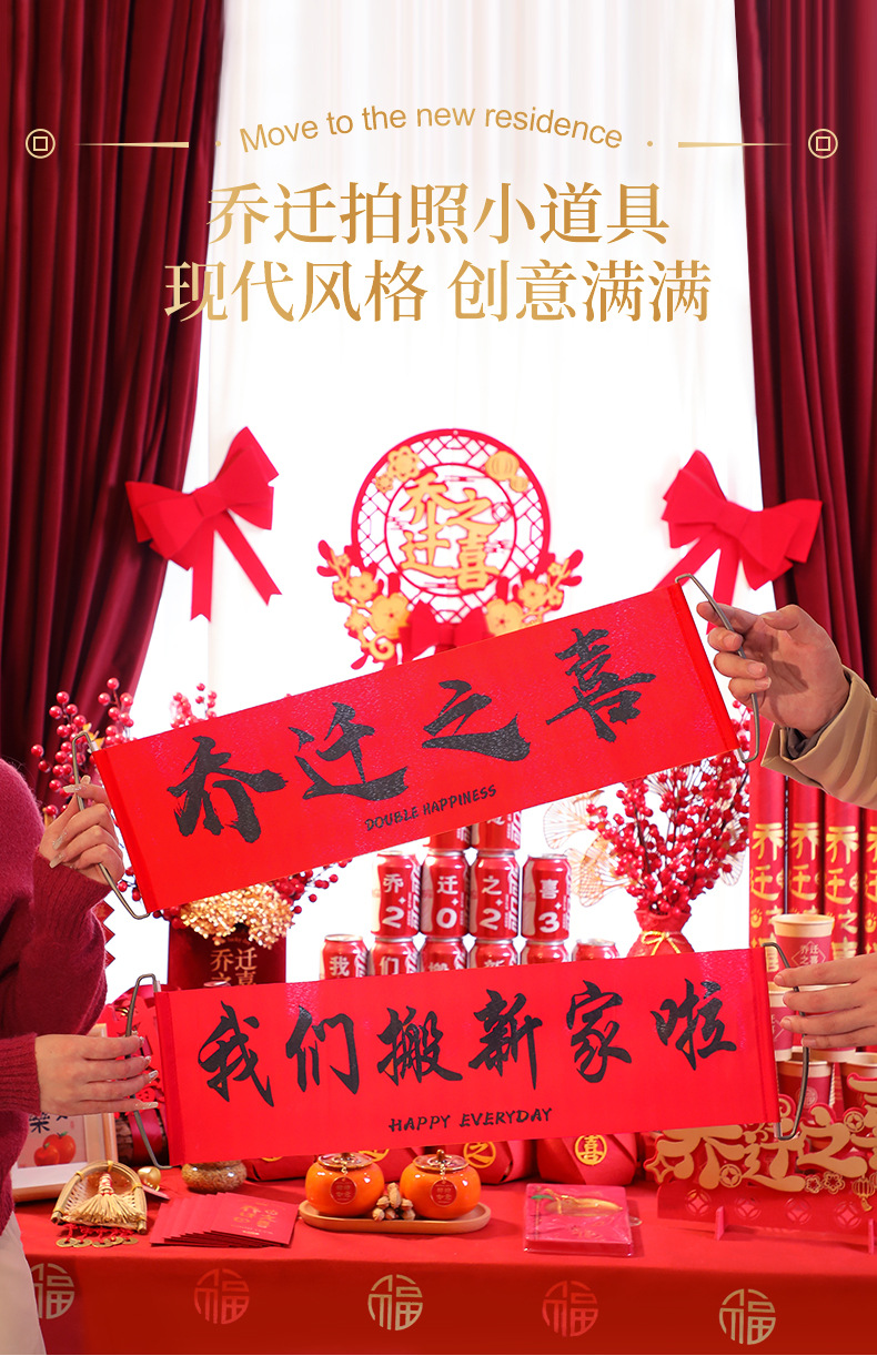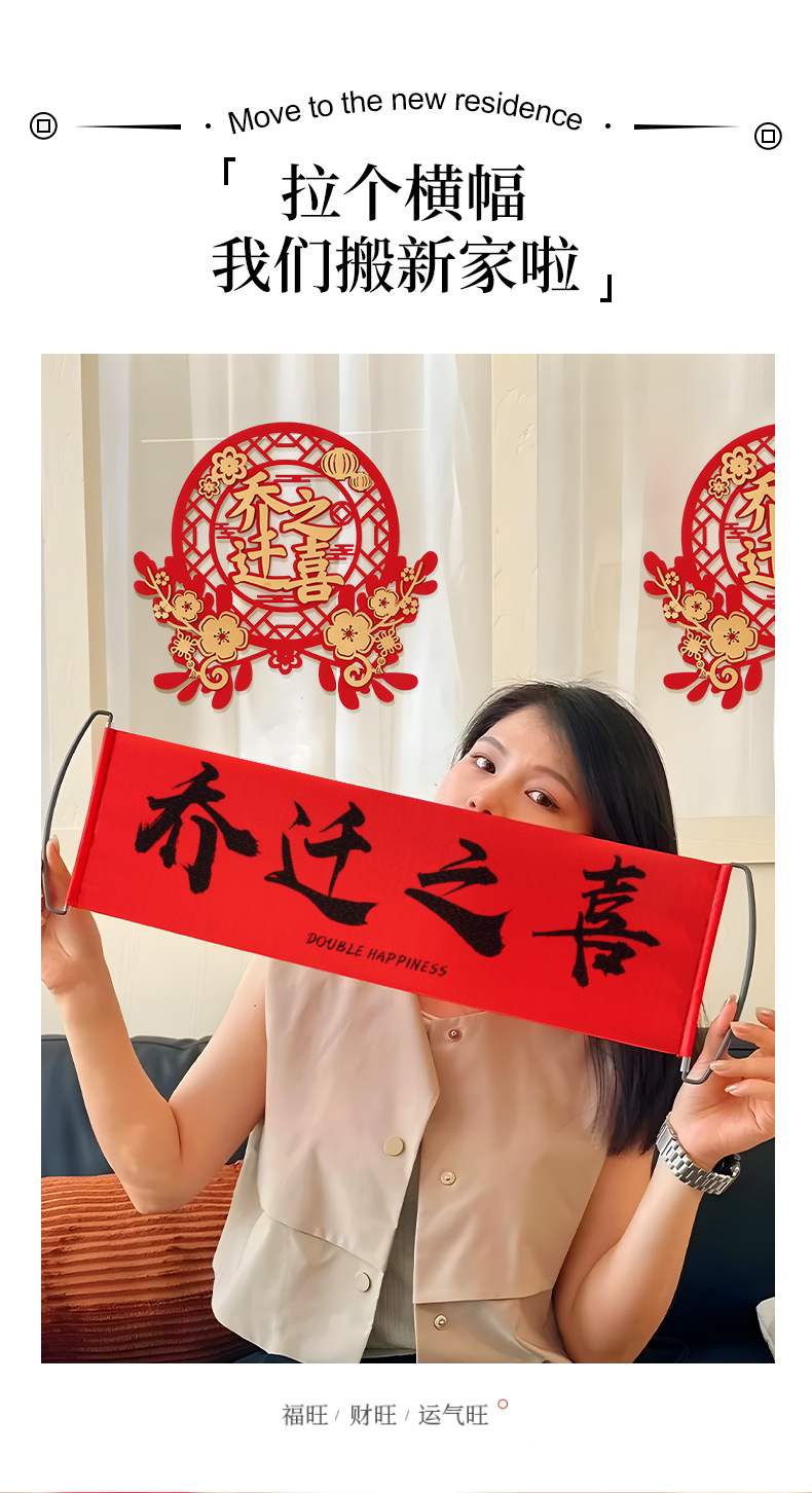 乔迁之喜对联横幅拉旗拍照道具装饰用品大全新居布置搬家仪式批发