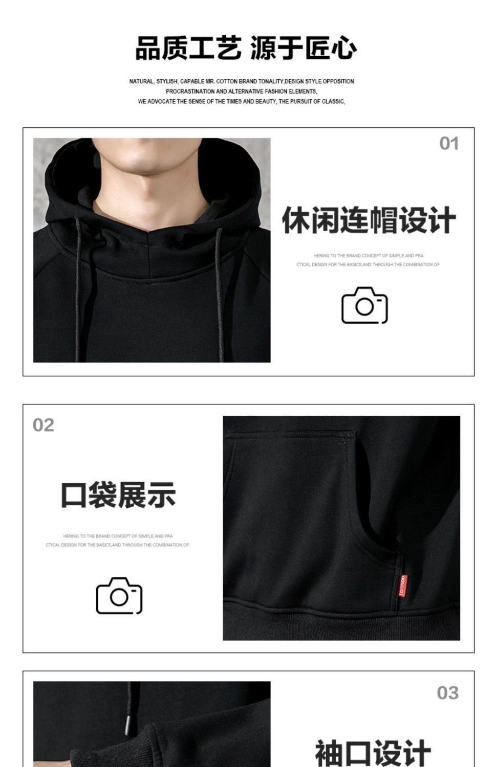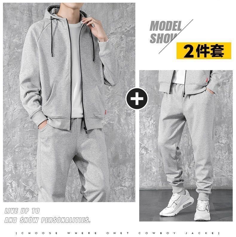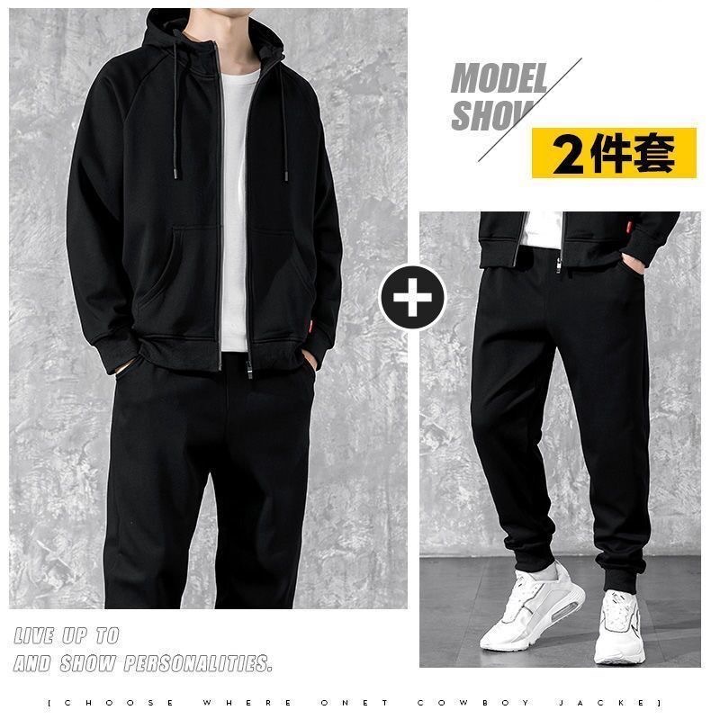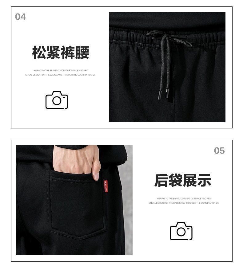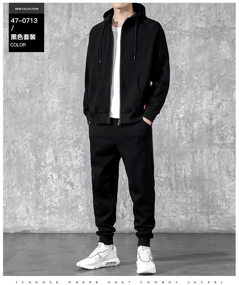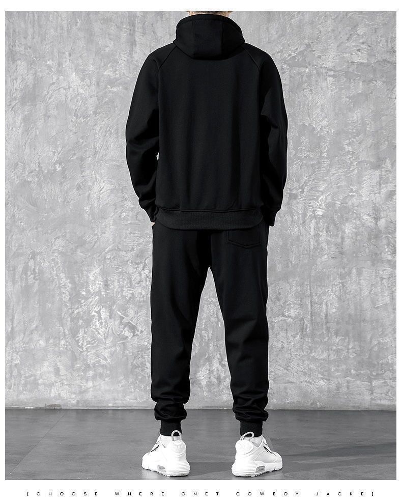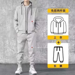 冬季加绒连帽套头男士卫衣套装青少年休闲运动服外穿户外九分卫裤