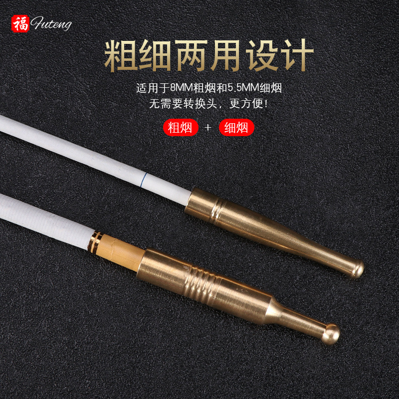 厂家直供纯铜粗细烟两用烟嘴 老式全黄铜循环使用拉杆过滤器烟嘴