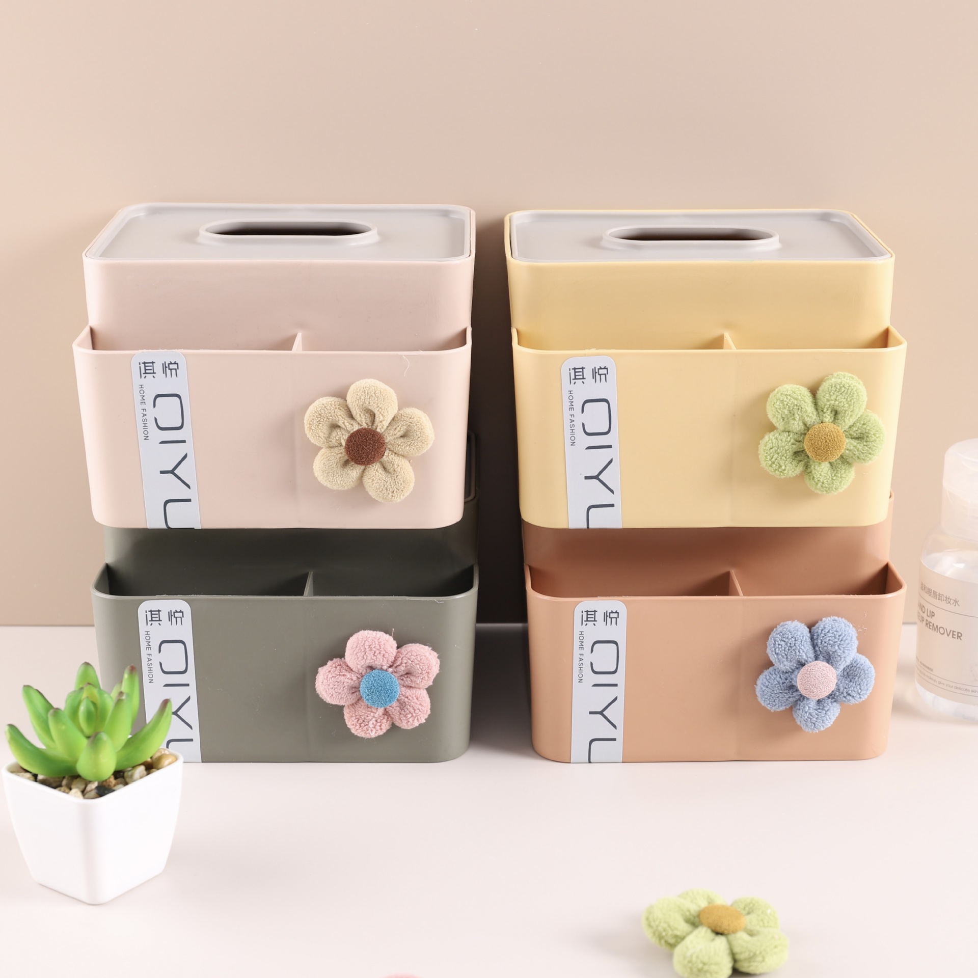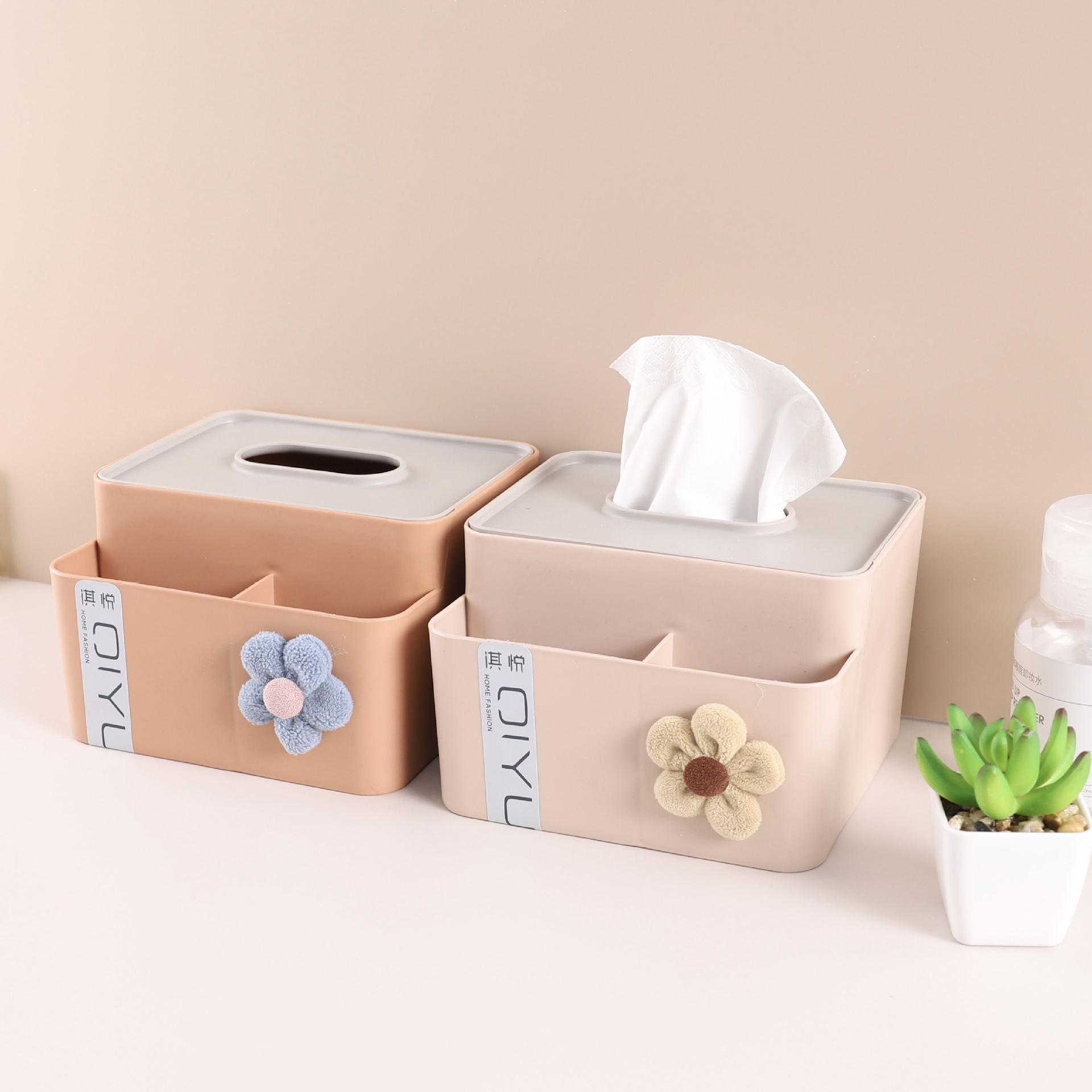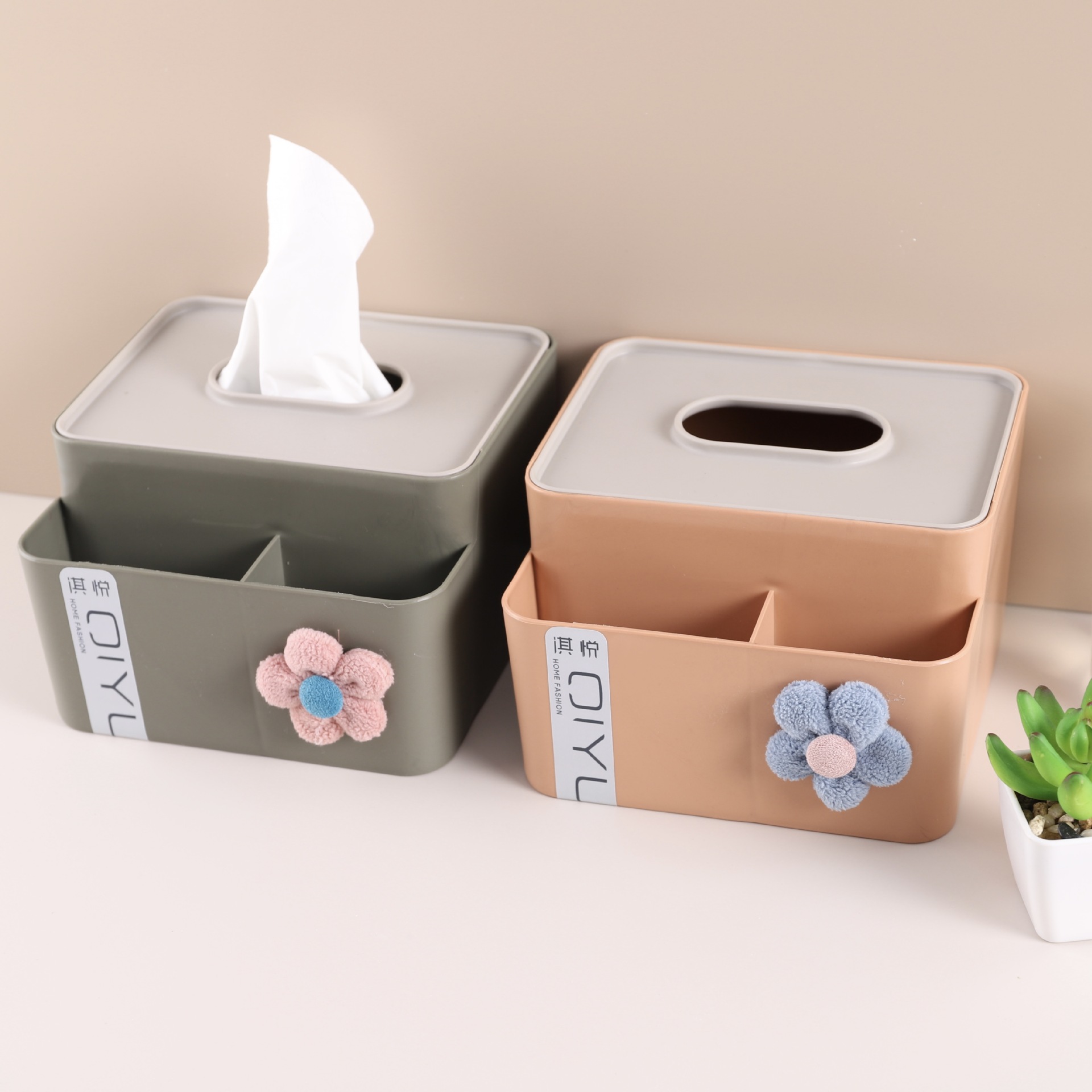 创意分格塑料多功能纸巾盒居家办公桌面收纳遥控板抽纸盒批发