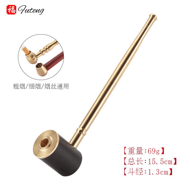 福腾烟具纯铜两用烟袋锅烟斗 批发便携老式黄铜过滤烟杆烟丝斗