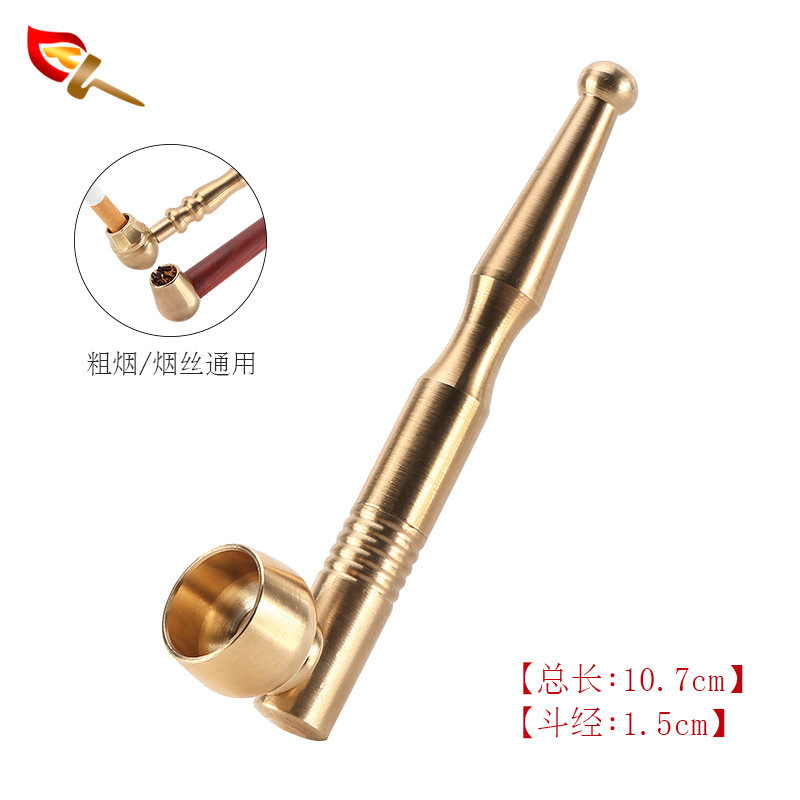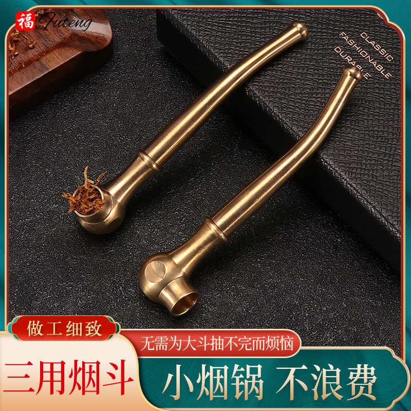 厂家直供小号迷你纯铜三用烟锅旱烟斗 一口香黄铜老式过滤烟袋锅
