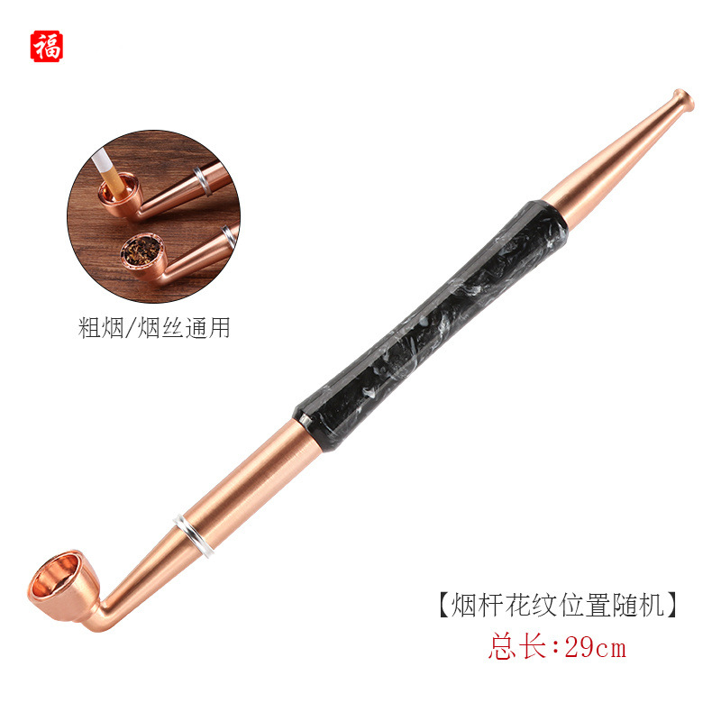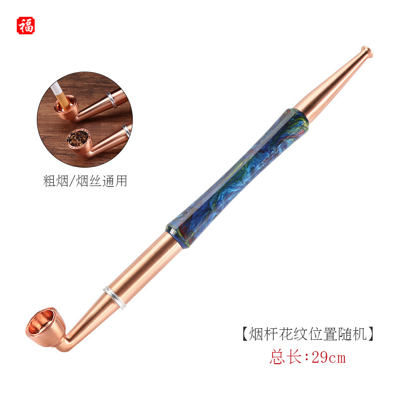 纪晓岚合金仿铜质炫彩花纹双用烟锅烟杆 老式可拆卸拉杆过滤烟斗