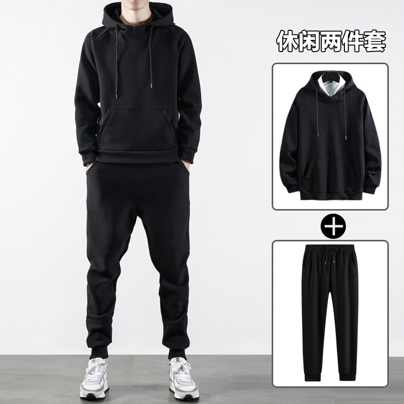 卫衣套装男纯棉男士运动套装秋冬季加绒运动服连帽外套休闲两件套