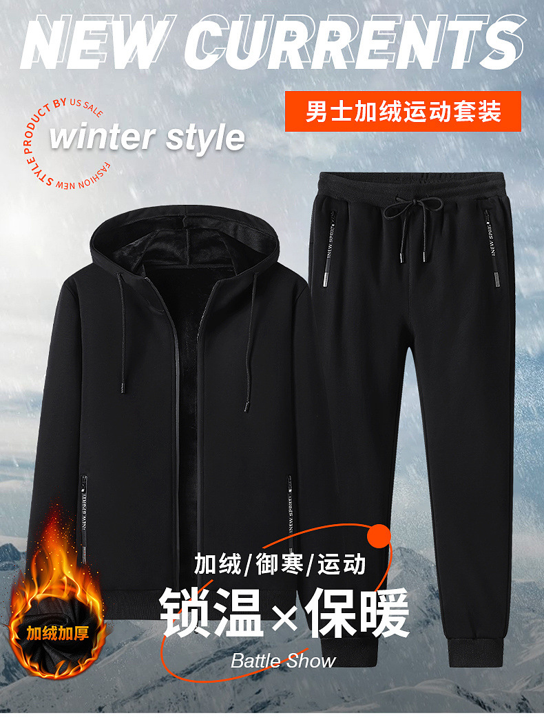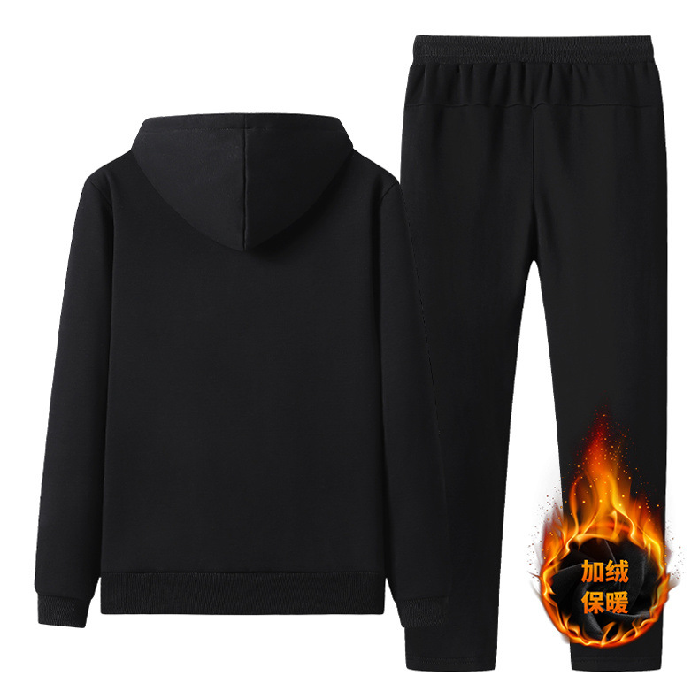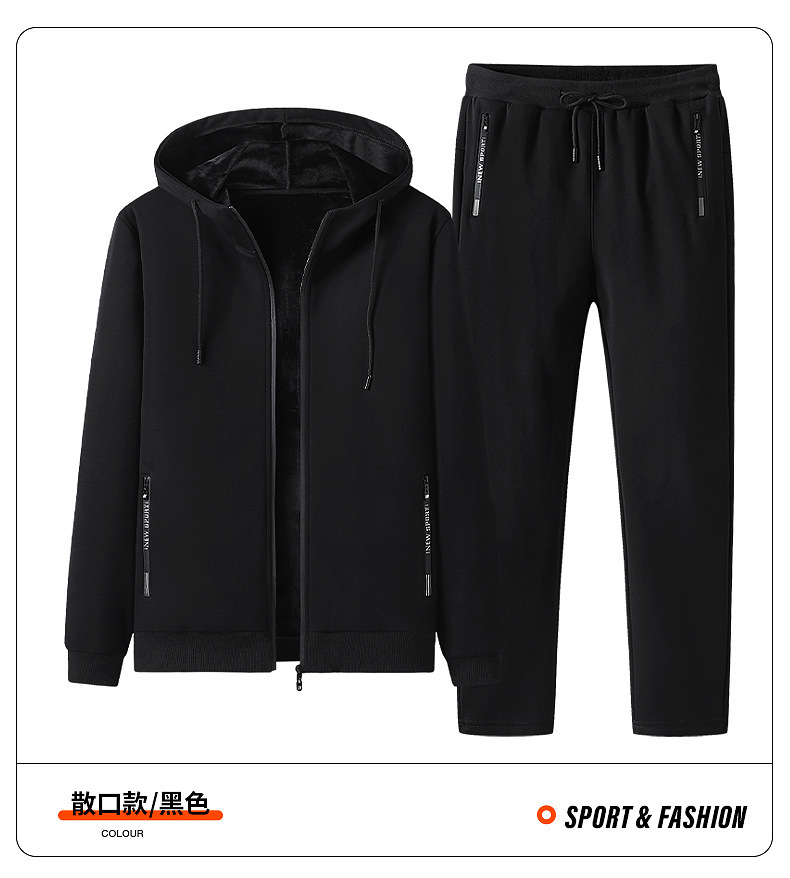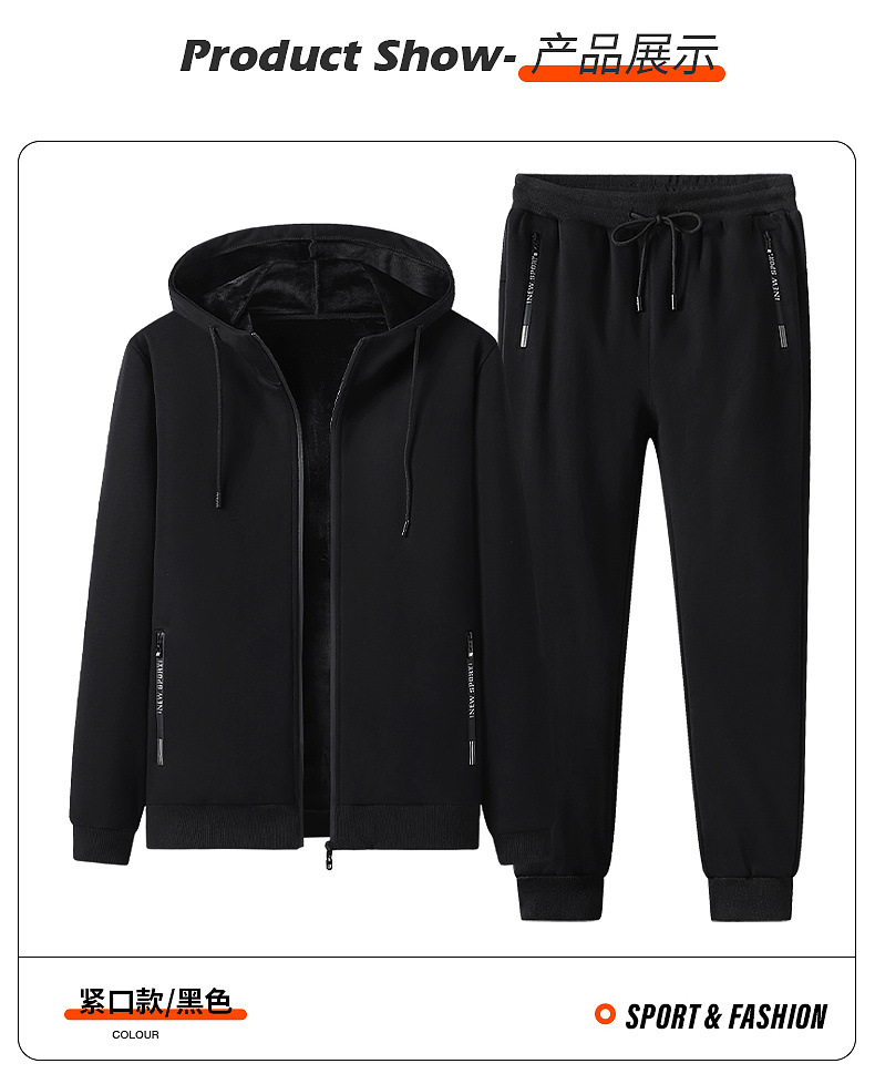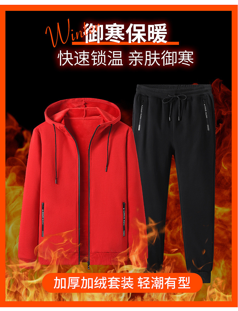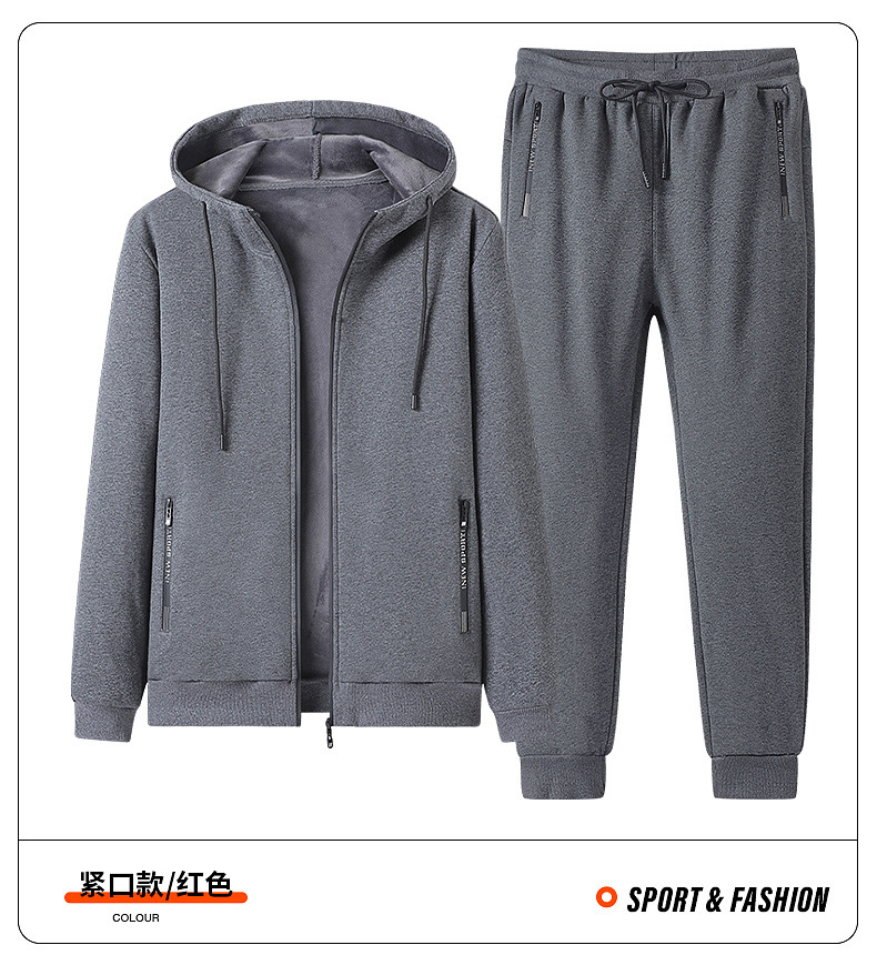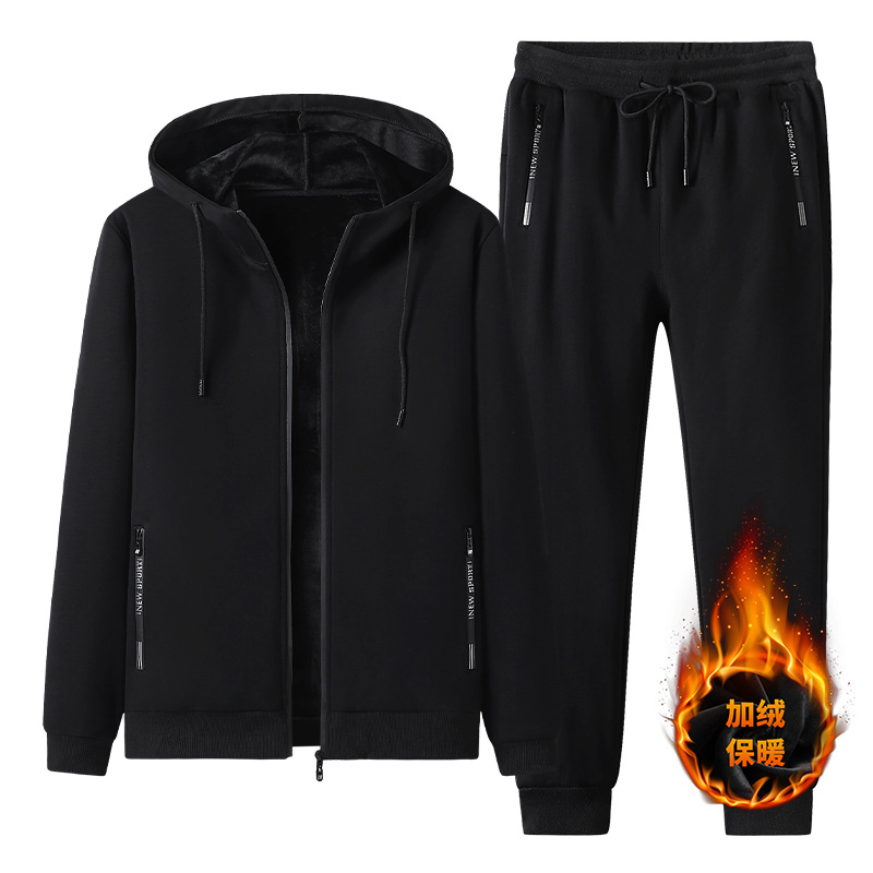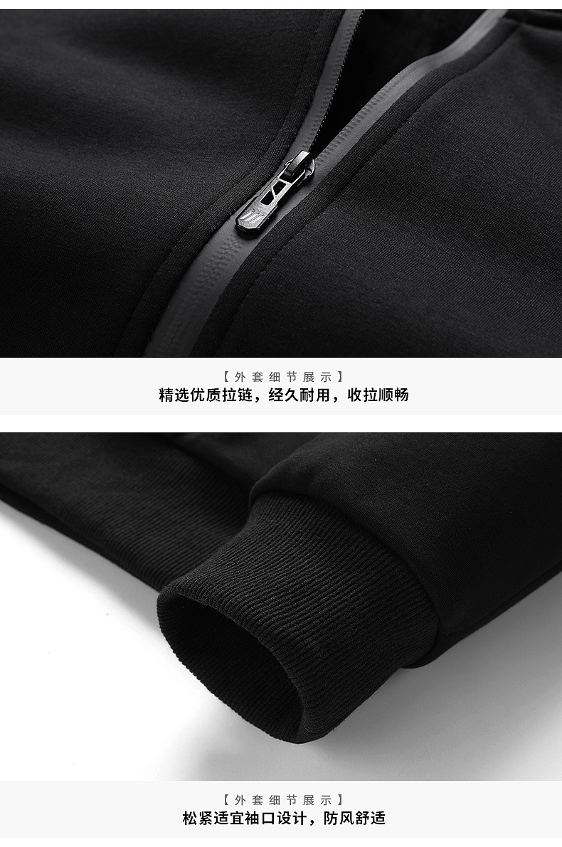 加绒加厚纯棉男士套装冬季新款运动开衫套装外套男青年跑步两件套