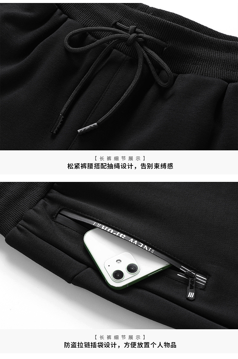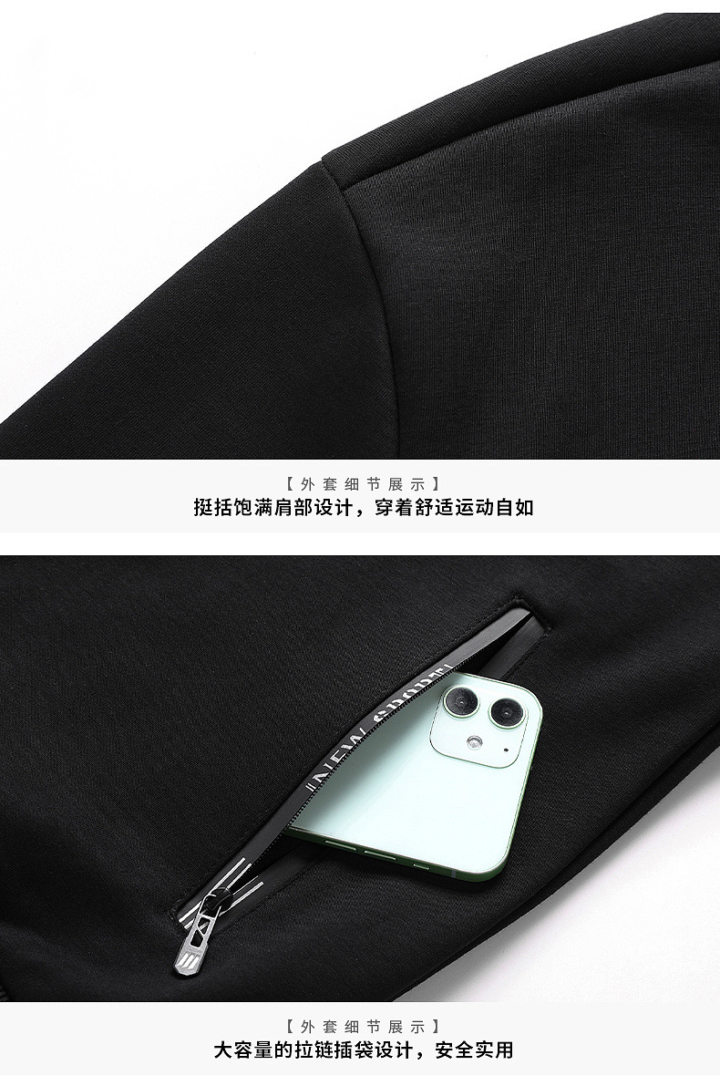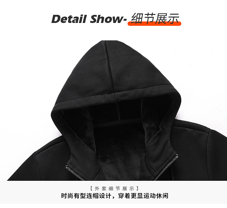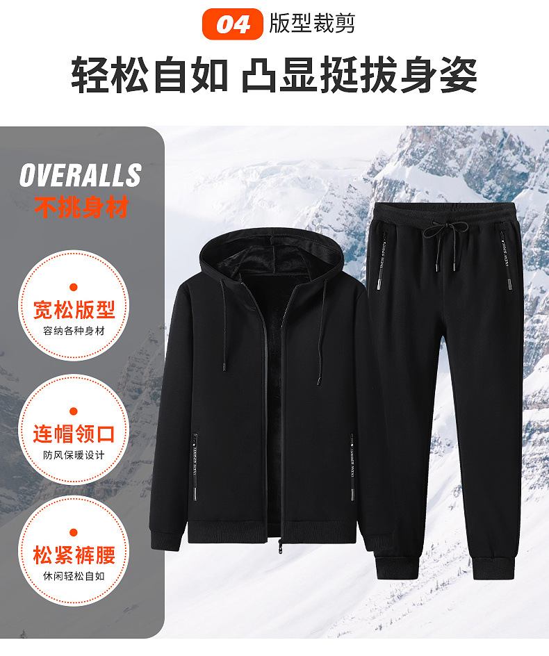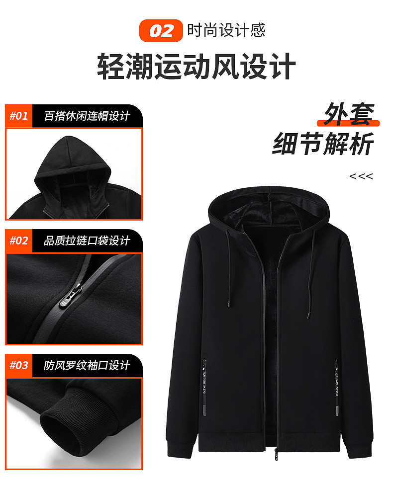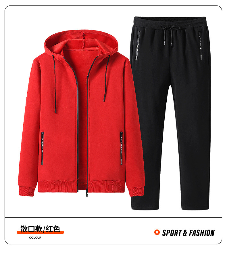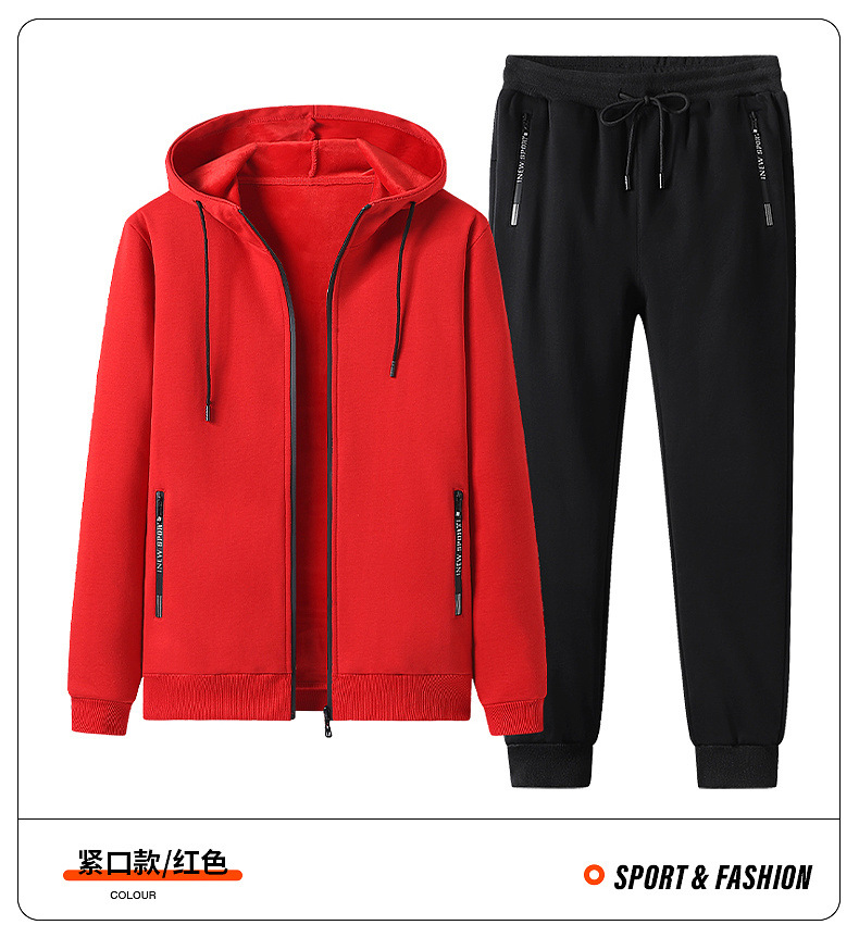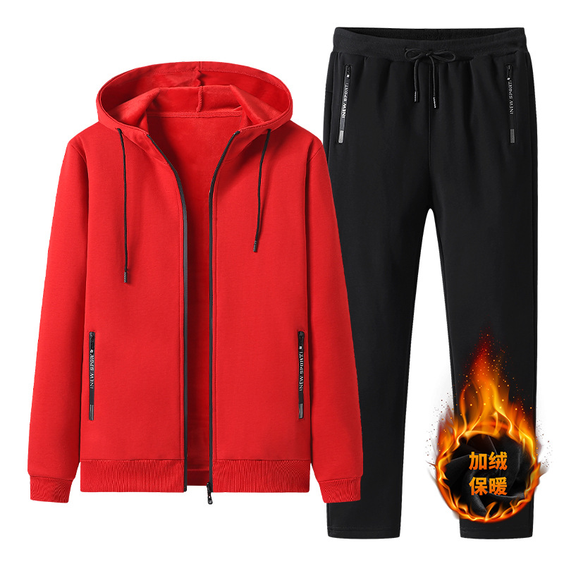 加绒加厚纯棉男士套装冬季新款运动开衫套装外套男青年跑步两件套