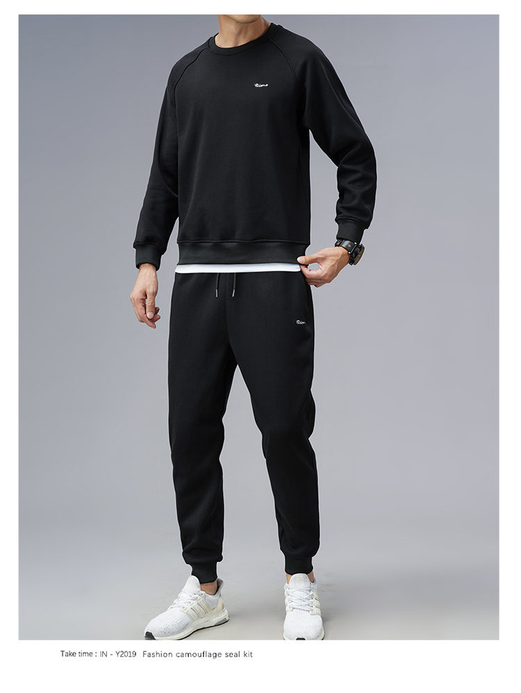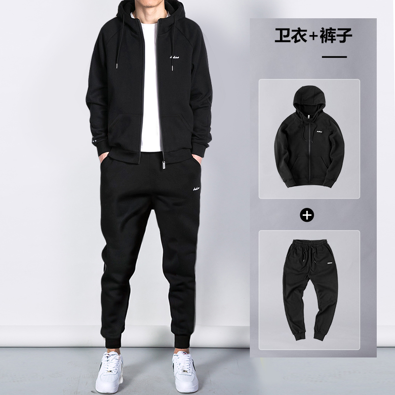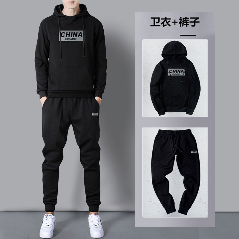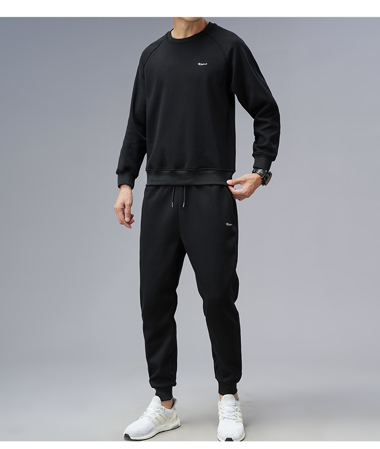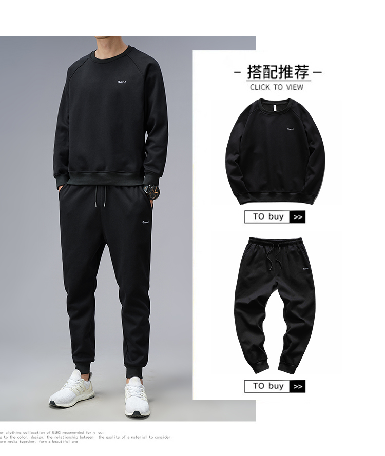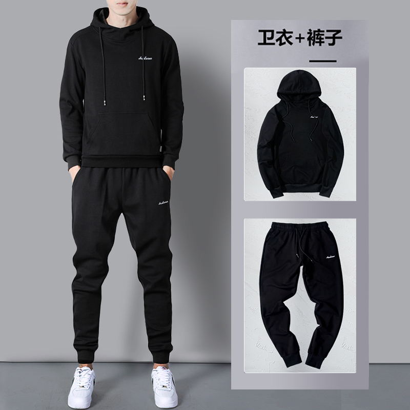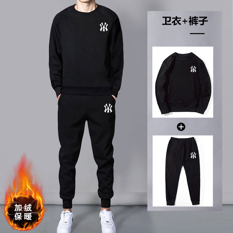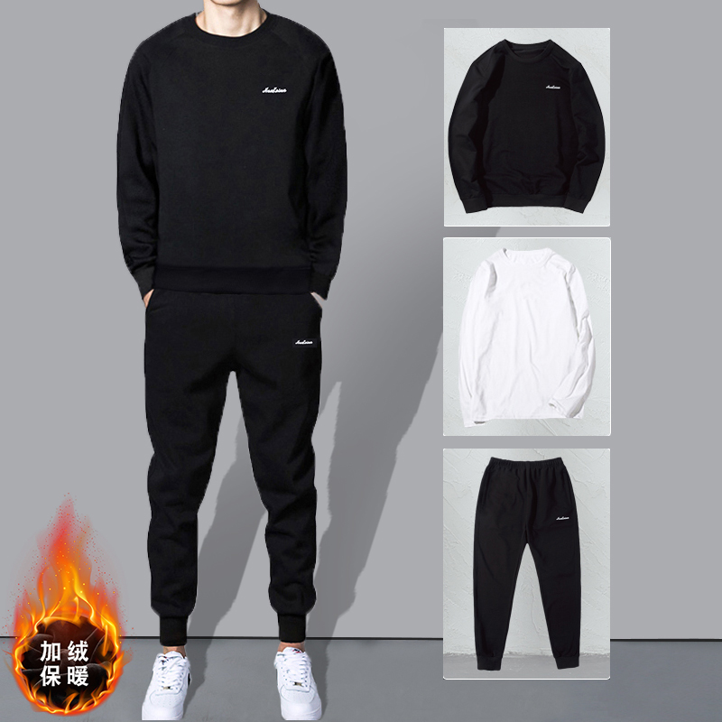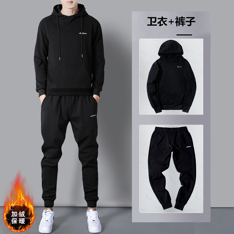 运动套装男2024春秋圆领男士卫衣加绒帅气一套搭配休闲连帽两件套