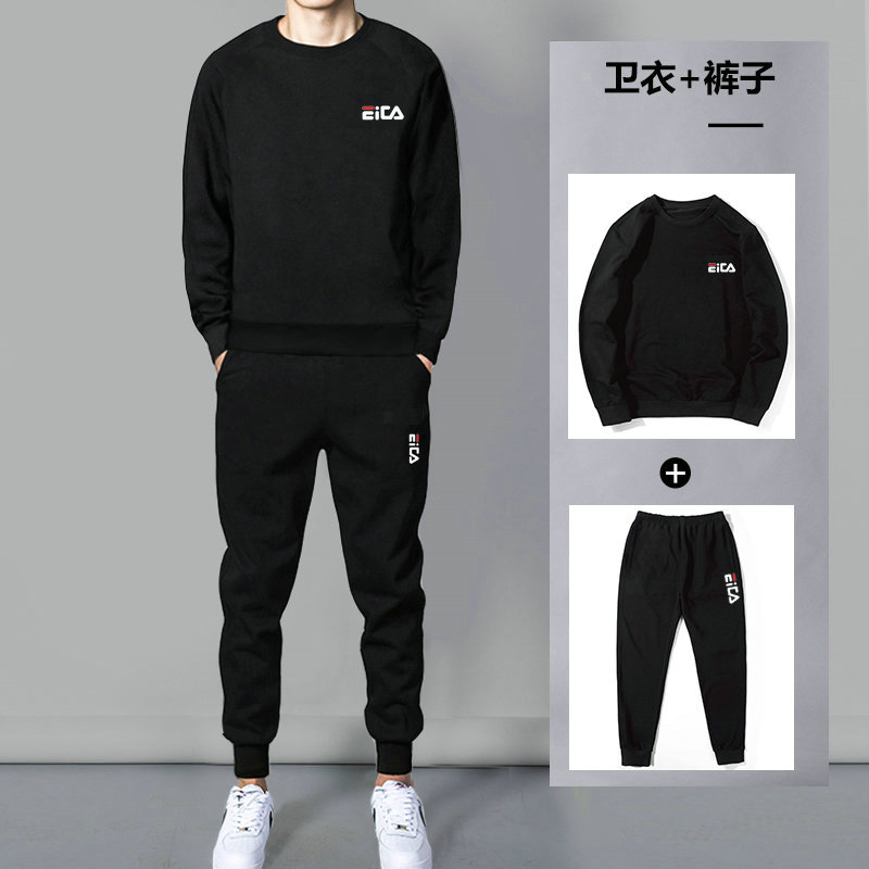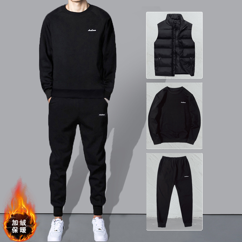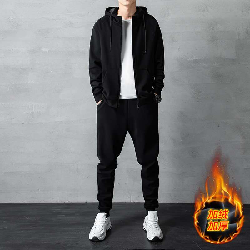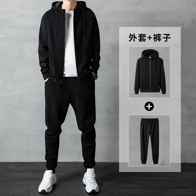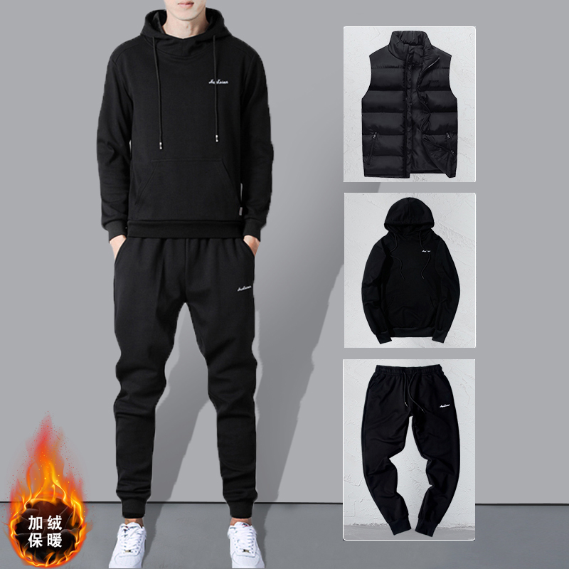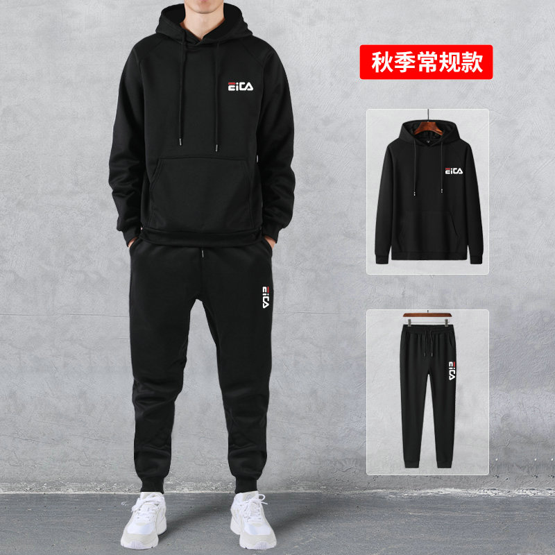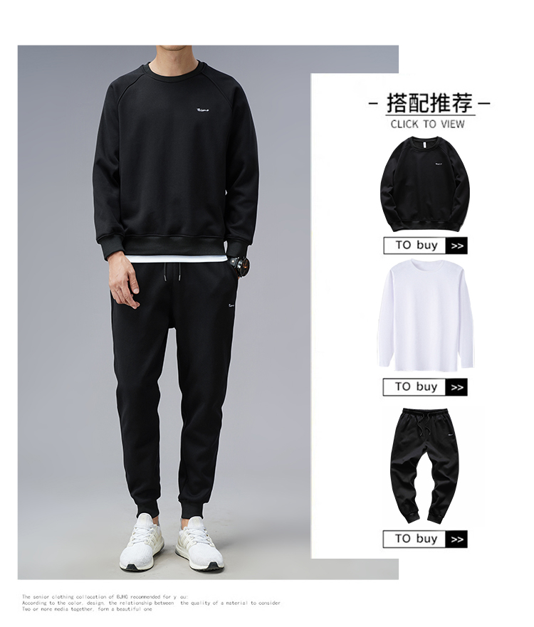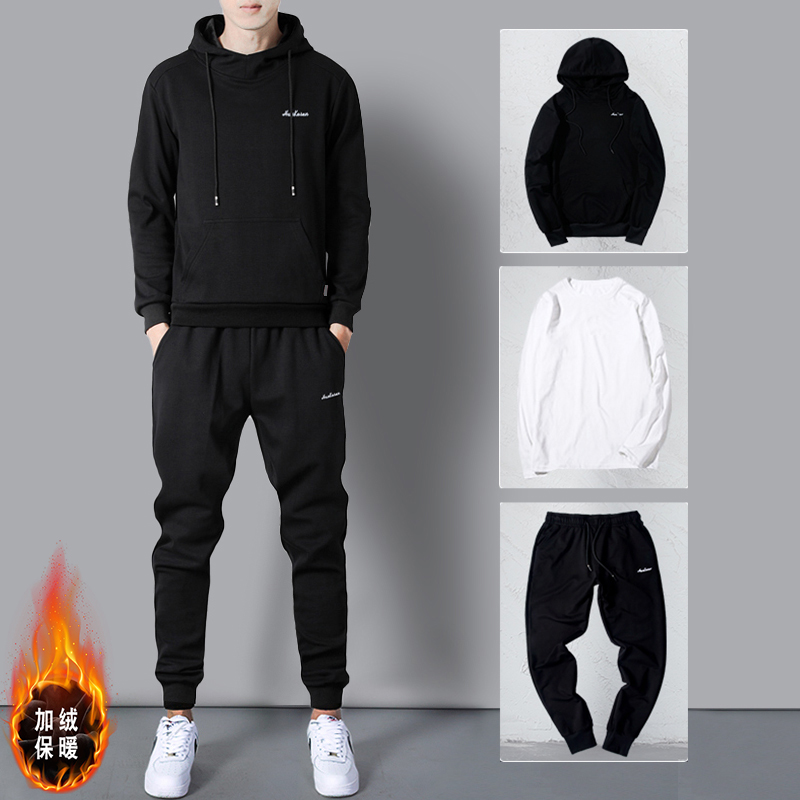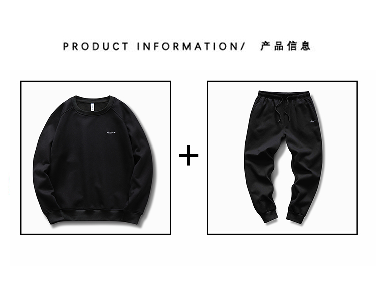 运动套装男2024春秋圆领男士卫衣加绒帅气一套搭配休闲连帽两件套