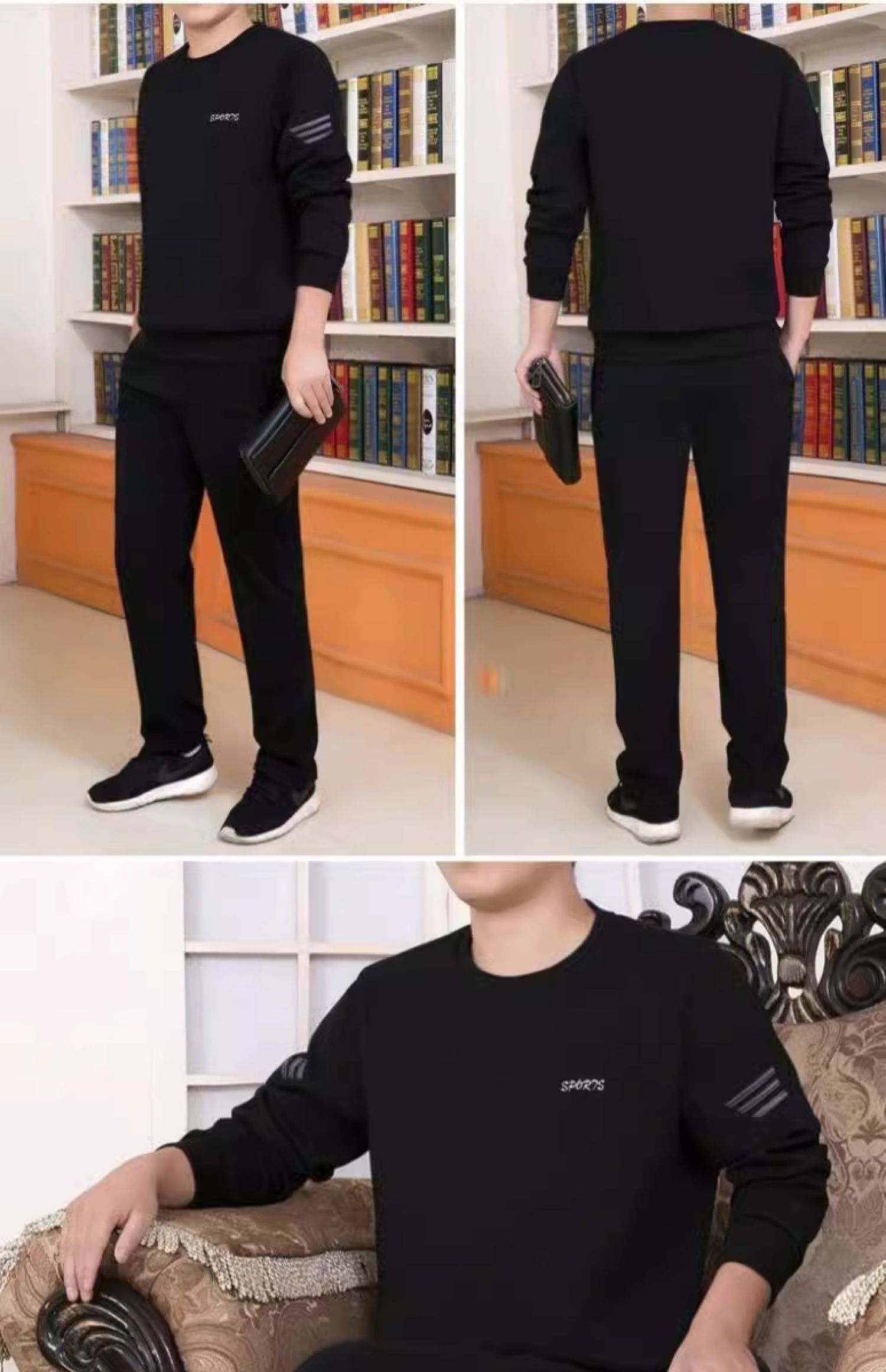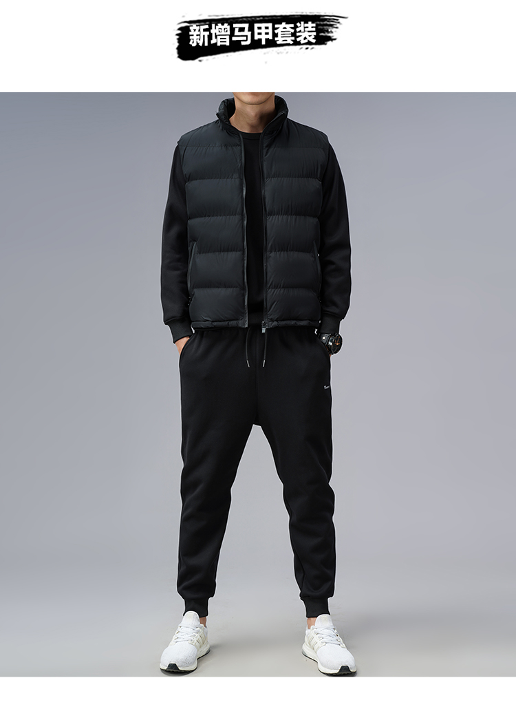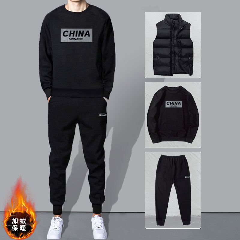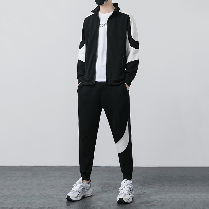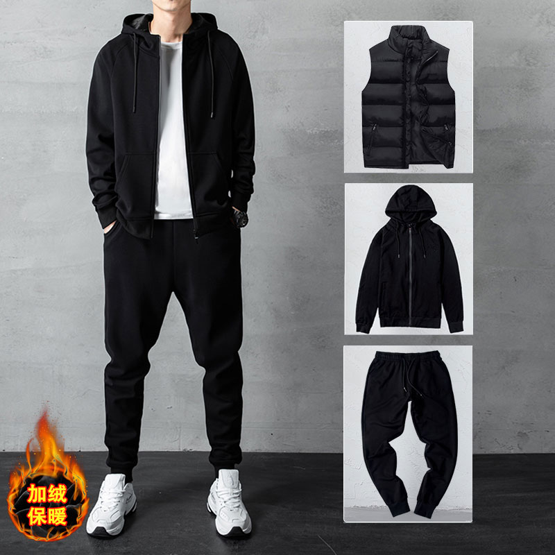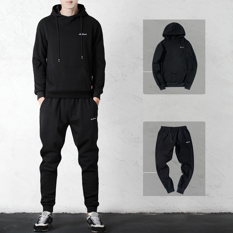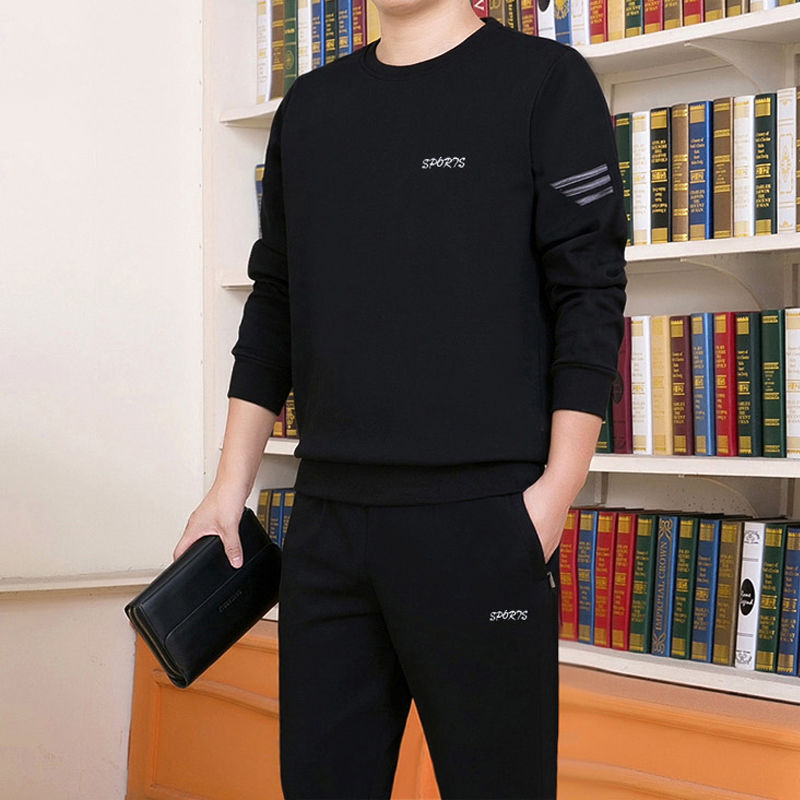 运动套装男2024春秋圆领男士卫衣加绒帅气一套搭配休闲连帽两件套