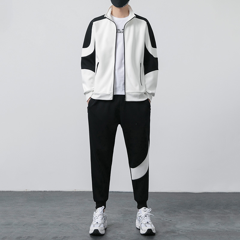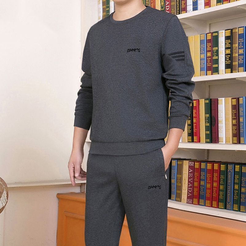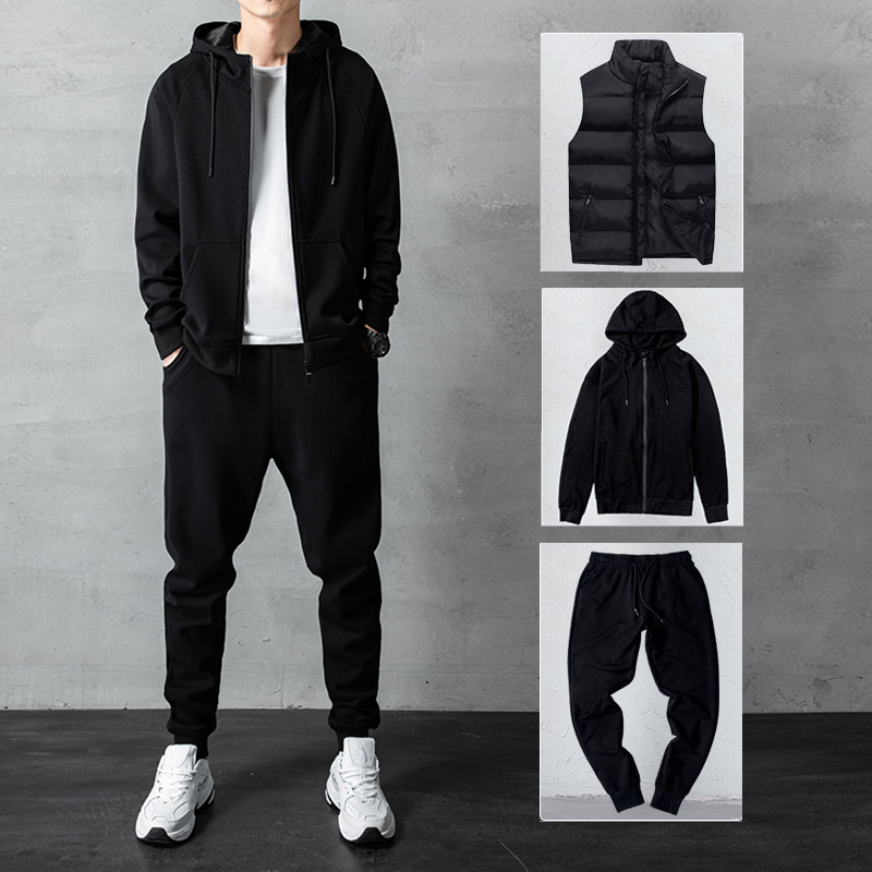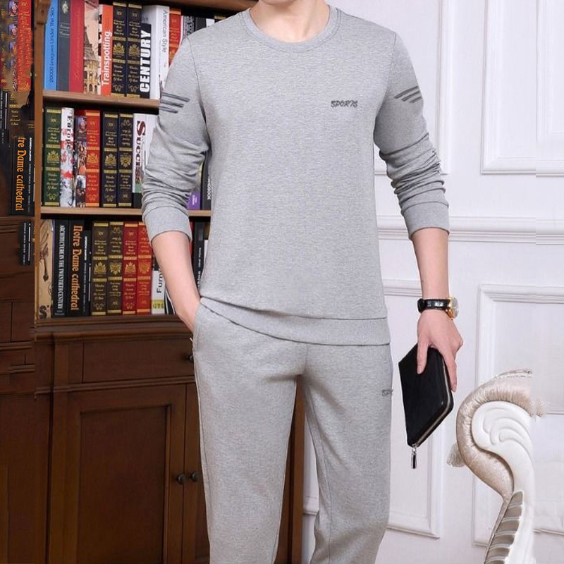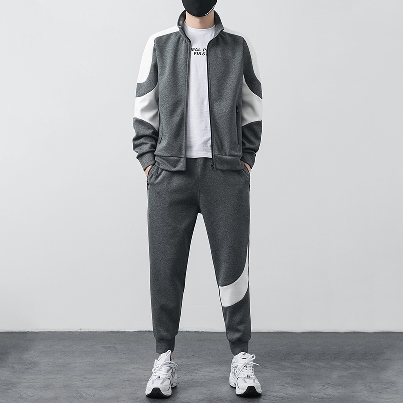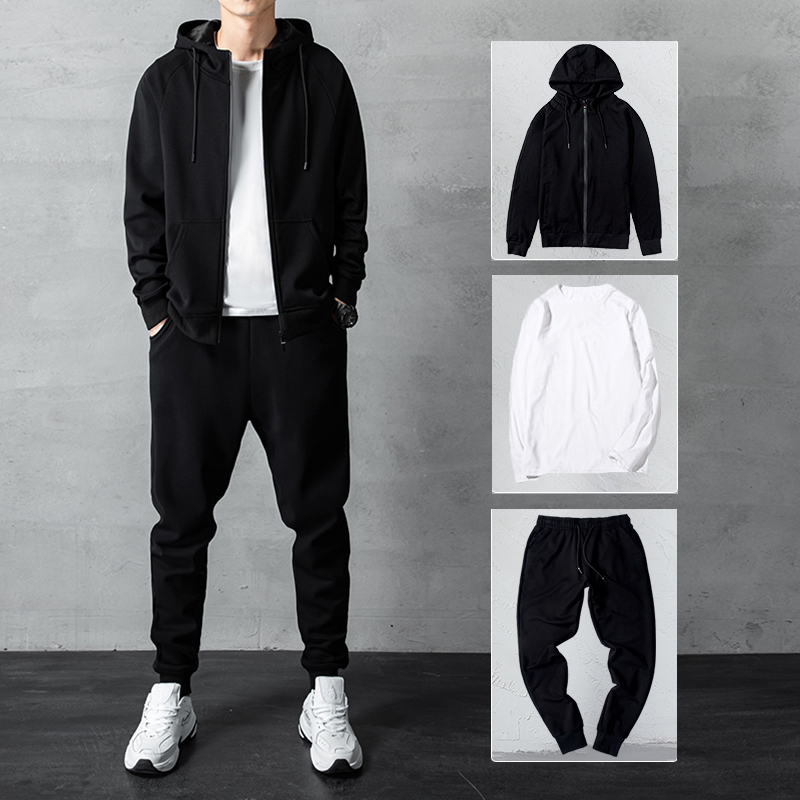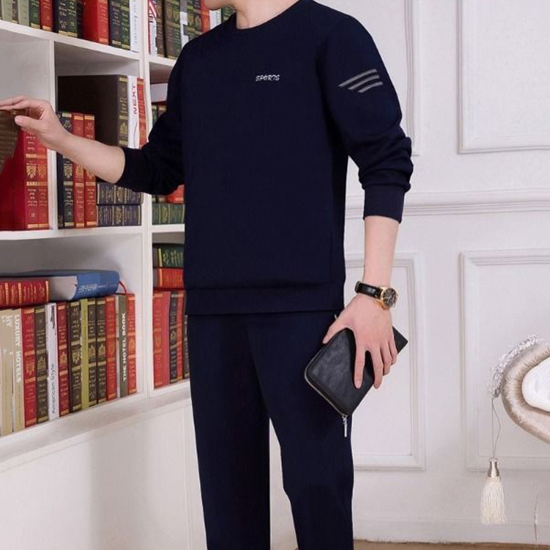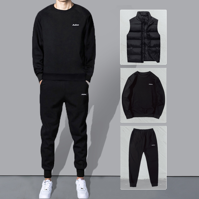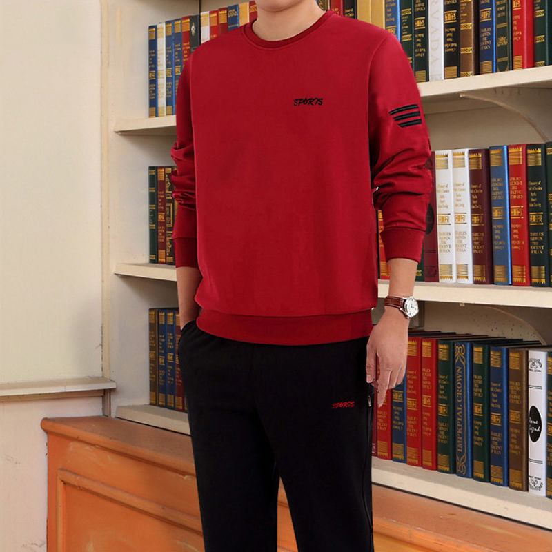 运动套装男2024春秋圆领男士卫衣加绒帅气一套搭配休闲连帽两件套