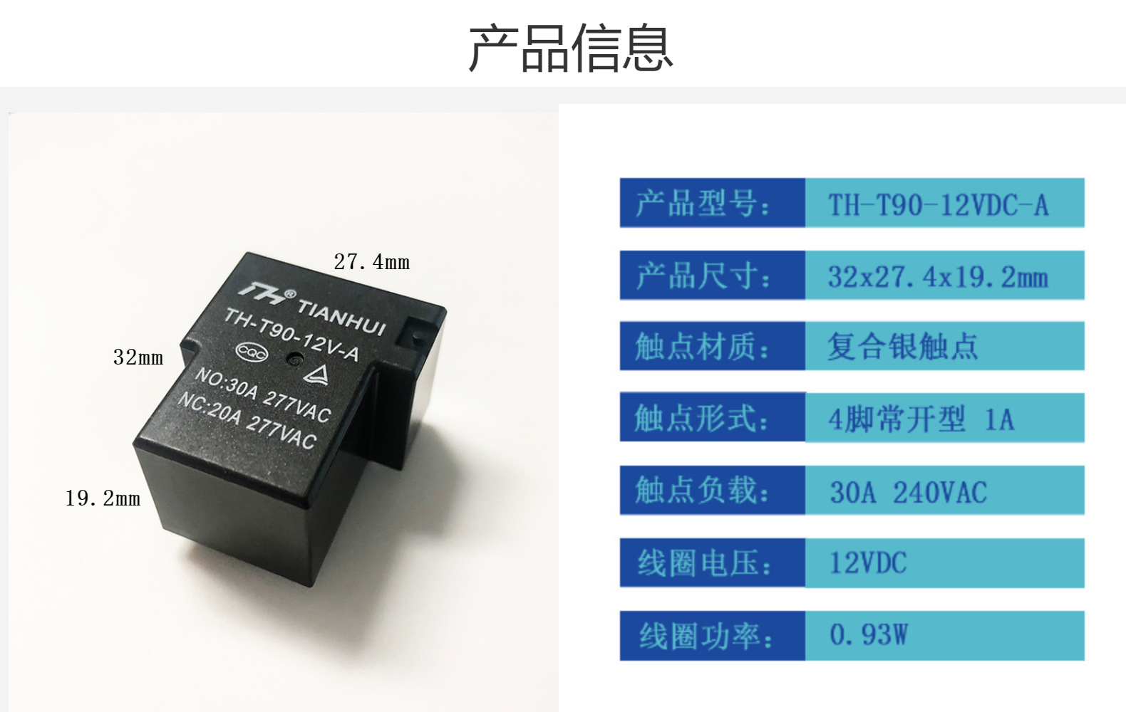 空调继电器 天辉 (15F)T90-12VDC-A 大电流功率继电器