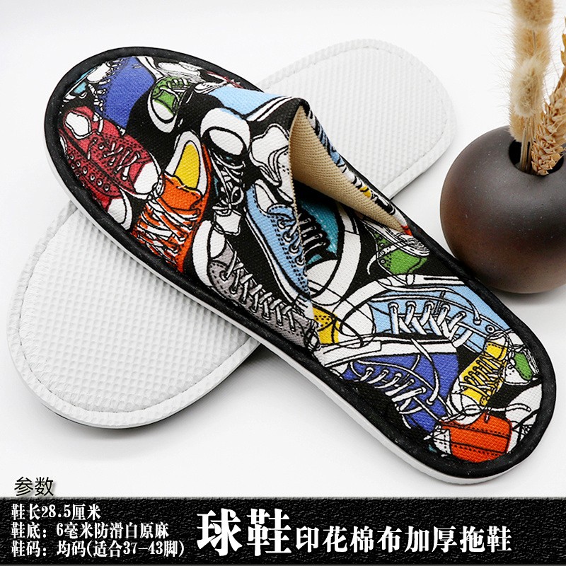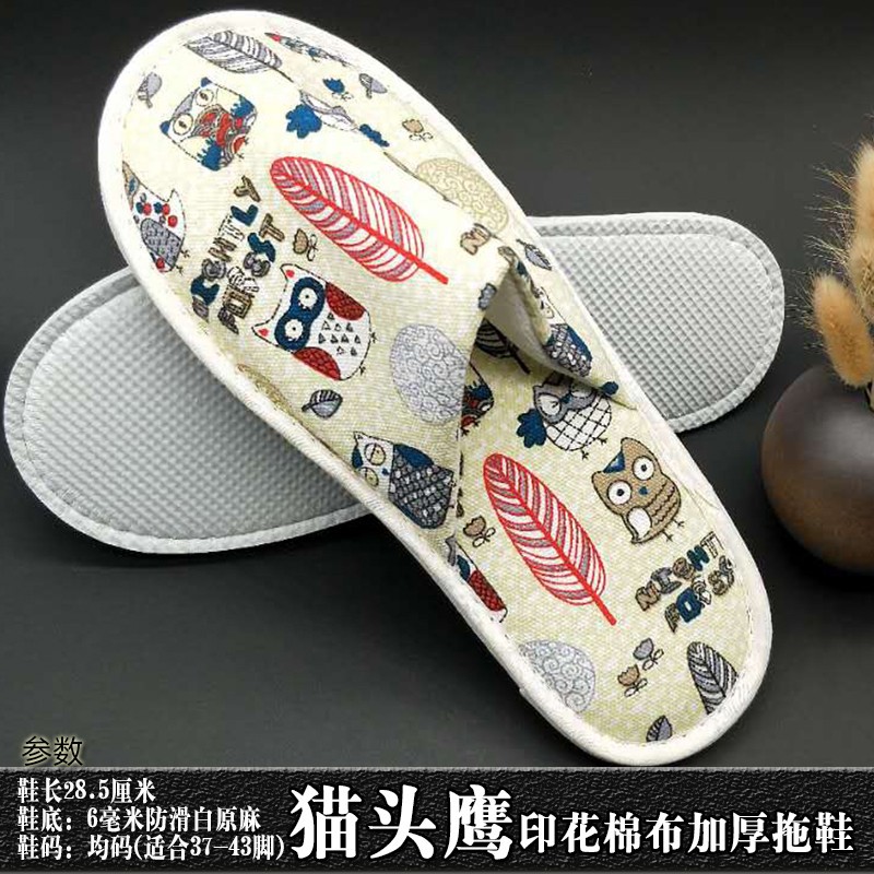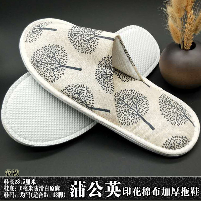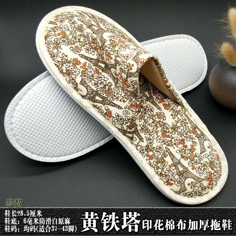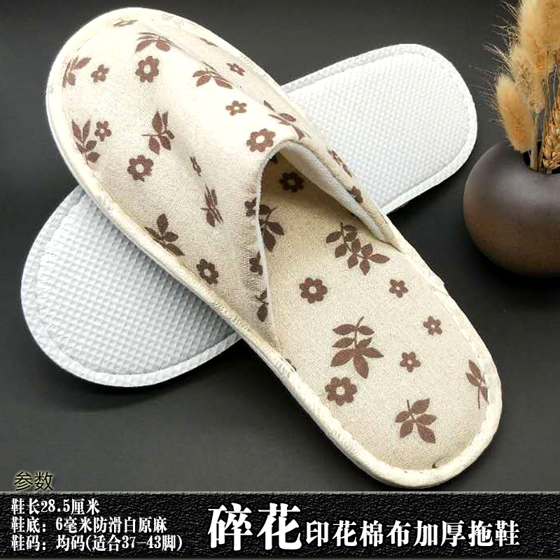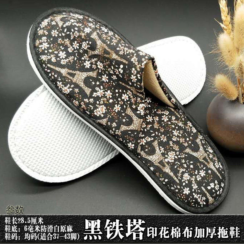 星级酒店用品j加厚一次性拖鞋印花棉布宾馆客房洗漱用品现货批发