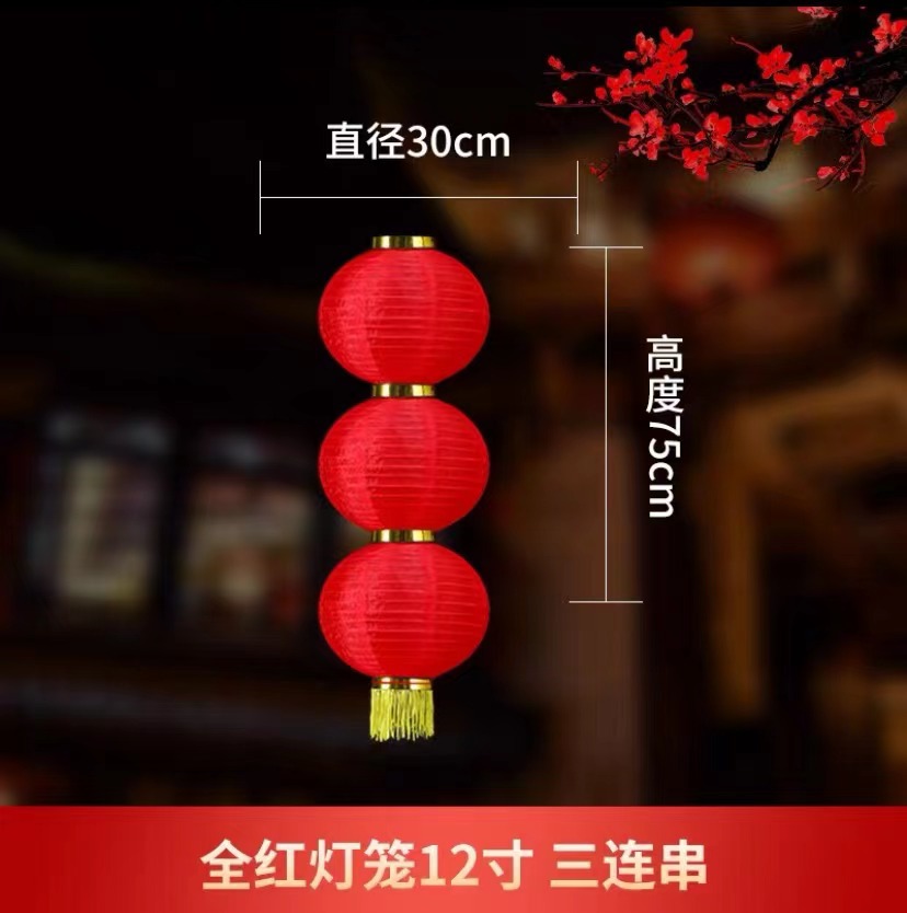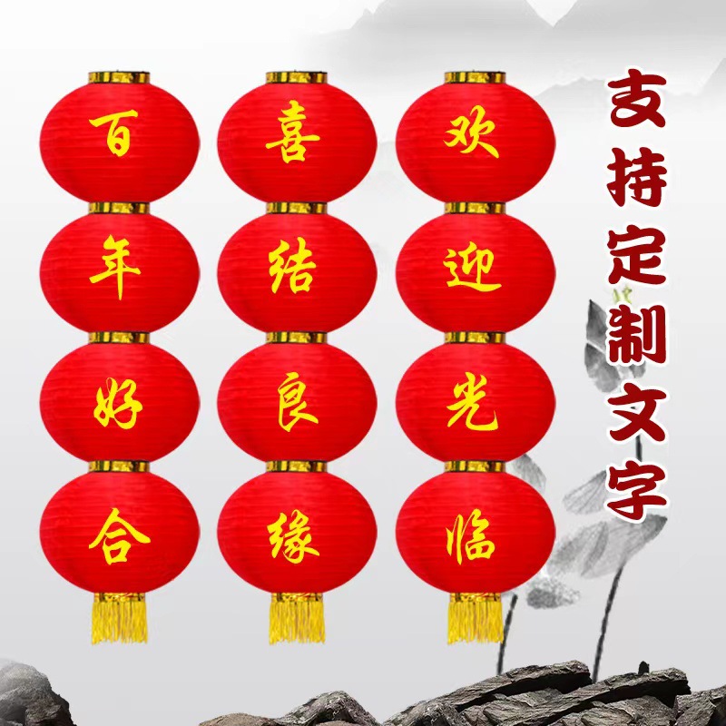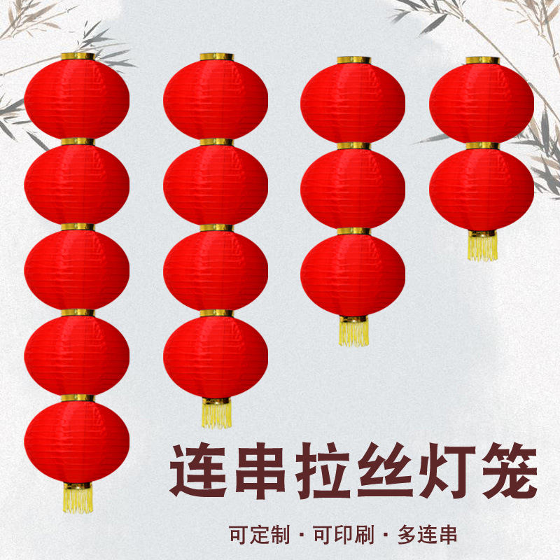 批发大红连串灯笼新年春节装饰户外防水广告印字灯笼冬瓜拉丝灯笼