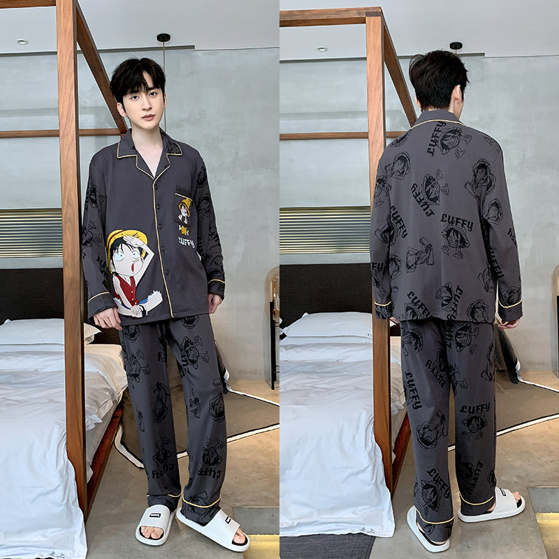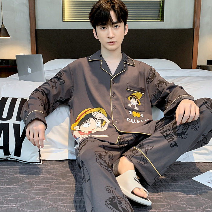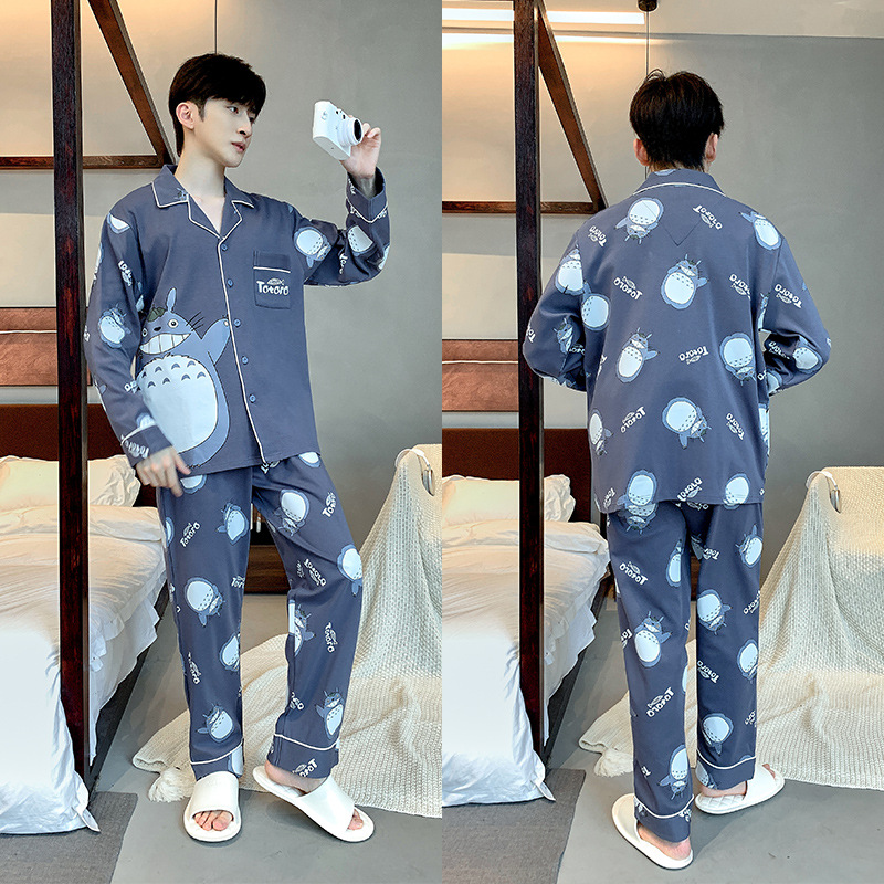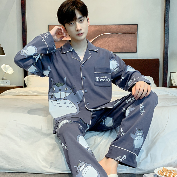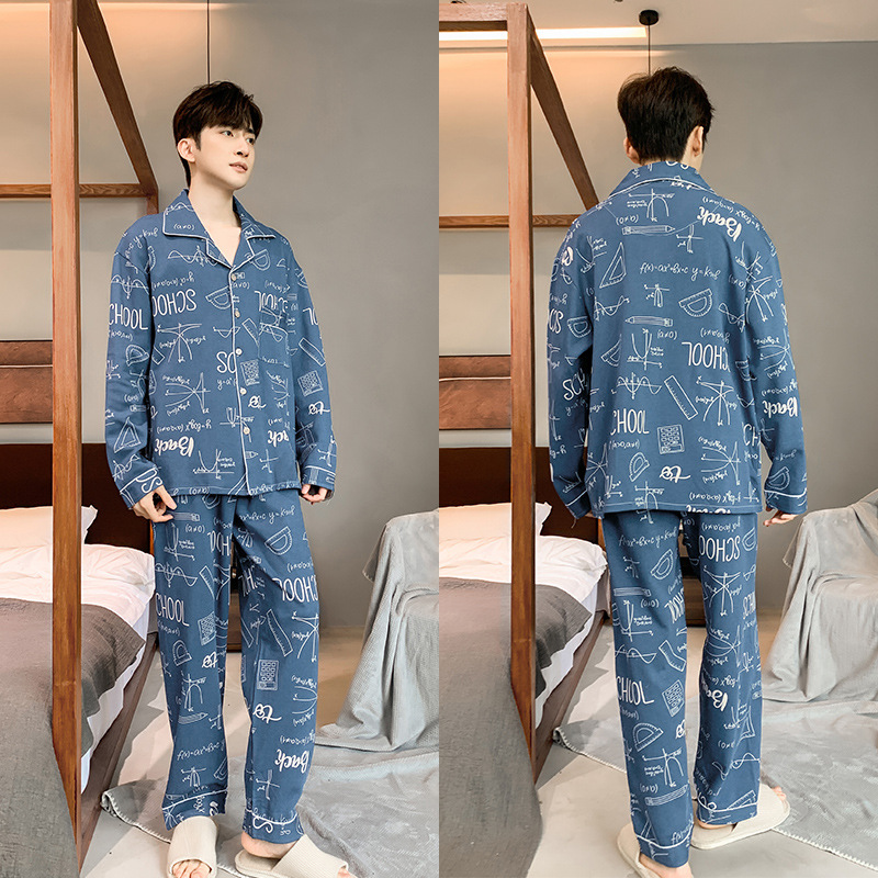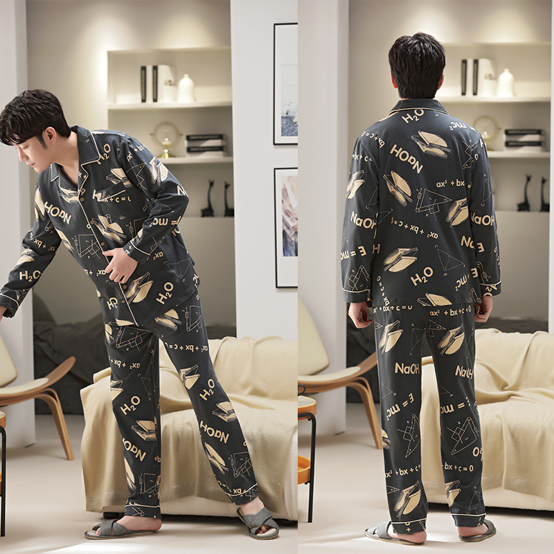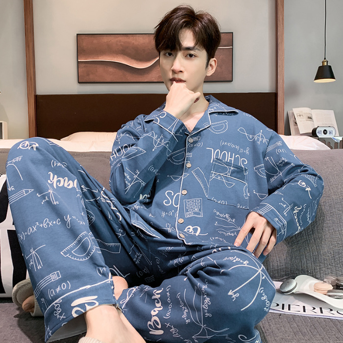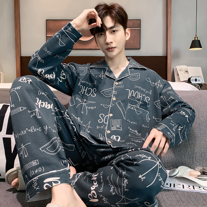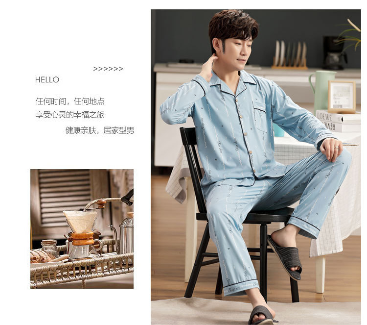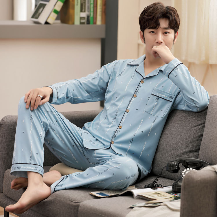 加肥加大男士睡衣仿棉长袖春秋款青少年夏季天男生280斤家居服睡