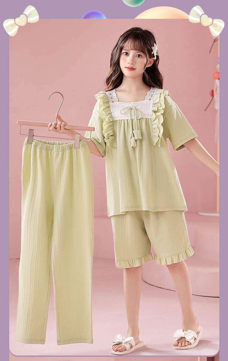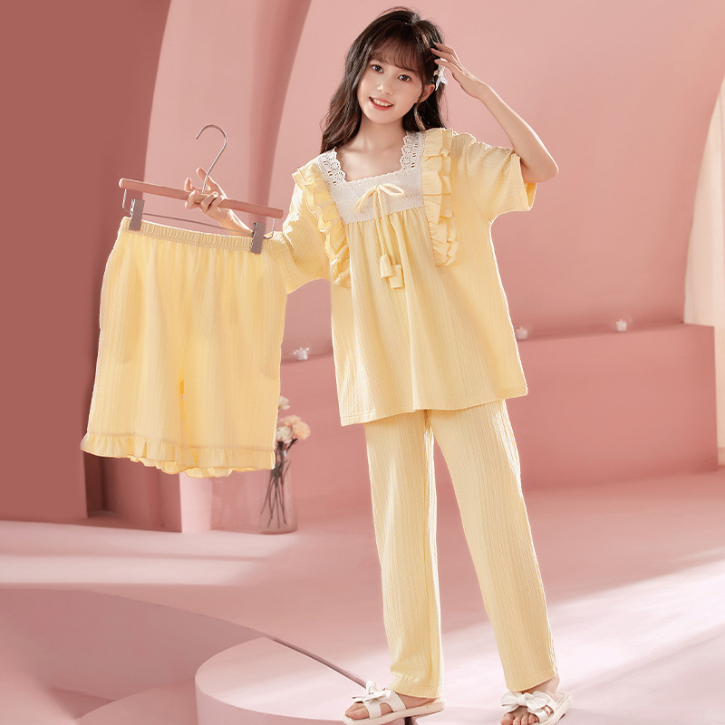 2024儿童睡衣女孩春夏季薄款棉绸公主风短袖6月女童网红初中生