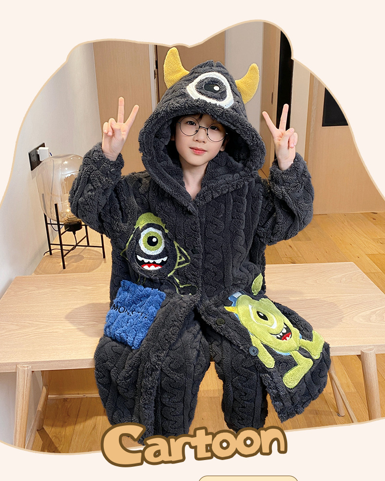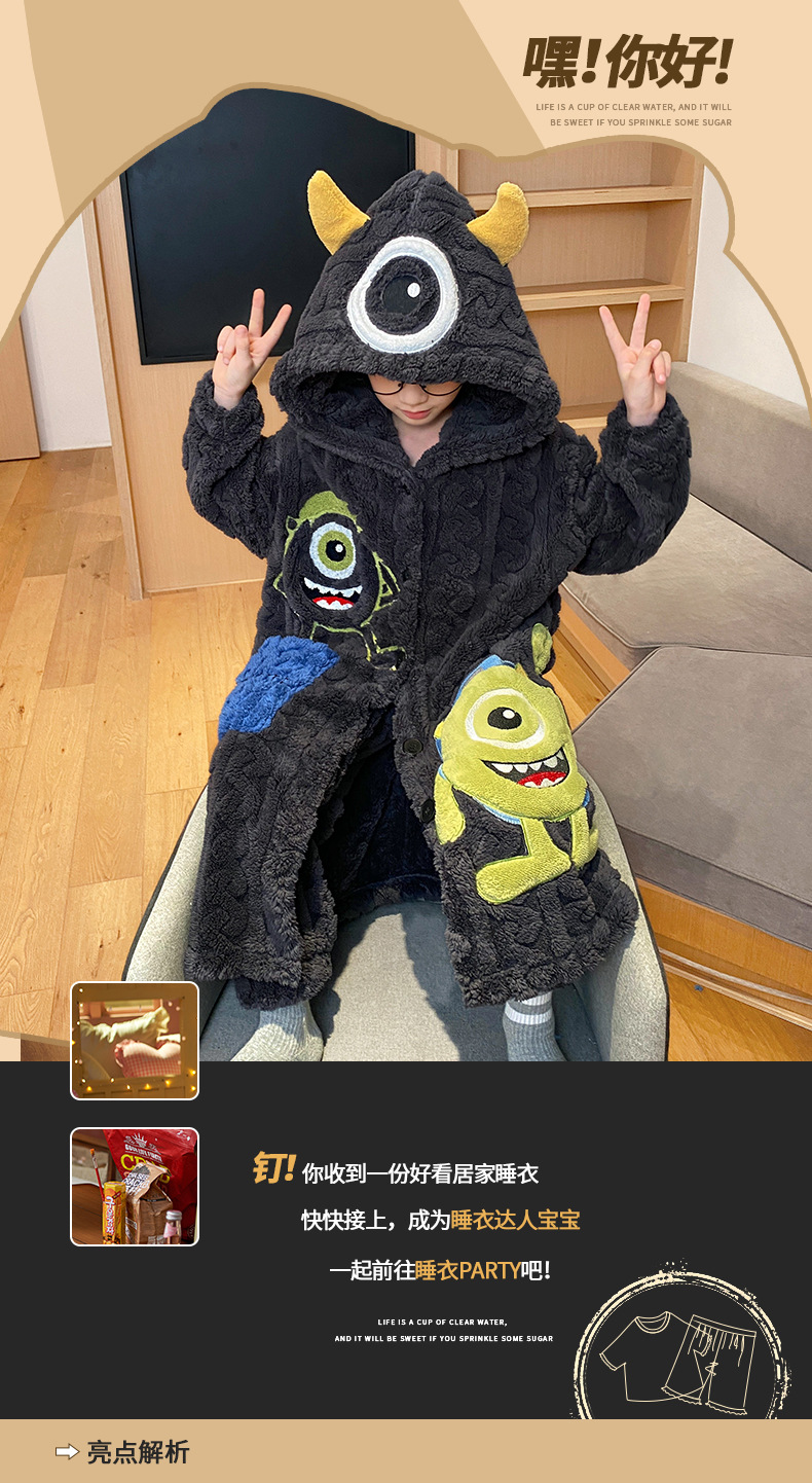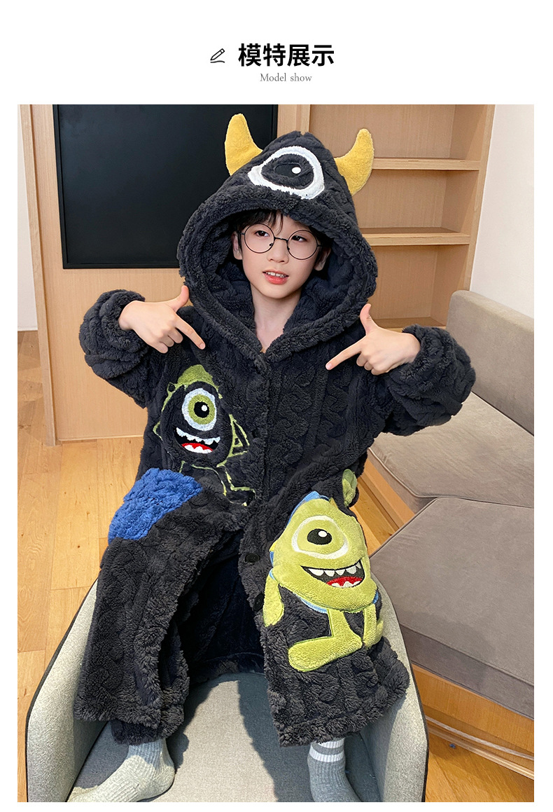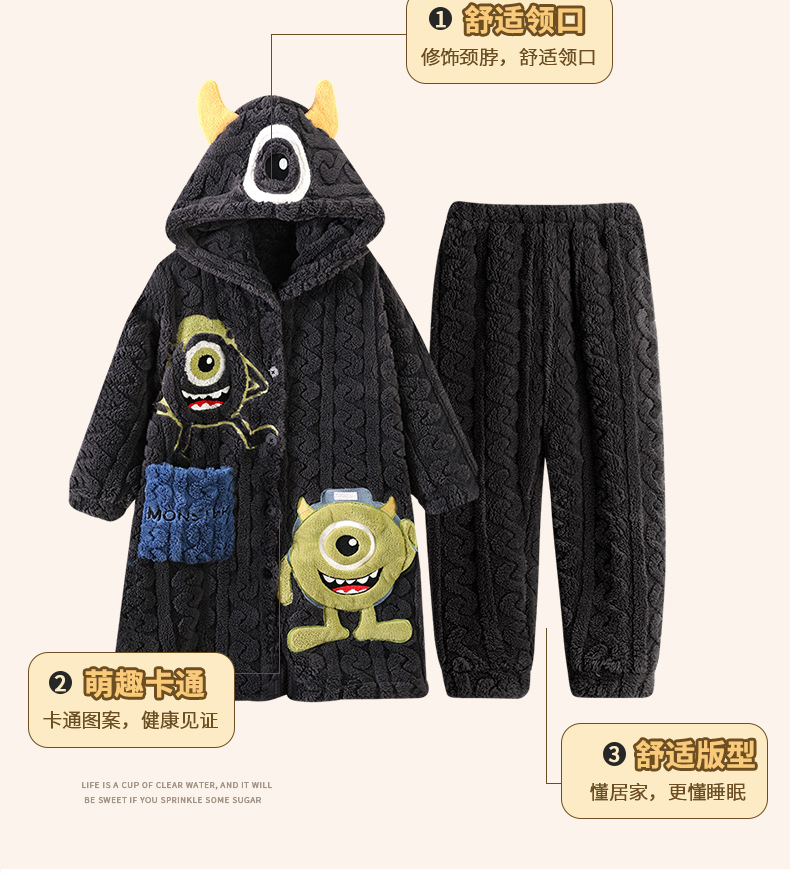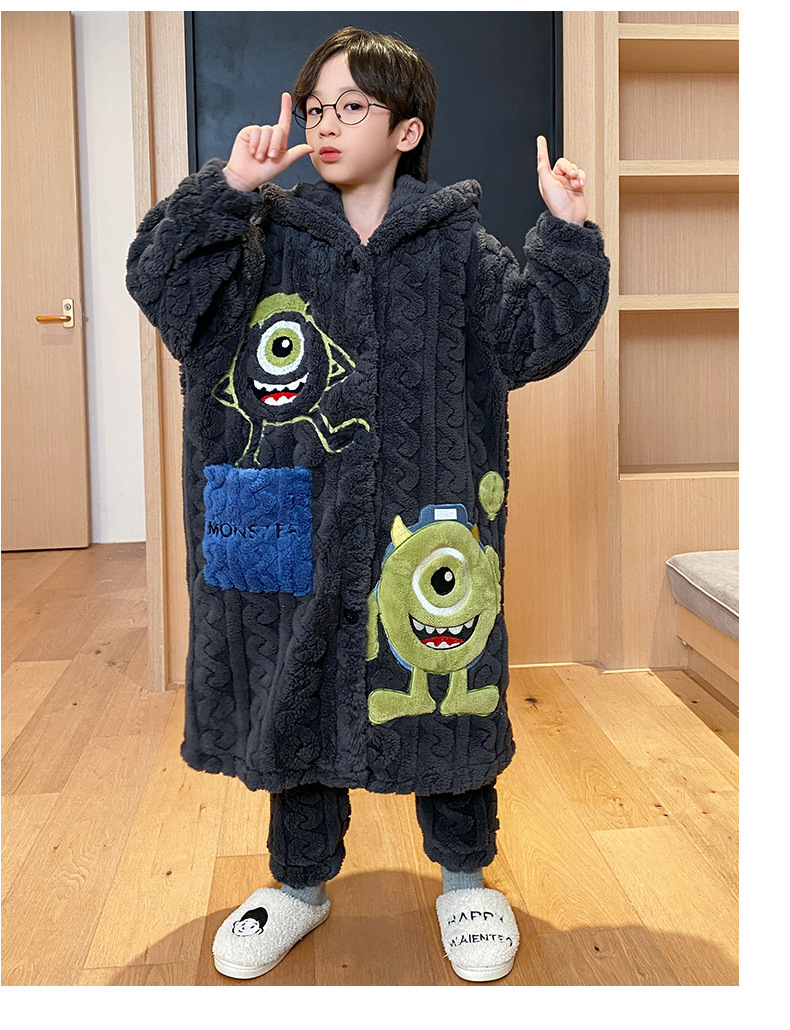 男童睡衣2023秋冬款珊瑚绒冬季儿童加厚法兰绒睡袍男孩家居服套装