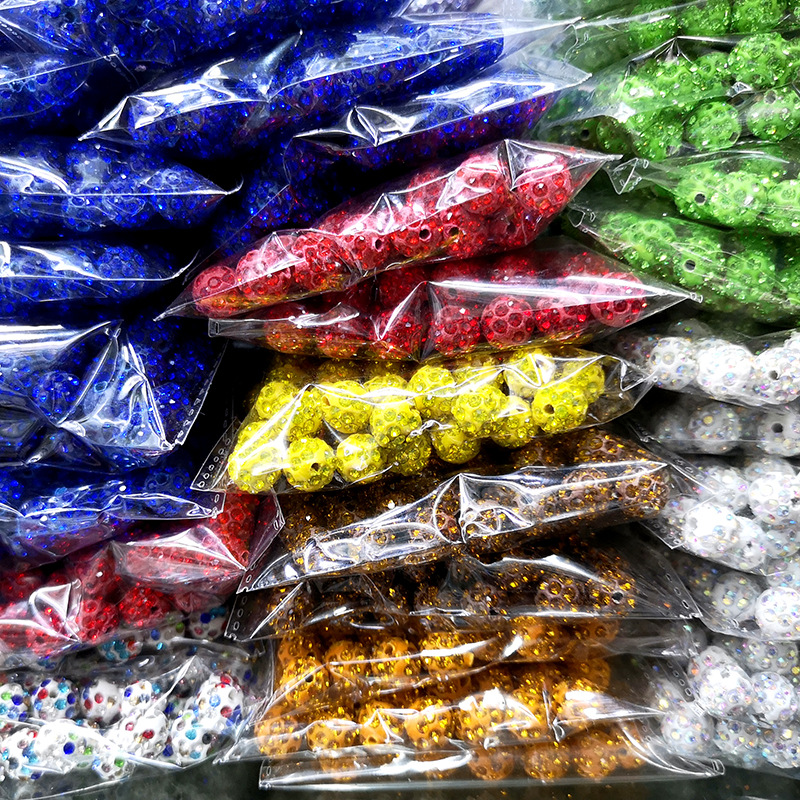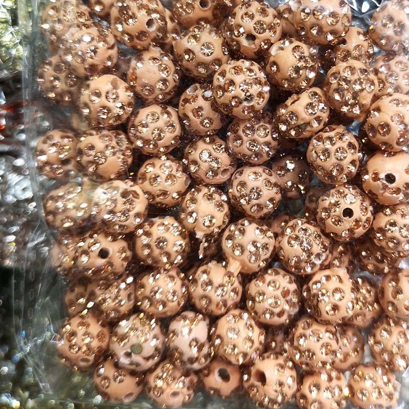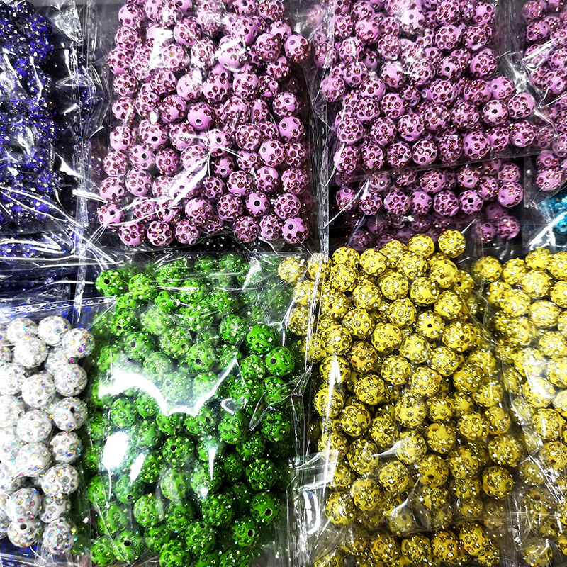 10MM香巴拉陶泥钻球 满钻DIY手链隔珠配件 通孔钻球彩色陶泥钻球
