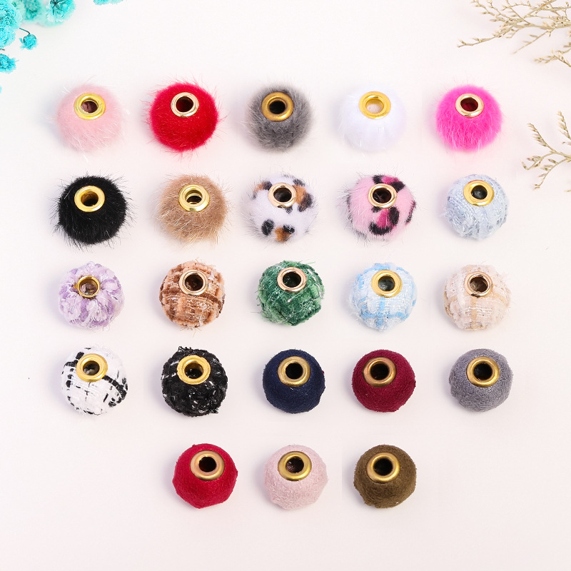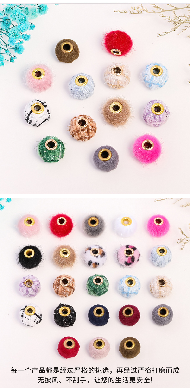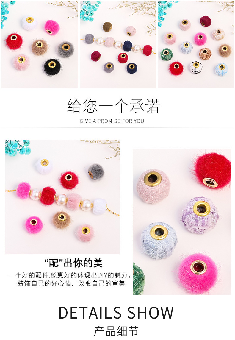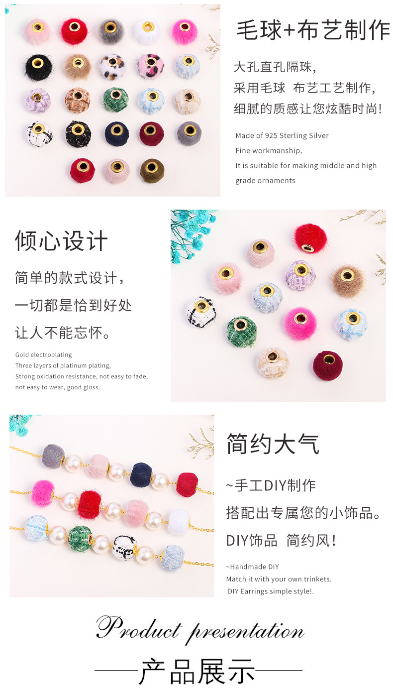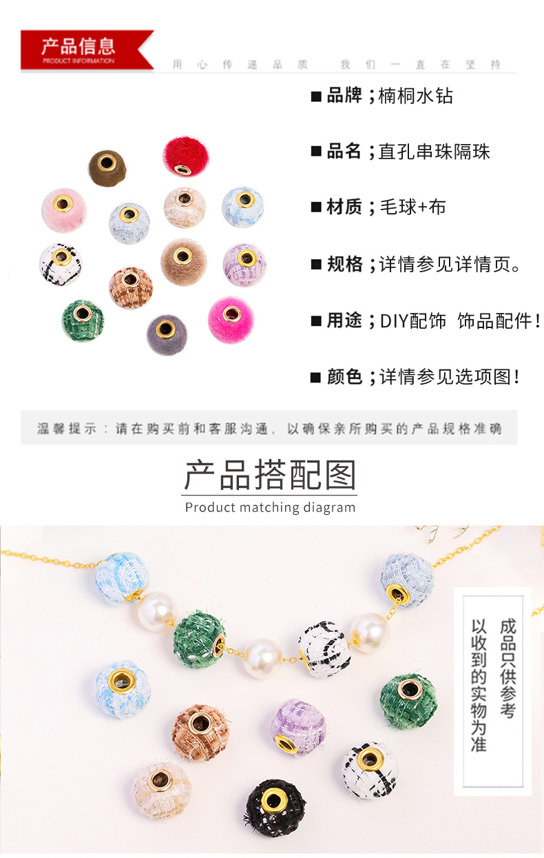 韩版新款小香风彩色毛球金属直孔散珠布艺大孔隔珠 diy饰品配件