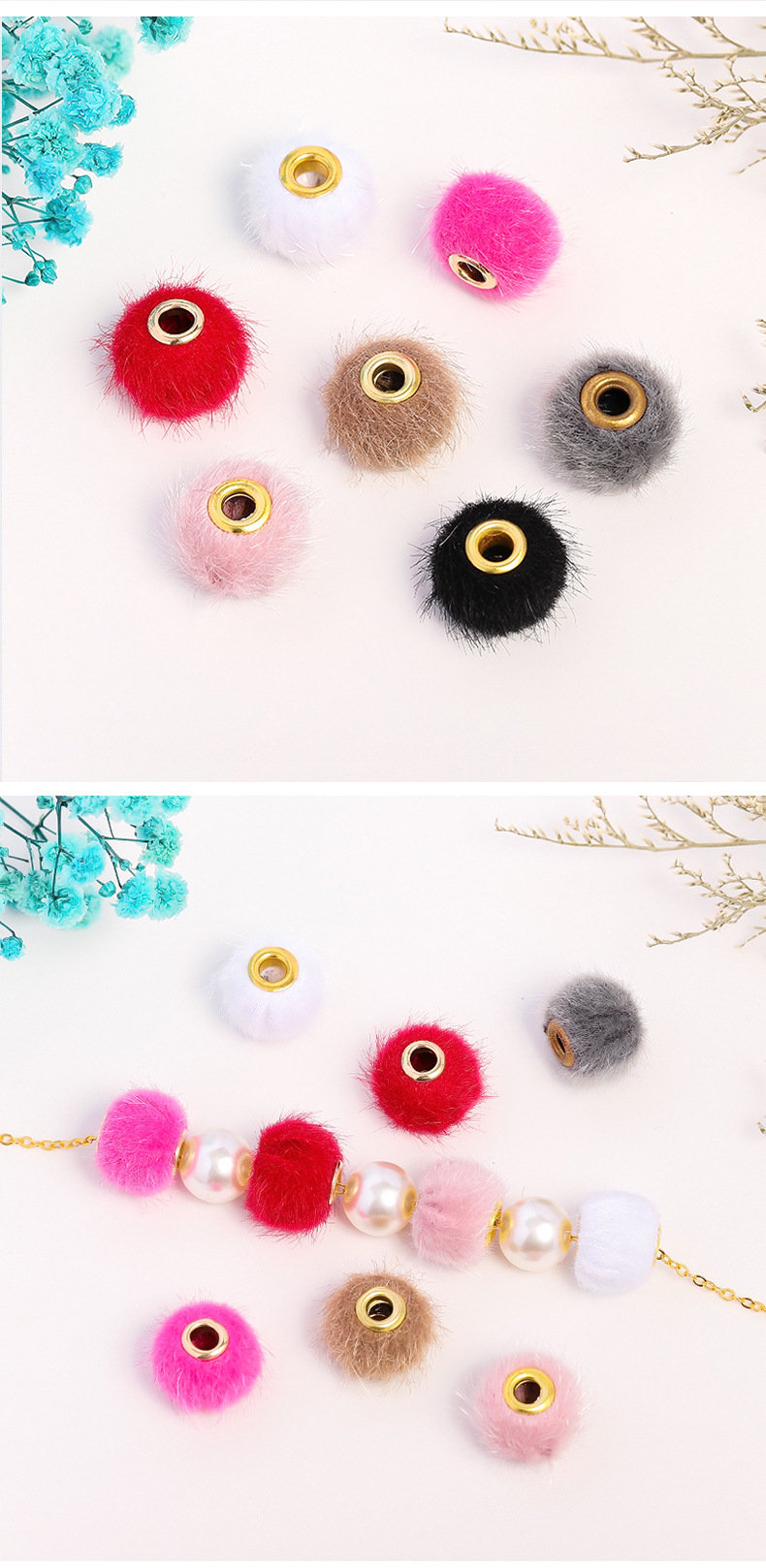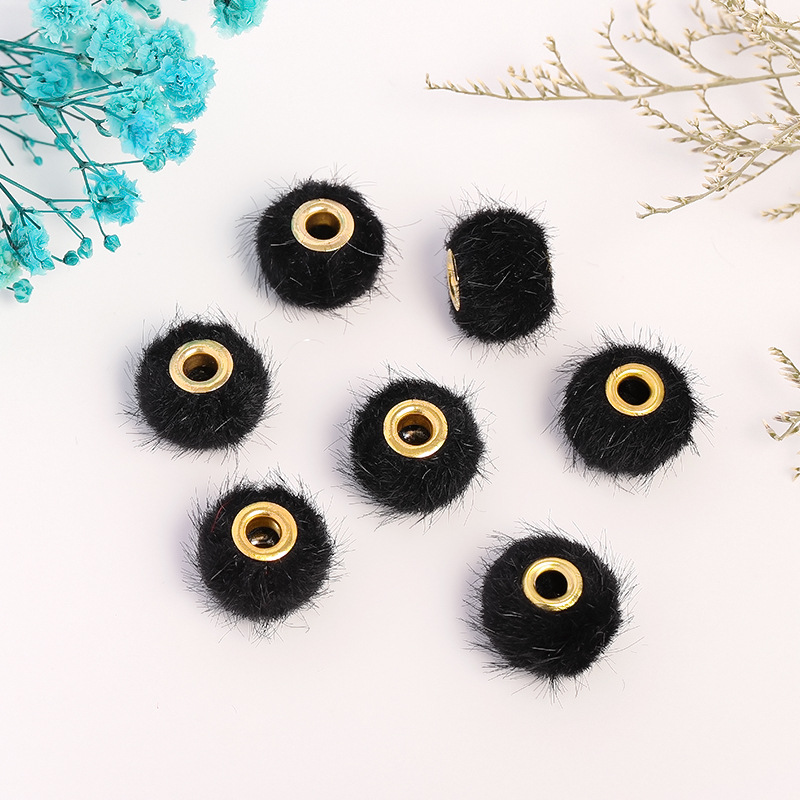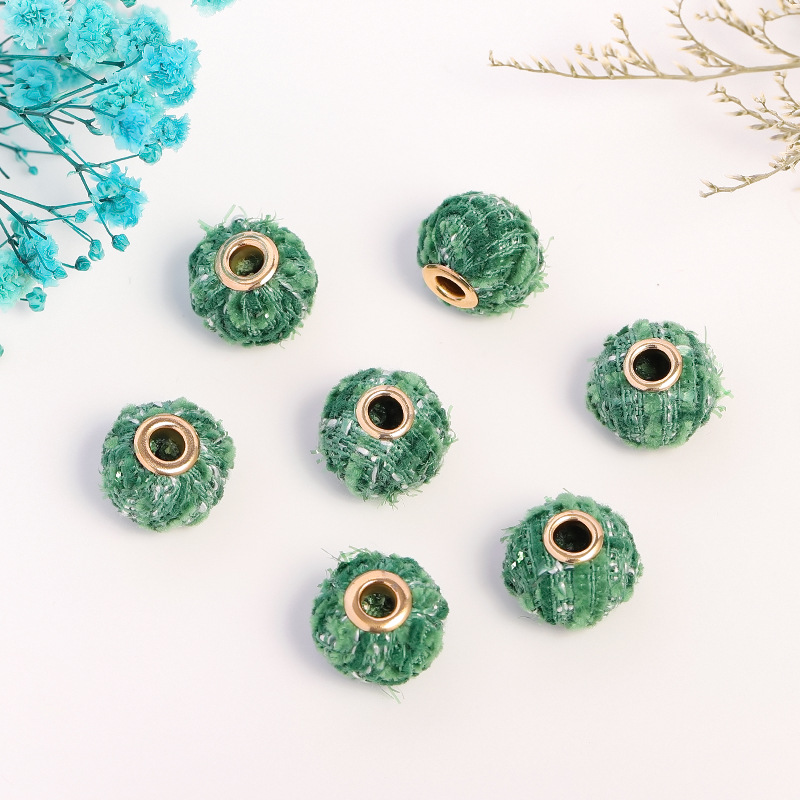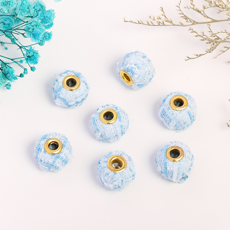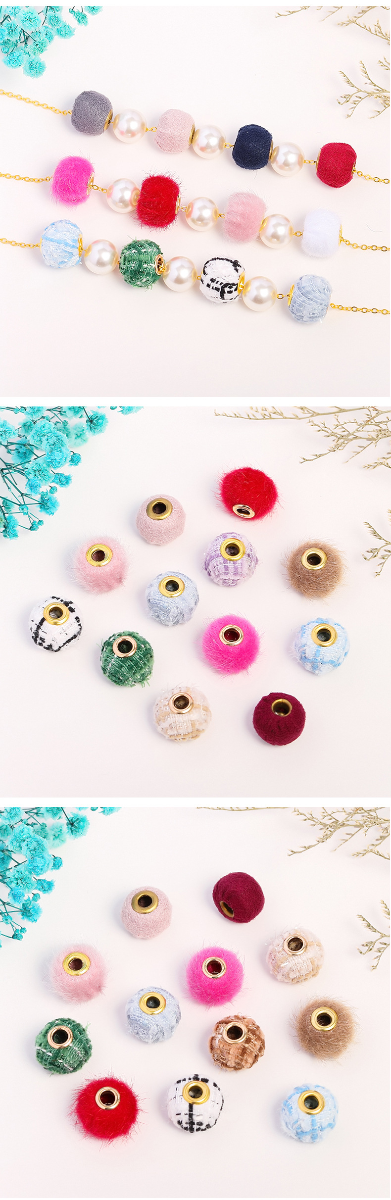 韩版新款小香风彩色毛球金属直孔散珠布艺大孔隔珠 diy饰品配件