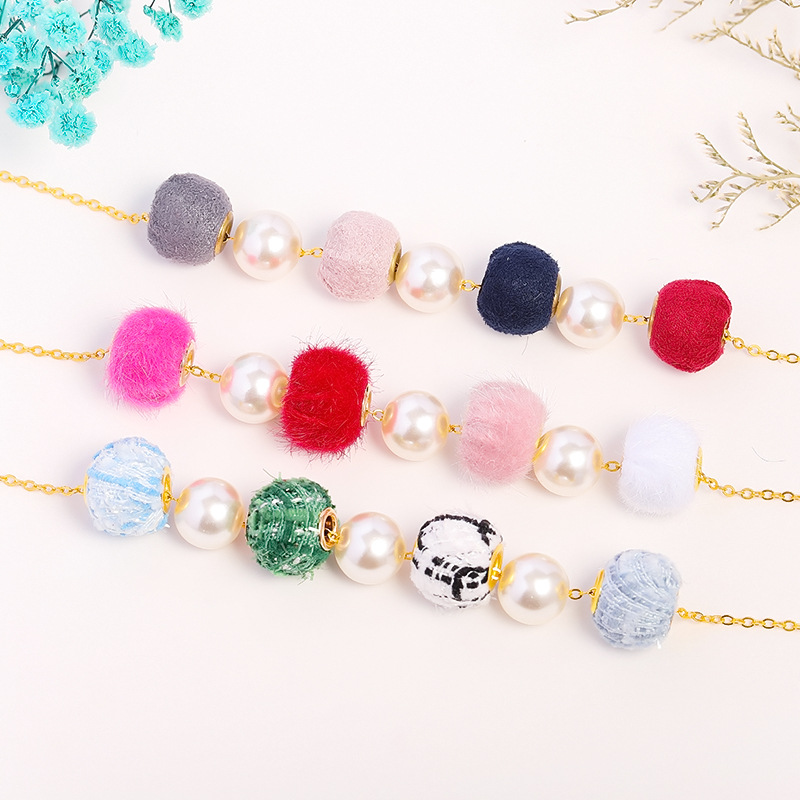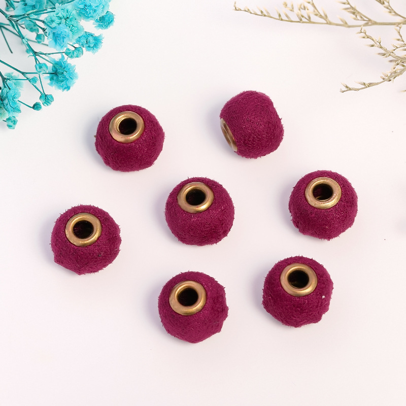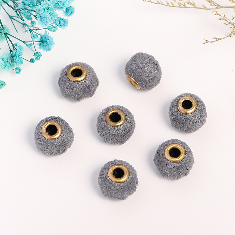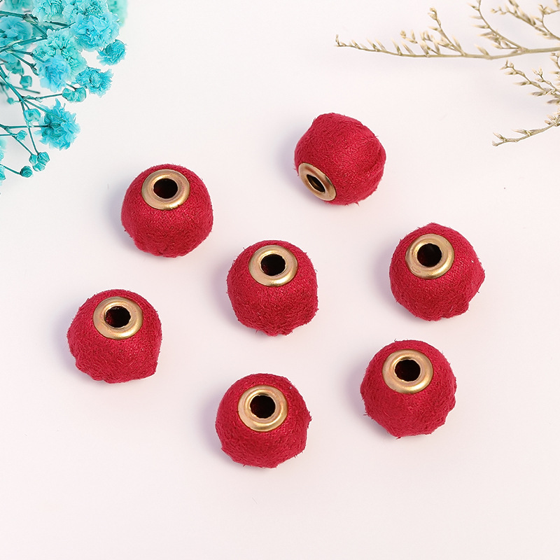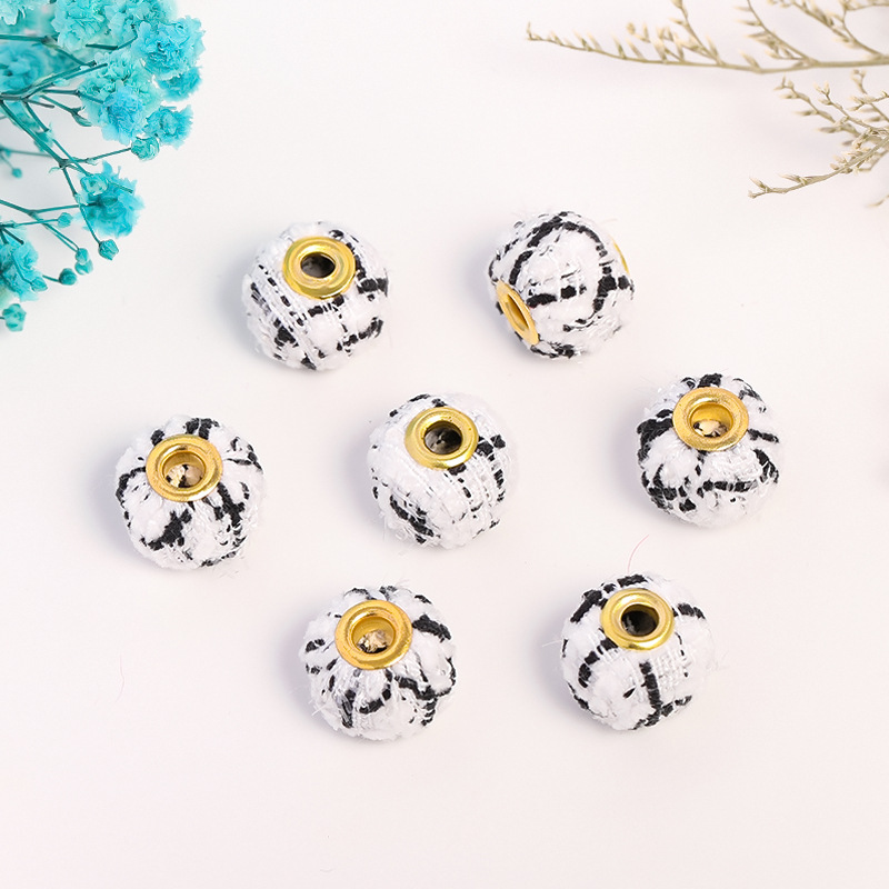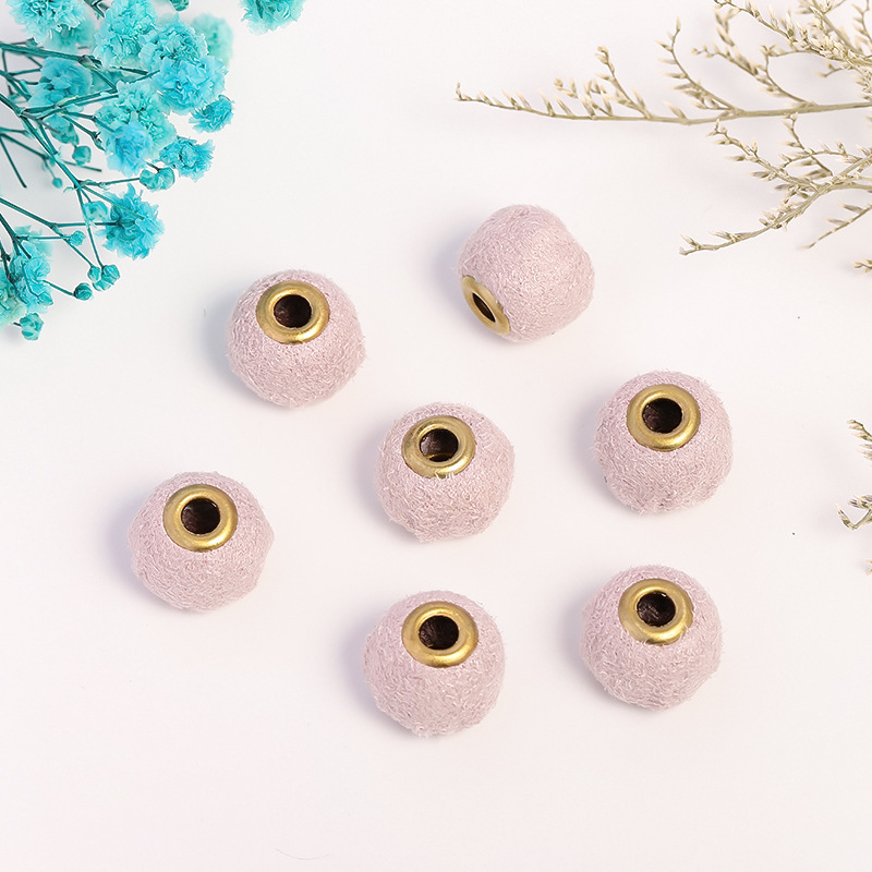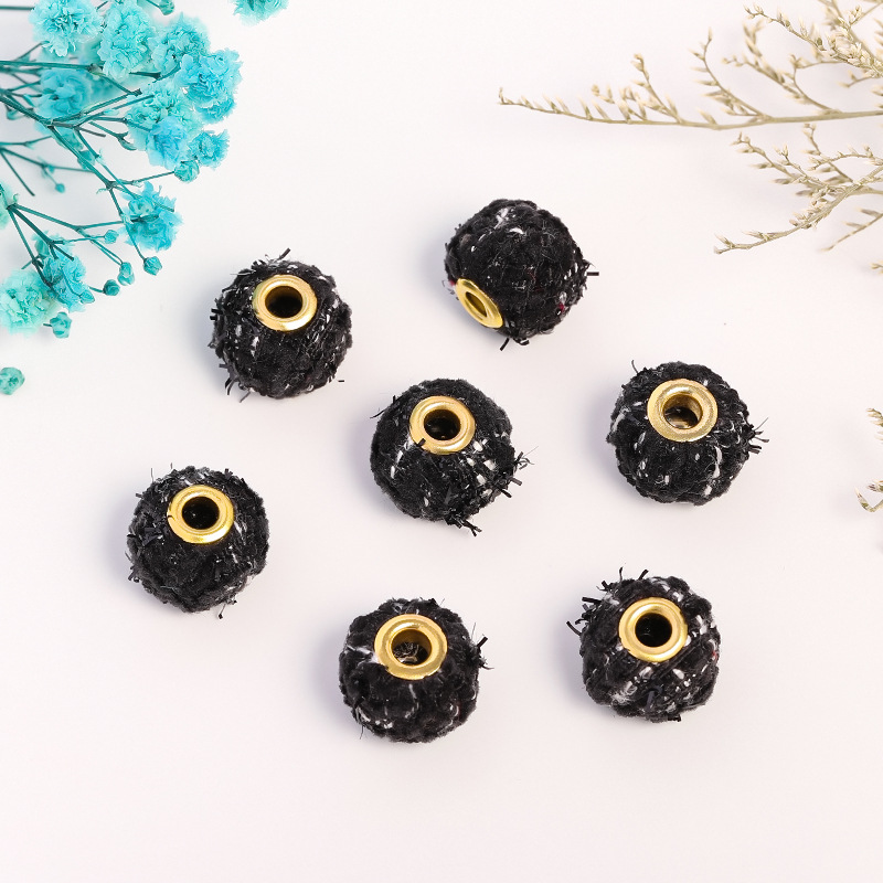 韩版新款小香风彩色毛球金属直孔散珠布艺大孔隔珠 diy饰品配件
