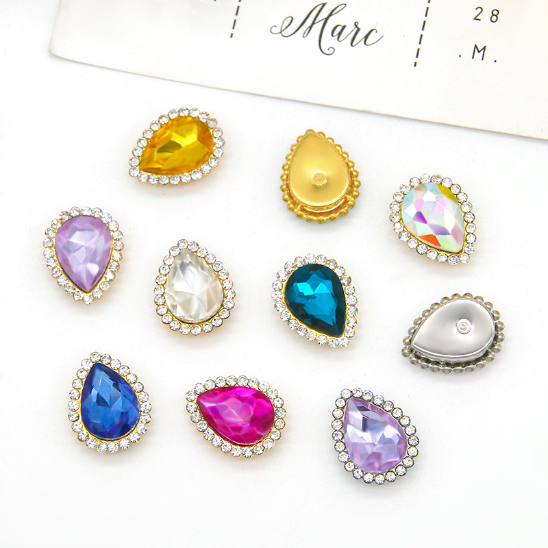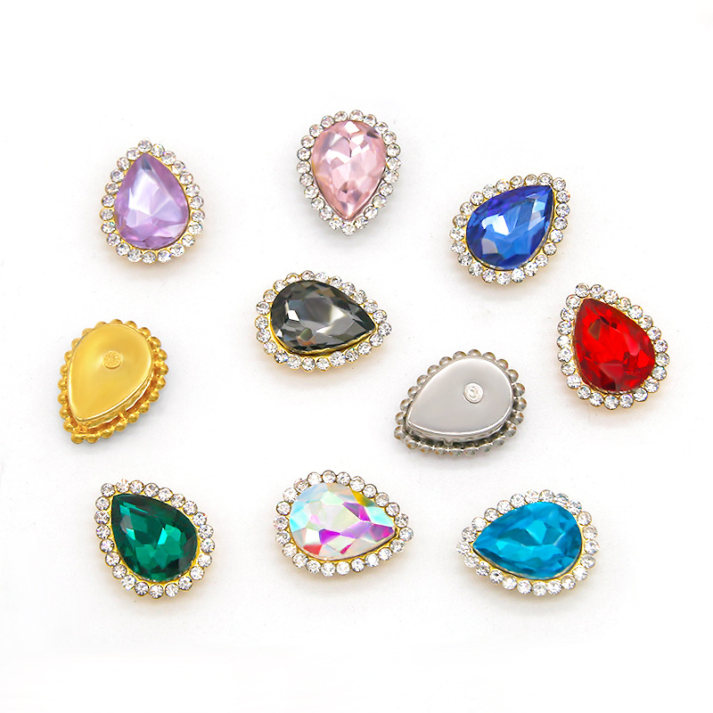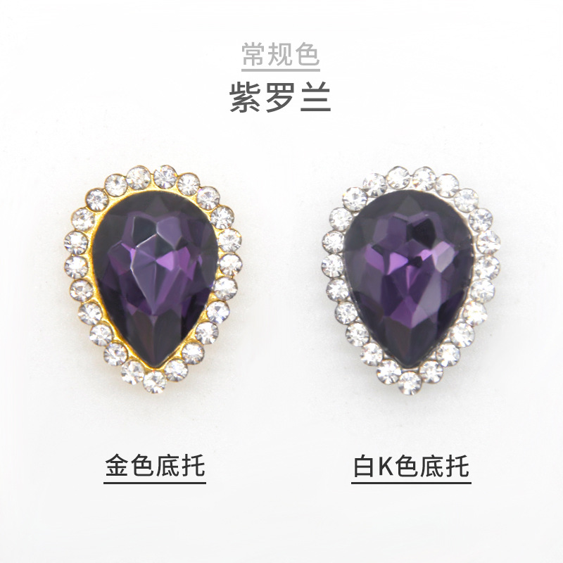 跨境 水滴太阳花手缝石 多彩玻璃爪钻梨形 diy发饰鞋子服饰配