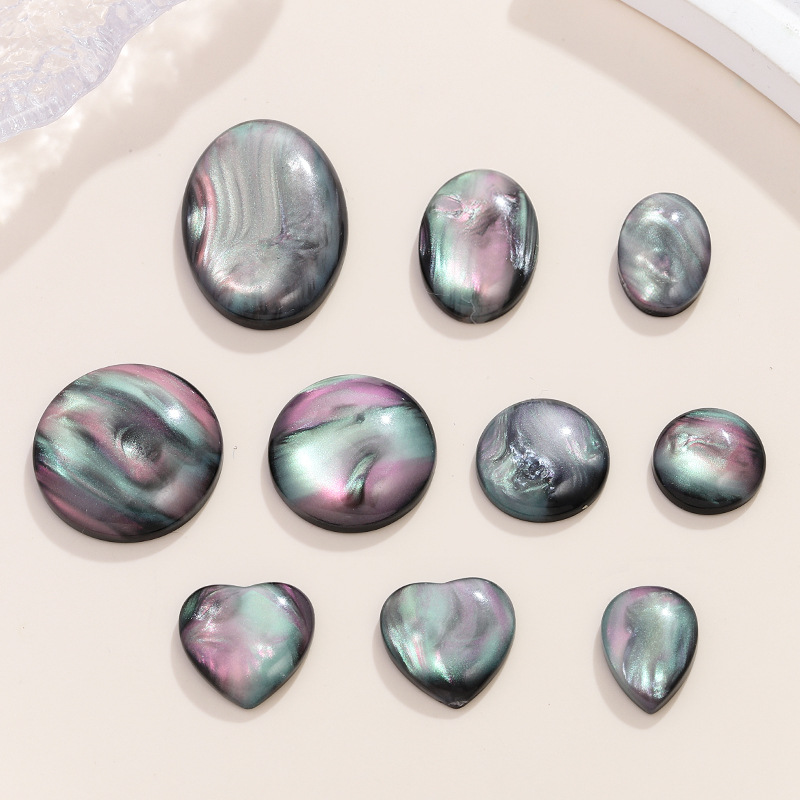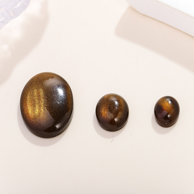 猫眼石宝石树脂椭圆平底戒面耳饰配件古风汉服镶嵌手工diy材料