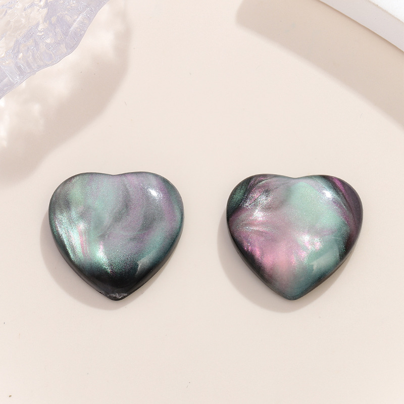 桃心仿宝石猫眼石转色桃心爱心心形树脂耳环耳坠耳钉配件项链吊坠