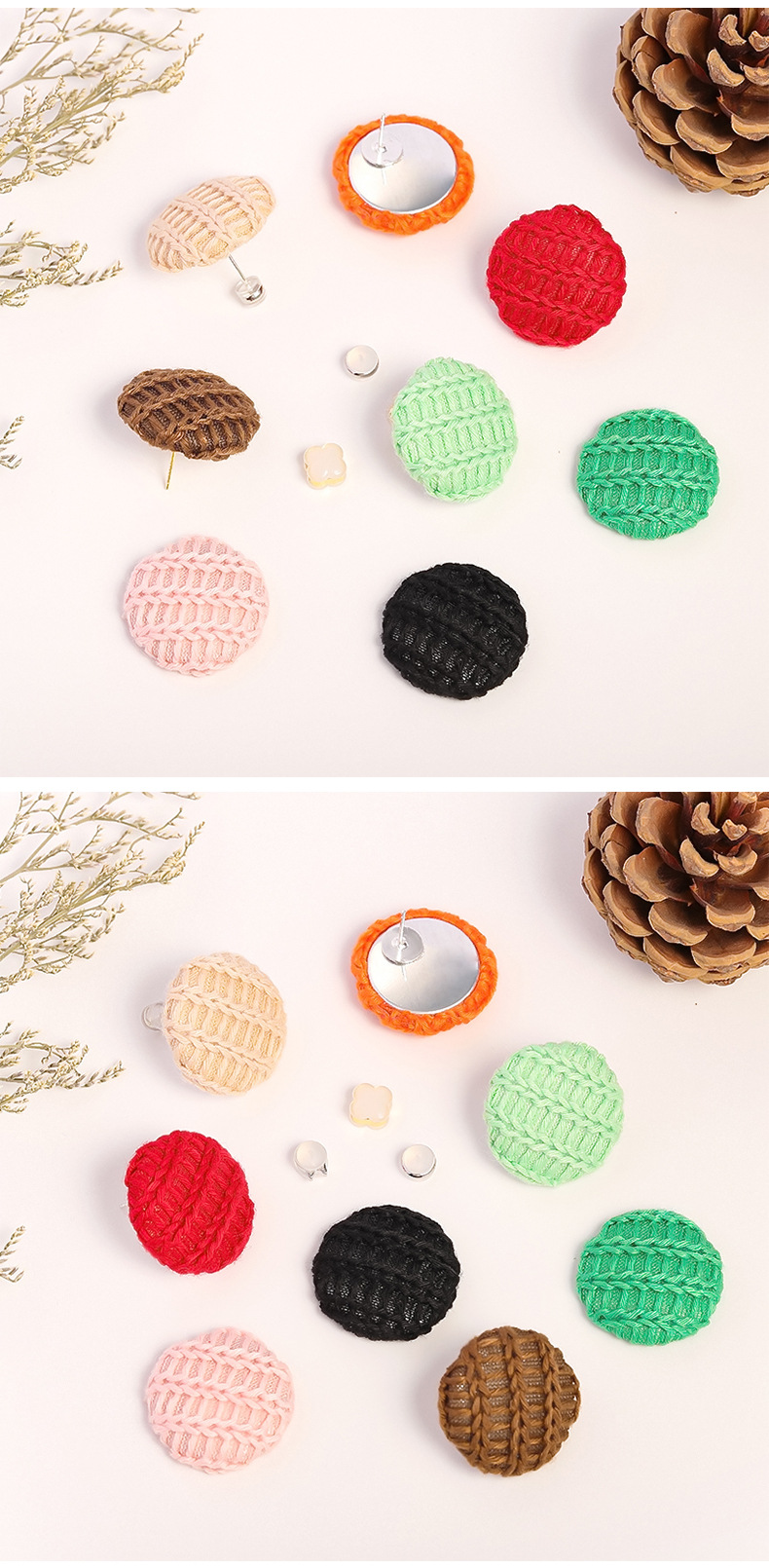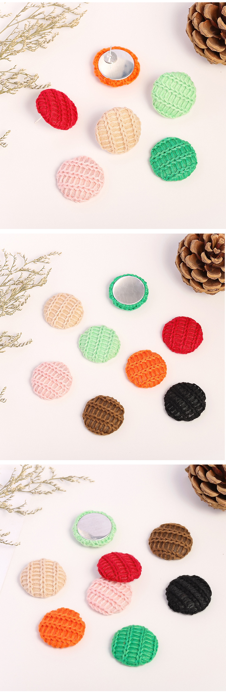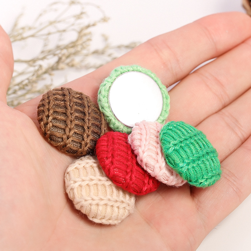 韩版圆形毛线布包扣 布艺纽扣平底纽扣 diy手工耳环发饰服装配件