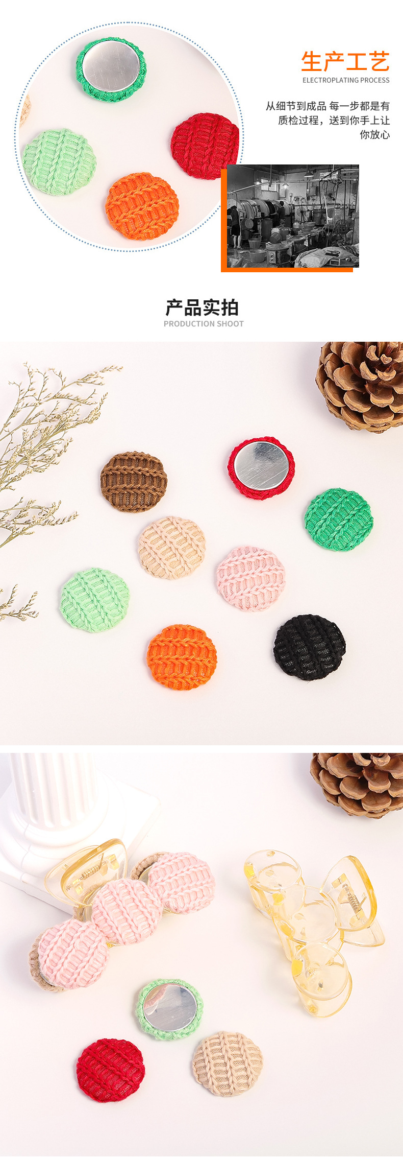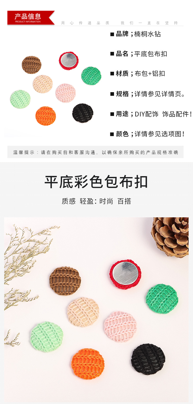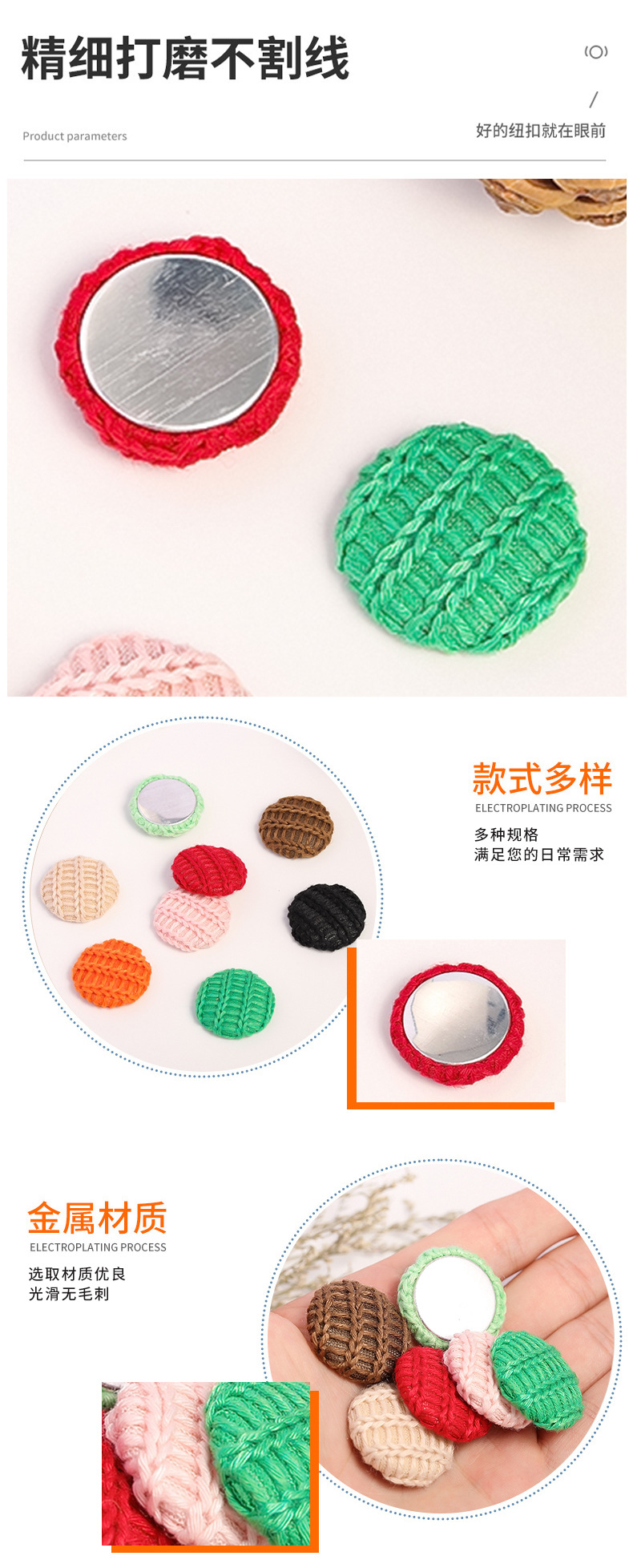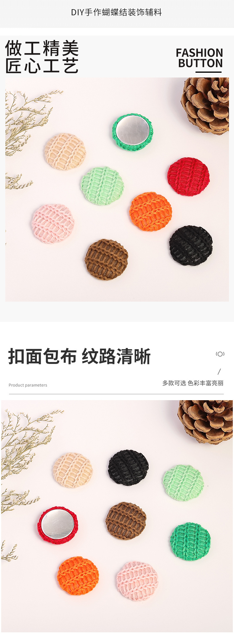 | round wool cloth buckle round diameter 27mm(圆形毛线布包扣 圆径27mm) | USD $0.04 | 63999 piece available |