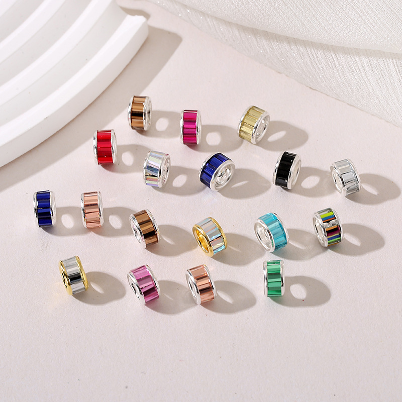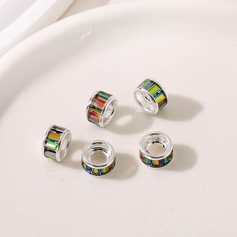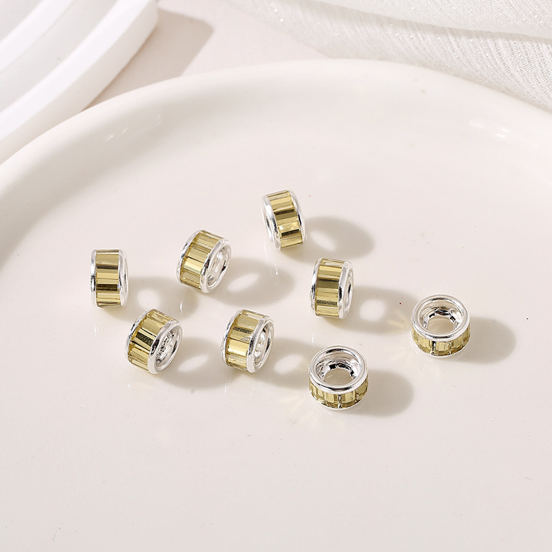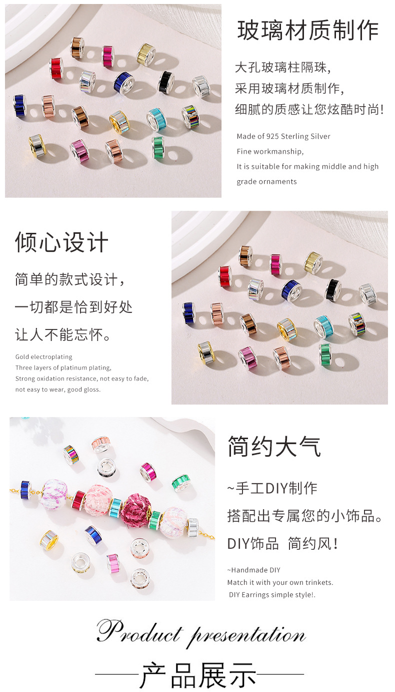 大孔玻璃柱镀银底玻璃水晶串珠金底手链珠子 diy饰品配件散珠管珠