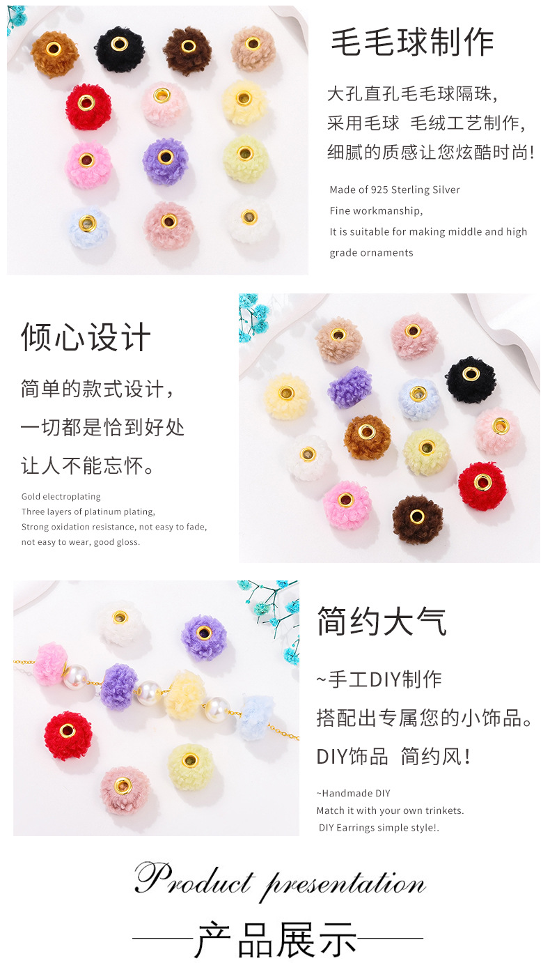 | 20mm teddy fur ball large hole spacer bead(20MM 泰迪毛球大孔隔珠) | USD $0.05 | 98879 piece available |