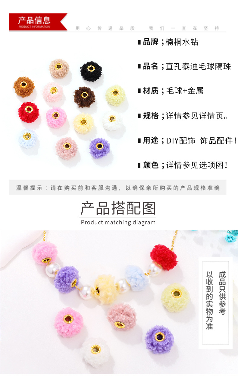 | 20mm teddy fur ball large hole spacer bead(20MM 泰迪毛球大孔隔珠) | USD $0.05 | 98799 piece available |