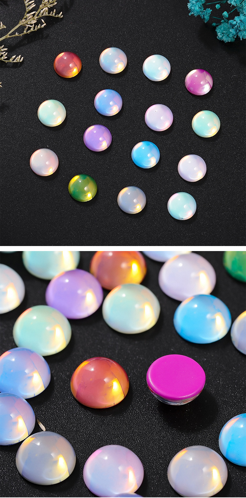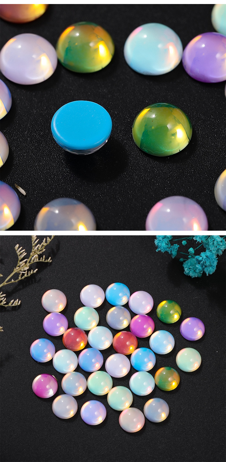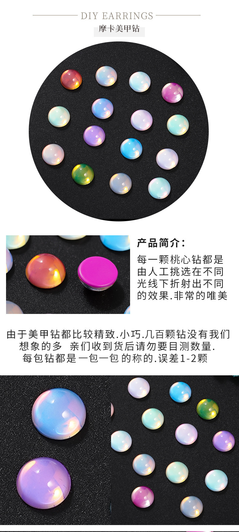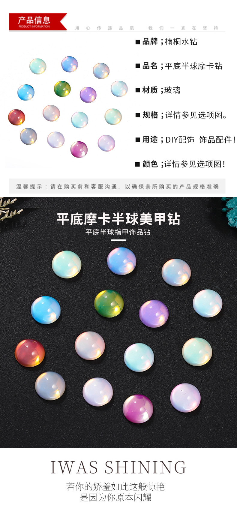 新款平底半球水晶玻璃摩卡钻美甲饰品 diy幻彩色可穿戴甲装饰品