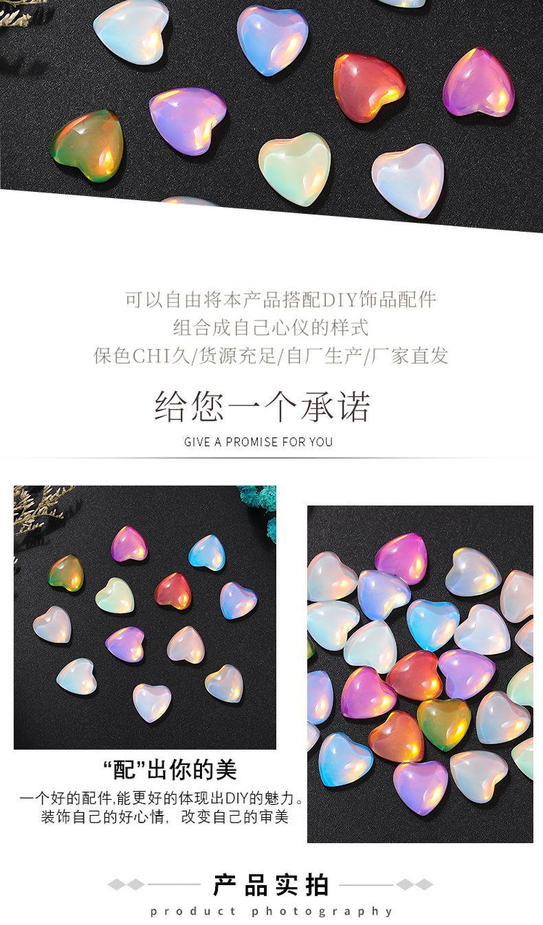新款平底正桃心水晶玻璃摩卡钻美甲饰品 diy幻彩色可穿戴甲装饰品