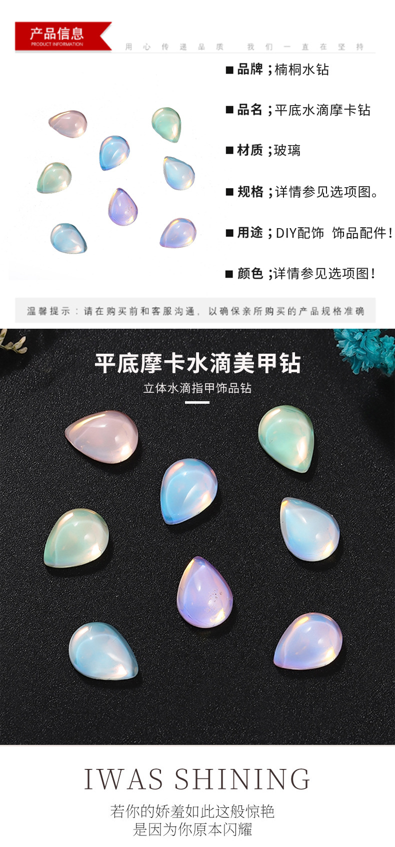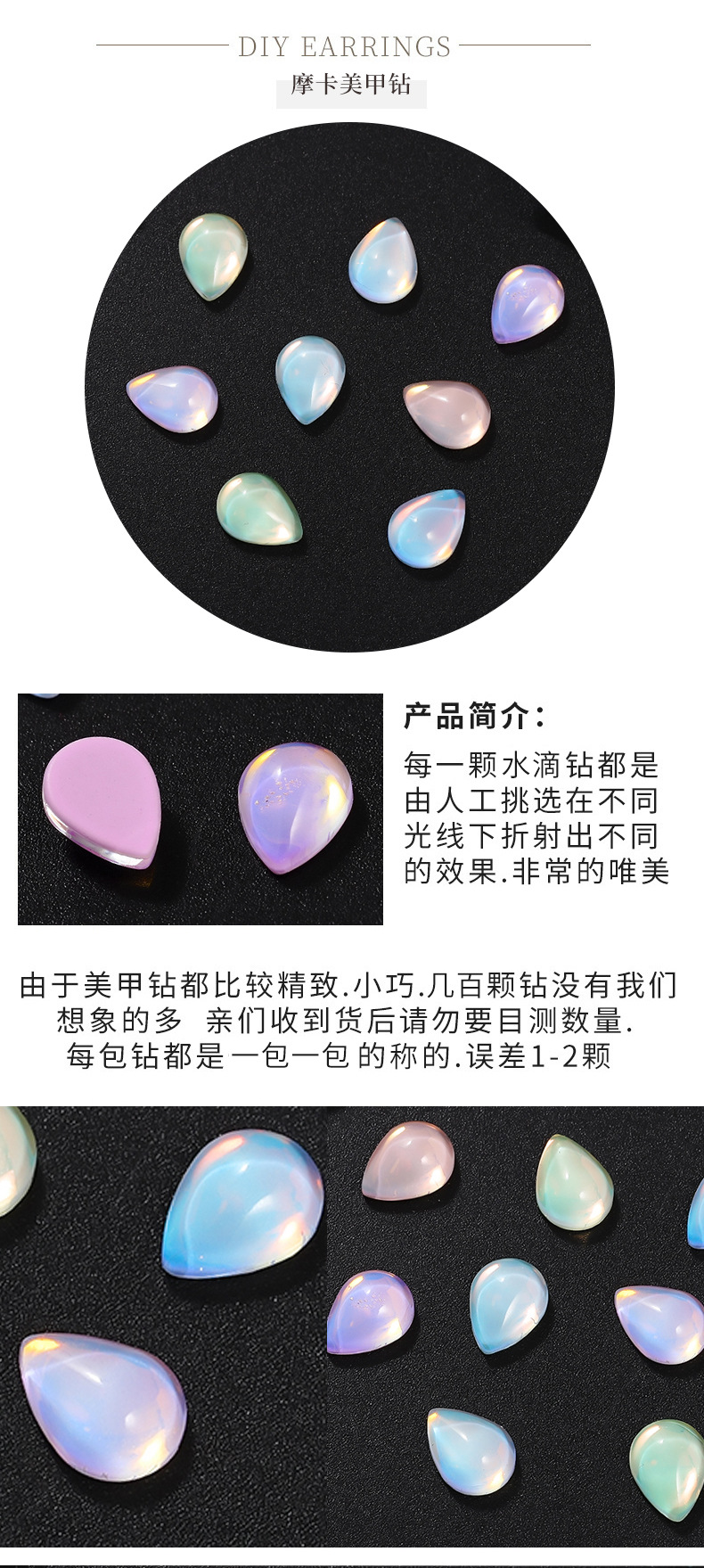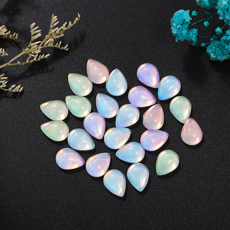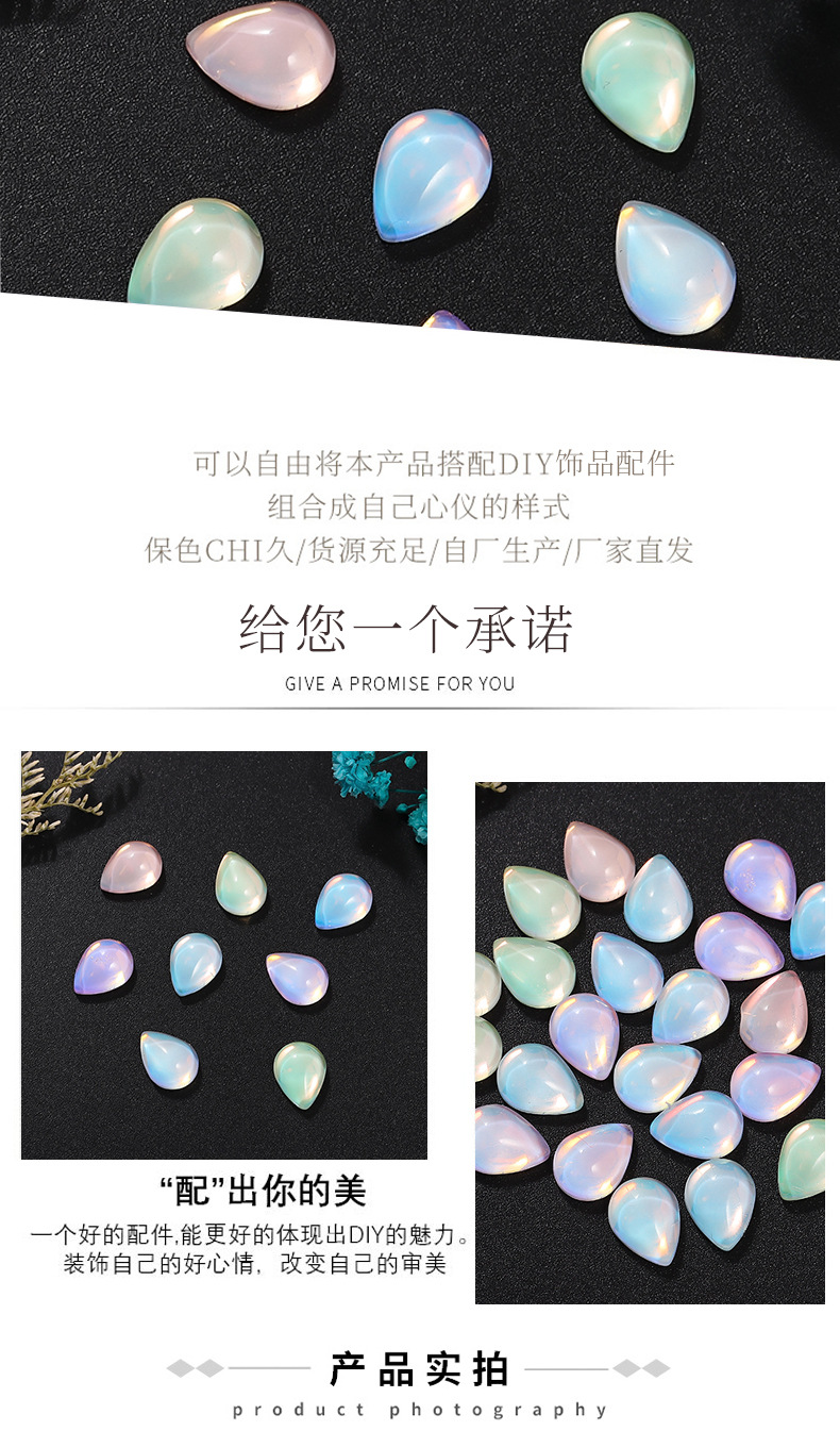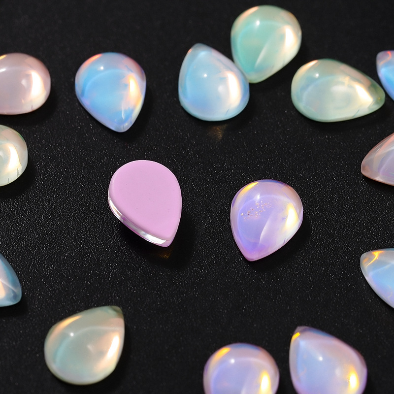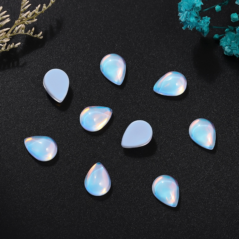 新款平底光面水滴水晶玻璃摩卡钻美甲饰品 diy幻彩色可穿戴甲装饰