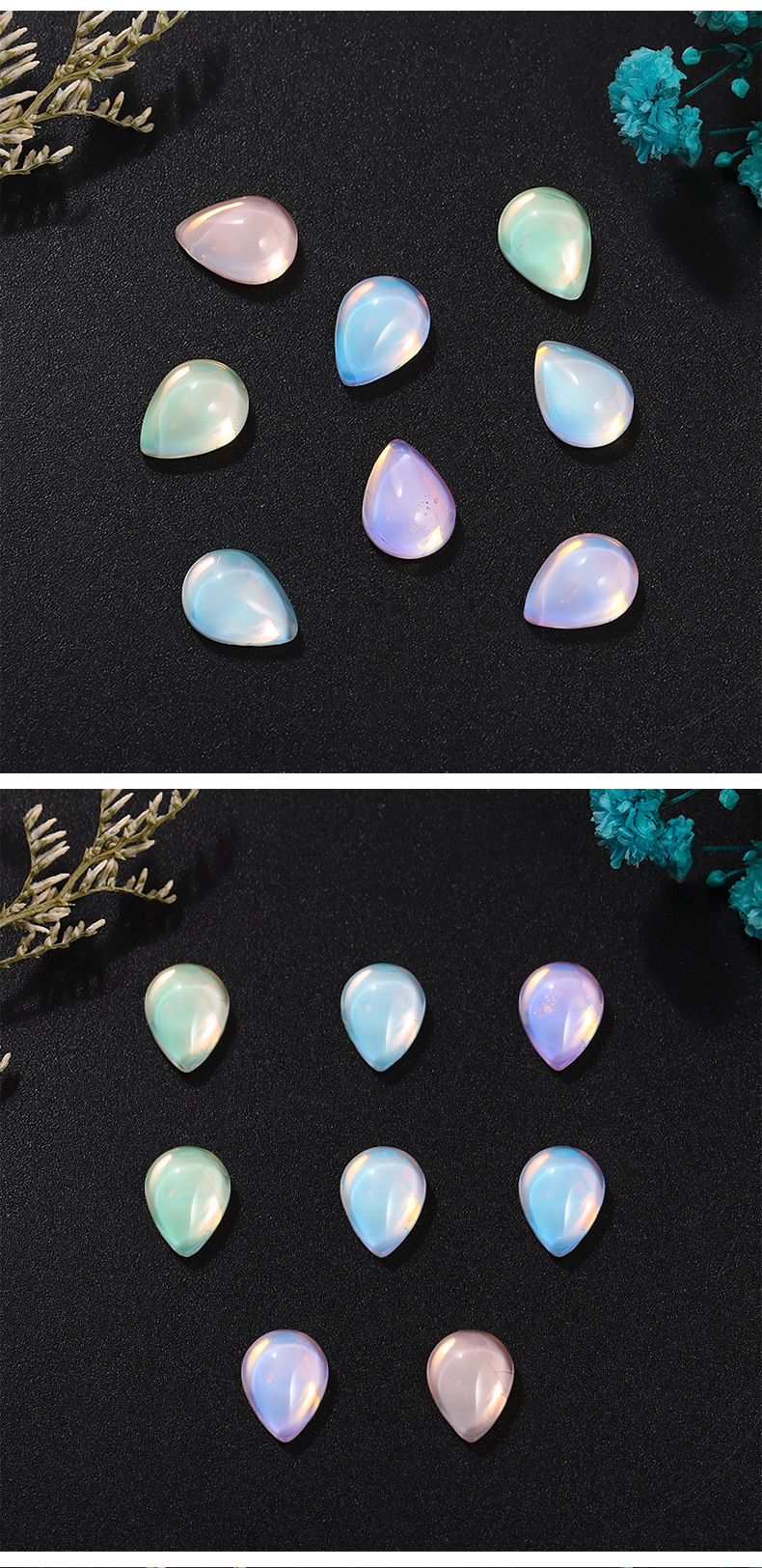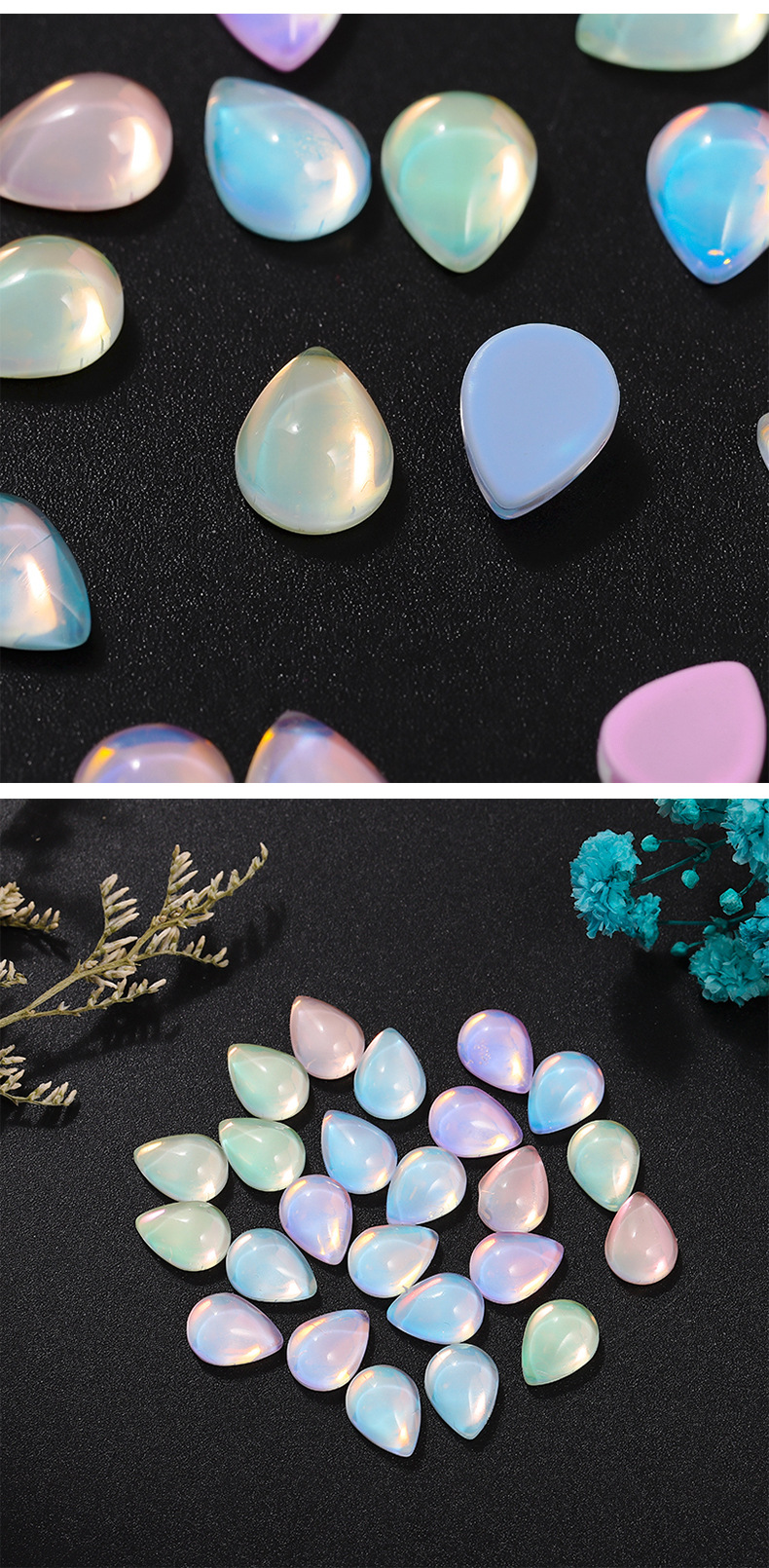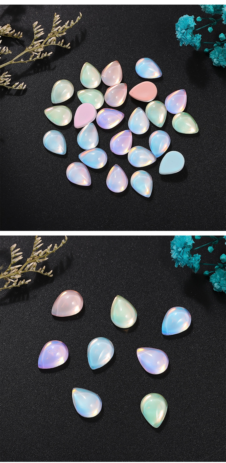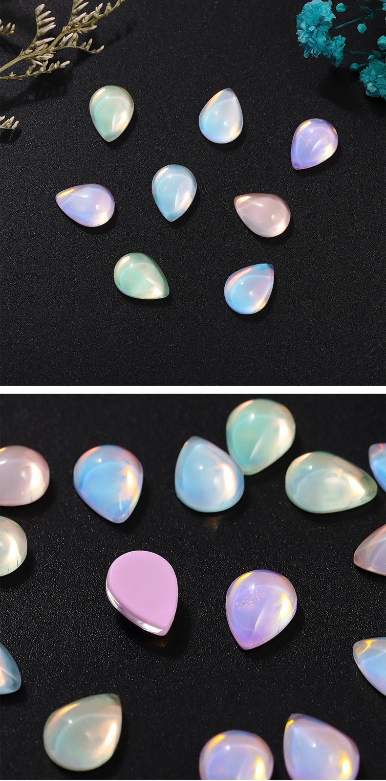 新款平底光面水滴水晶玻璃摩卡钻美甲饰品 diy幻彩色可穿戴甲装饰