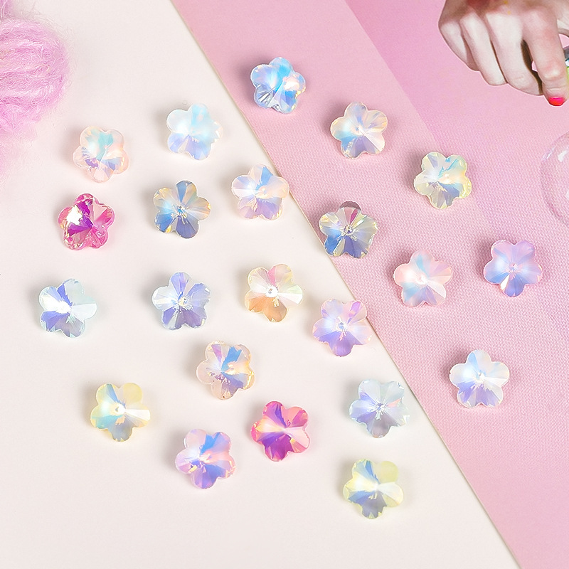 新款尖底花朵水晶玻璃摩卡钻美甲饰品 diy马卡龙色穿戴甲装饰品