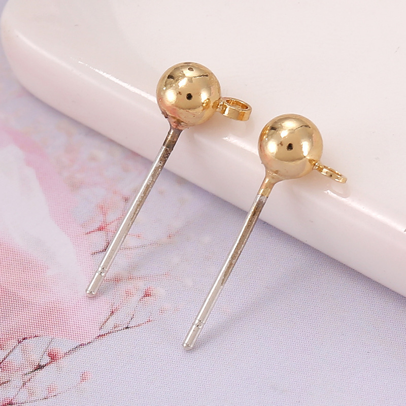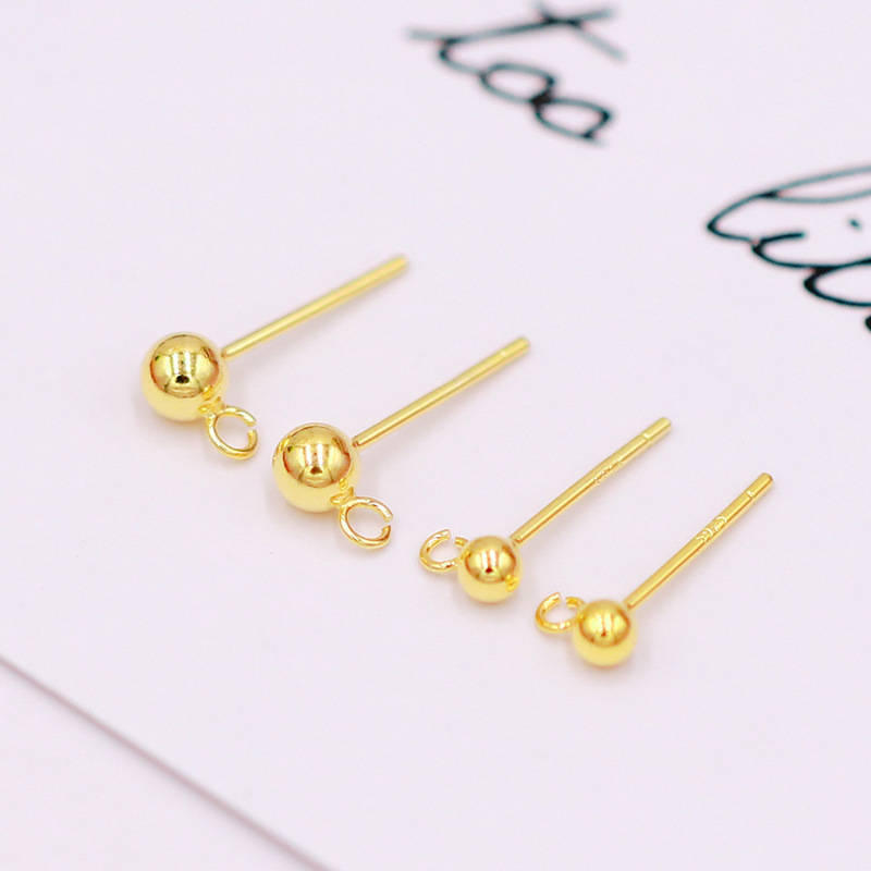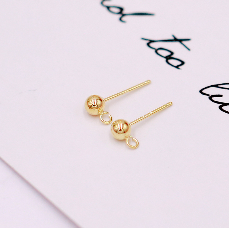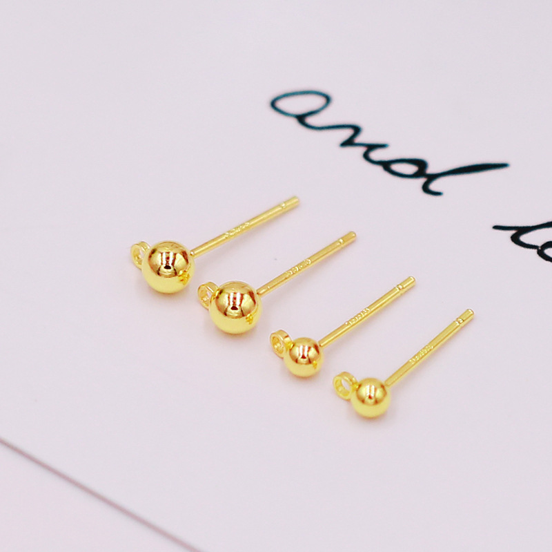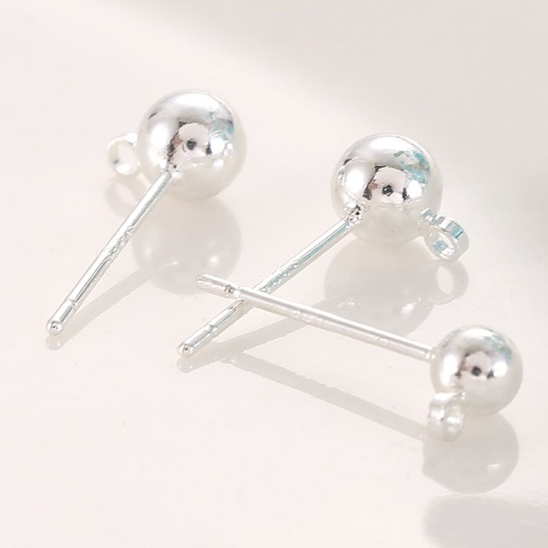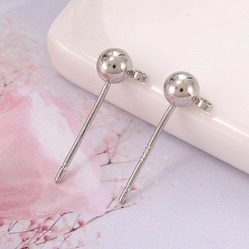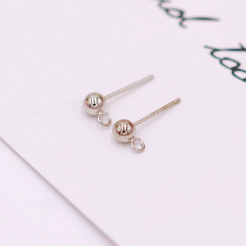 保色S925银针带吊圈豆豆耳钉 白K色圆球耳环针配件diy耳饰配件