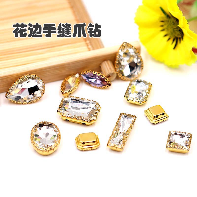 花边包边钻 椭圆玻璃爪钻 防钩挂花篮爪钻 服饰闪手缝钻