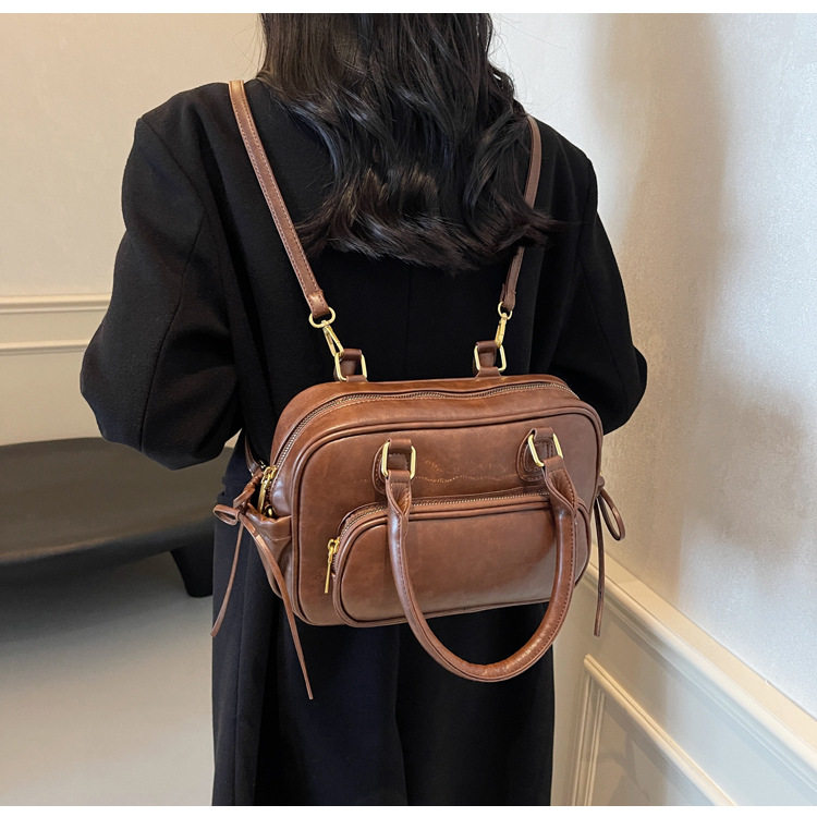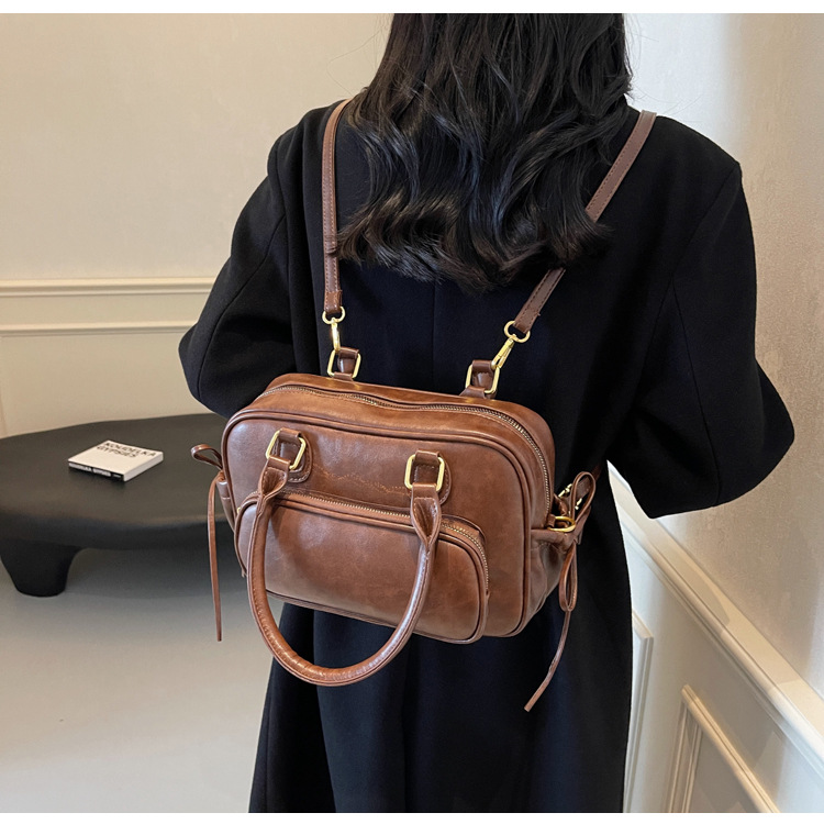 2024新款女士复古双肩包时尚手提包高级感通勤单肩包