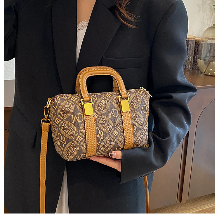 新款高级感女士包包复古字母印花手提包潮流时尚单肩斜挎包