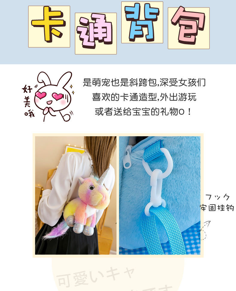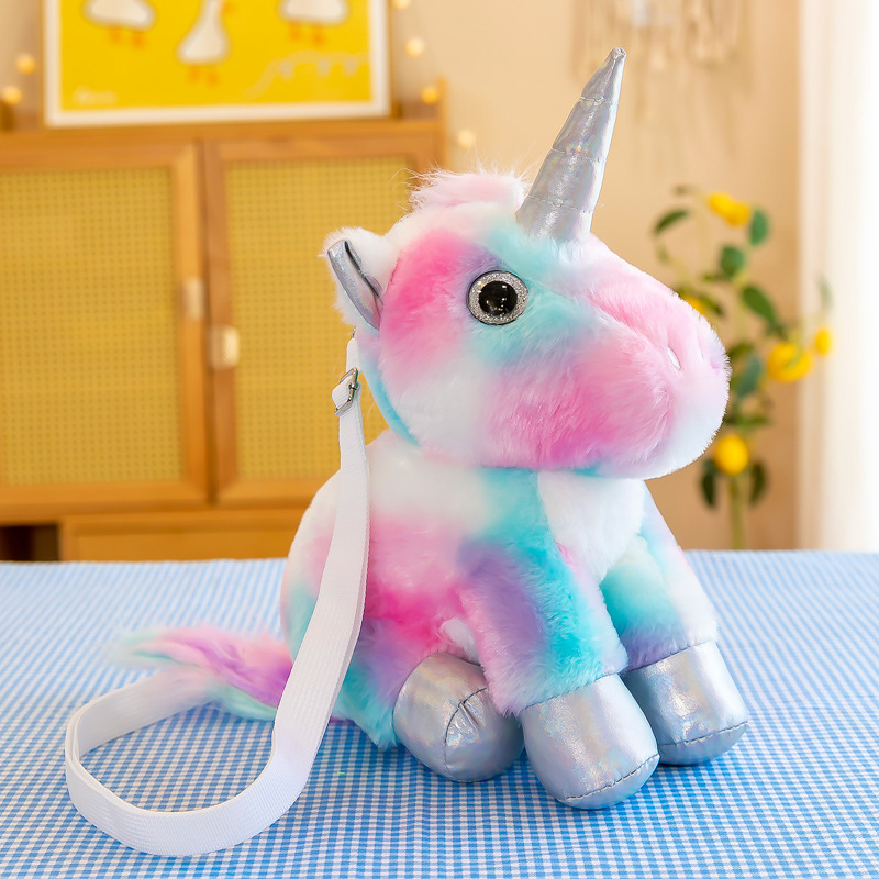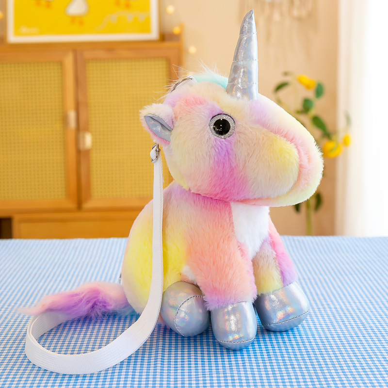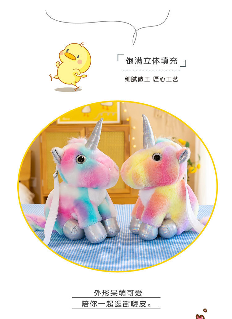 卡通包包炫彩独角兽毛绒背包可爱公仔娃娃收纳包儿童单肩斜挎包