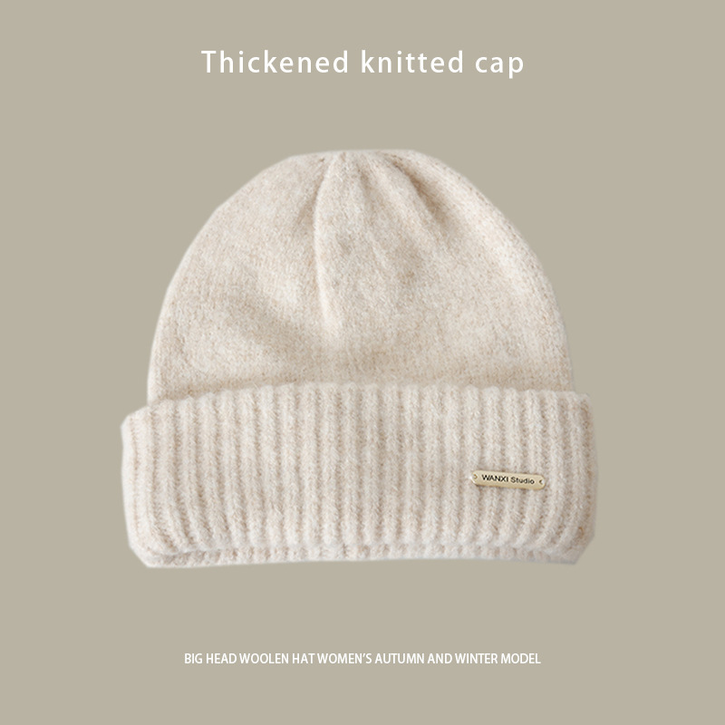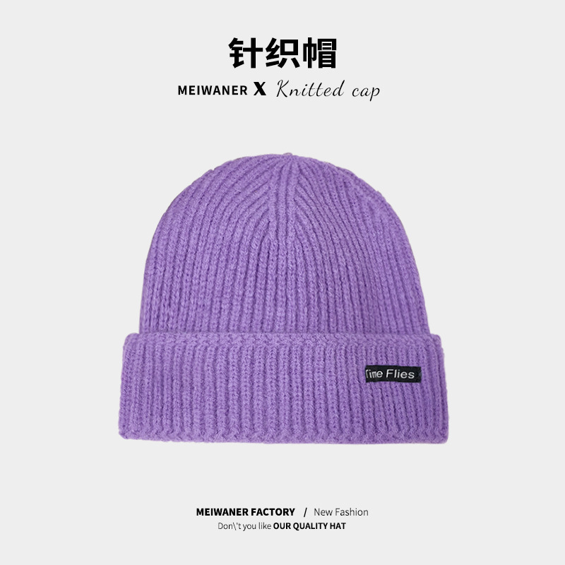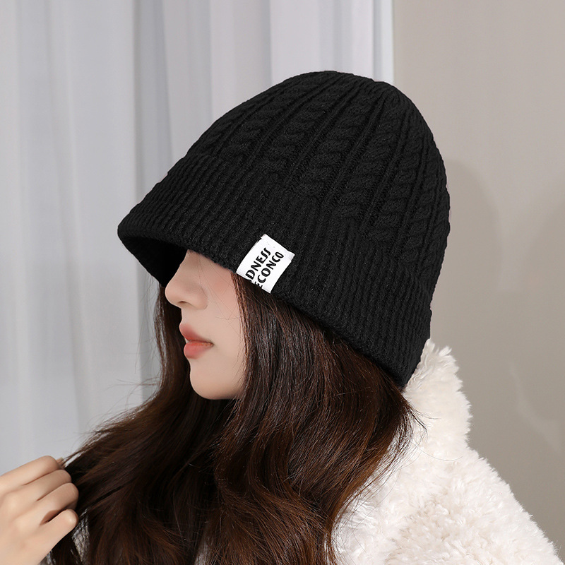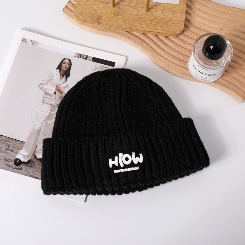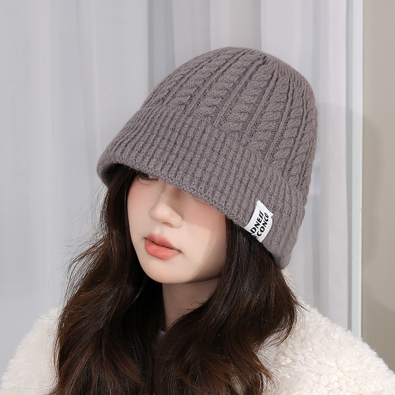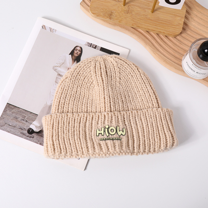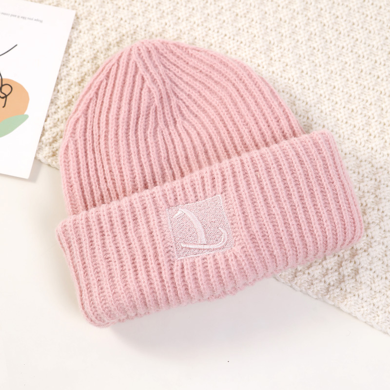 严选女秋冬毛线帽子纯色保暖套头瓜皮帽百搭字母毛线帽户外防风帽