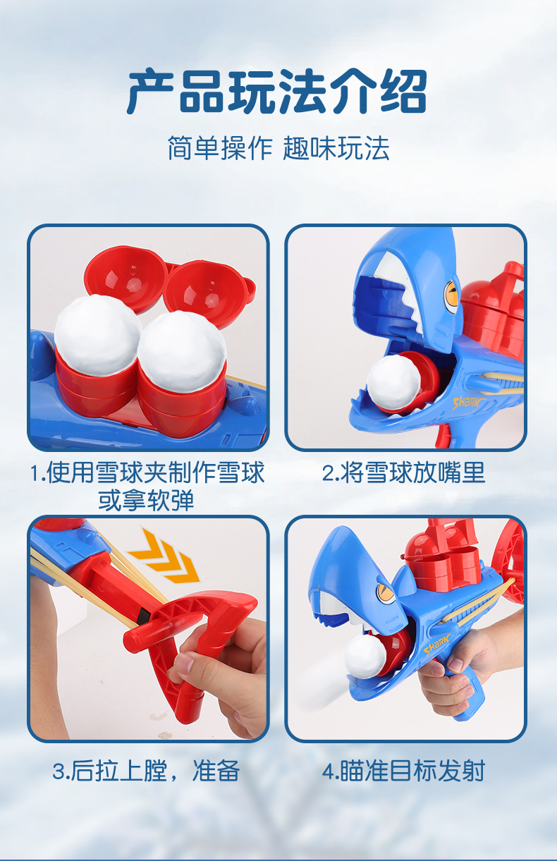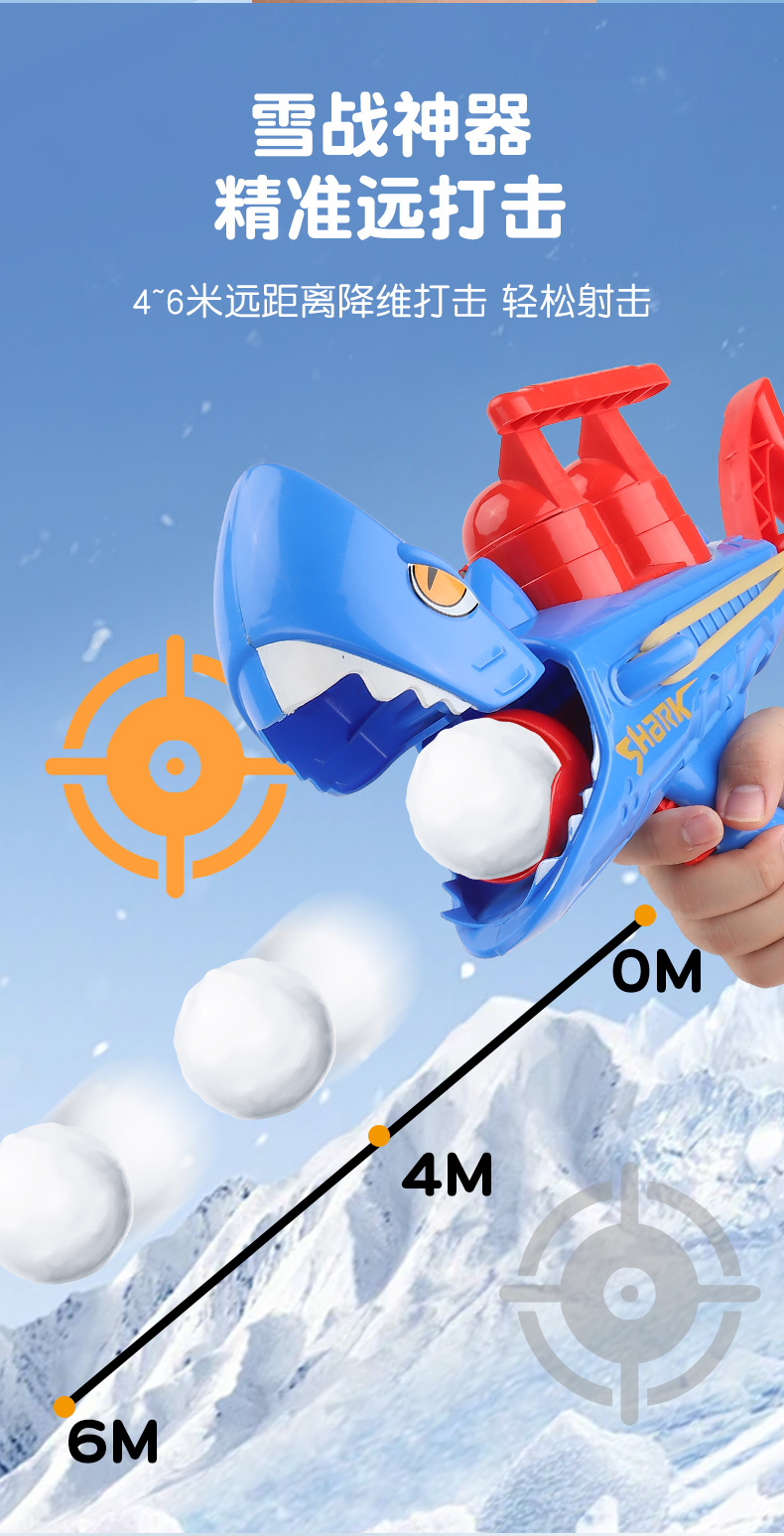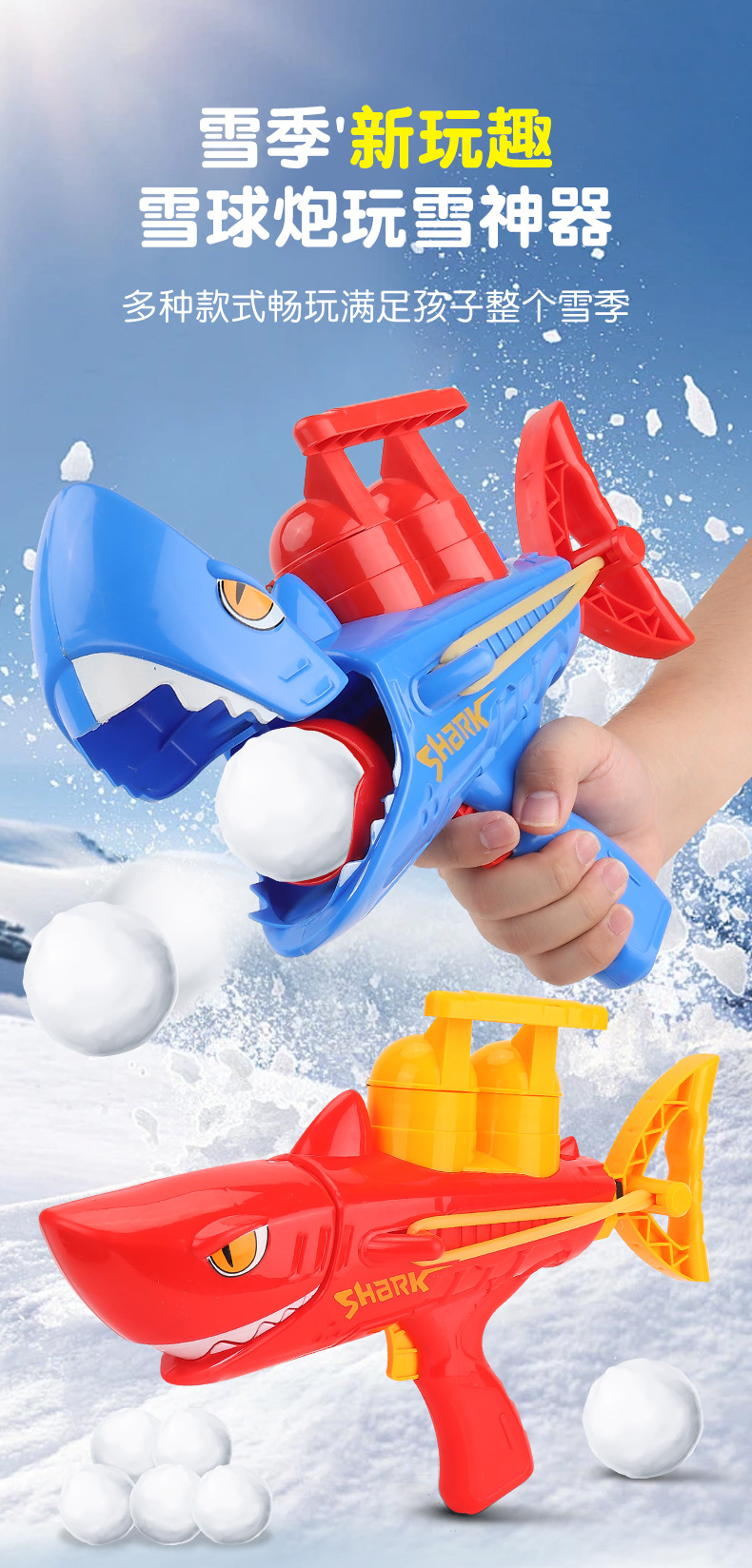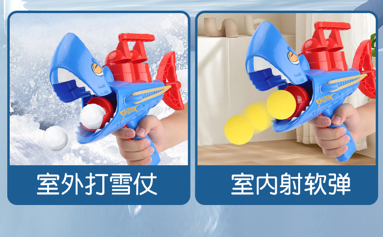 鲨鱼雪球枪雪球软弹发射器玩雪夹子雪地玩雪冬天户外打雪仗玩具枪