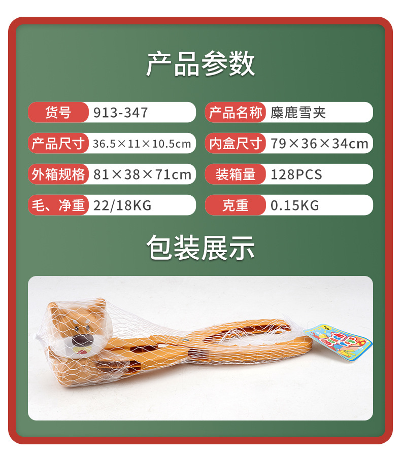 跨境热销儿童雪地玩具圣诞麋鹿雪夹玩雪夹子冬日户外夹雪雪夹批发