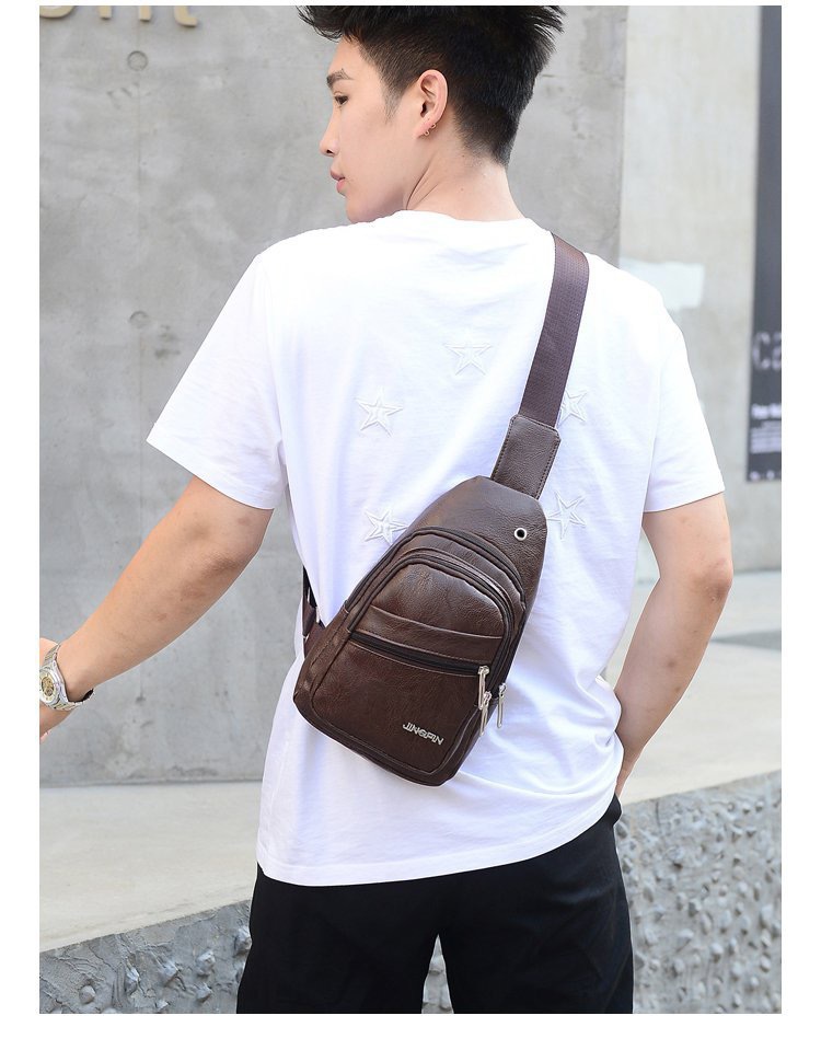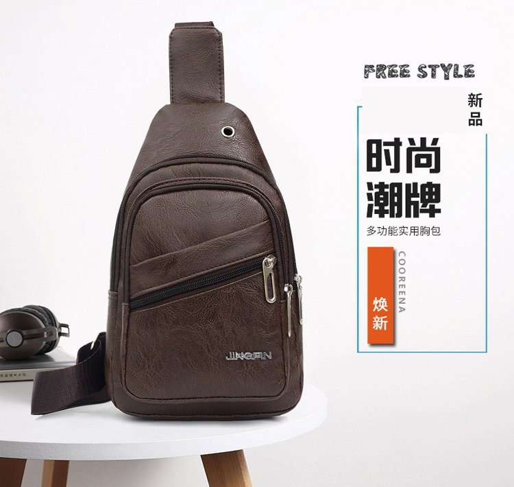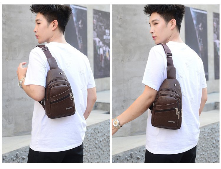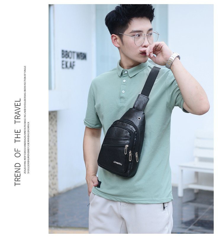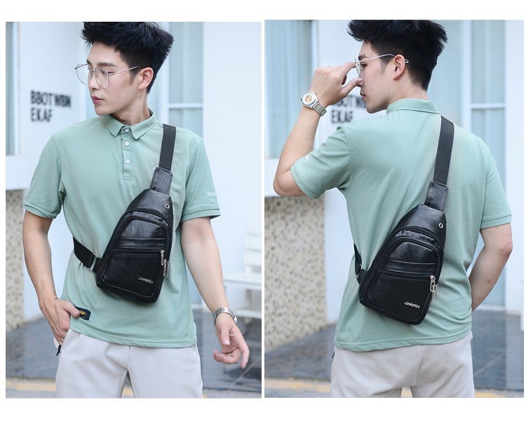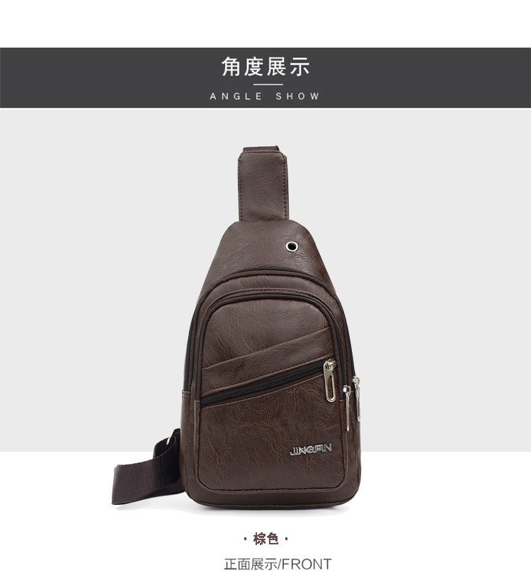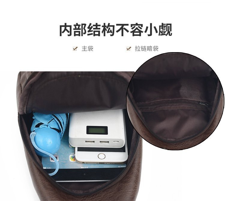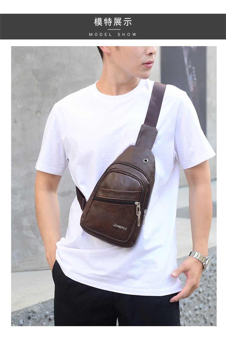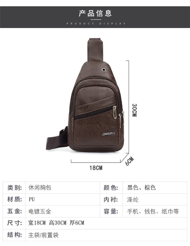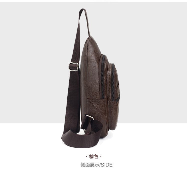 男士胸包双拉链休闲胸包多功能户外大容量斜挎包pu皮单肩斜挎包包