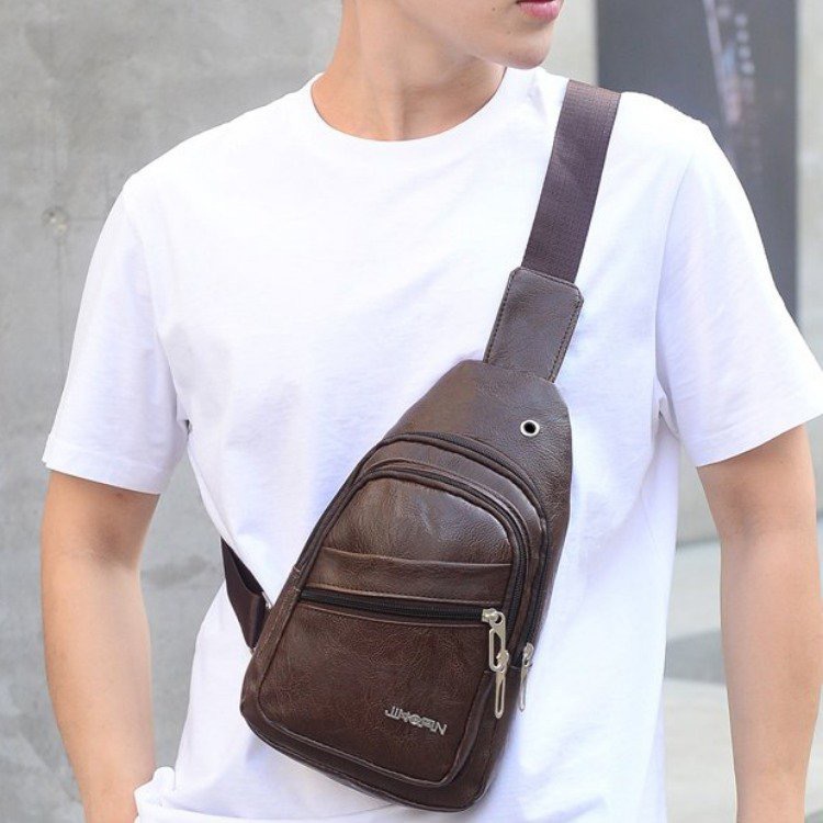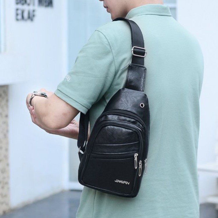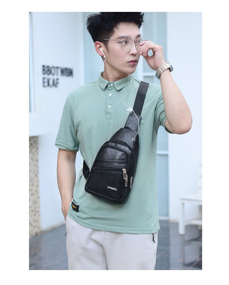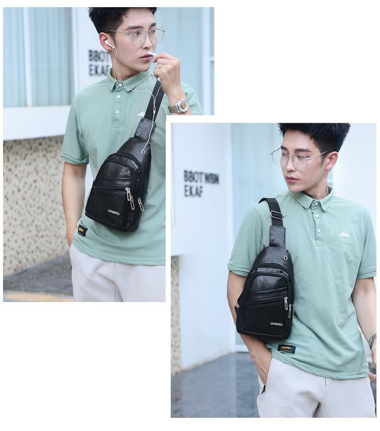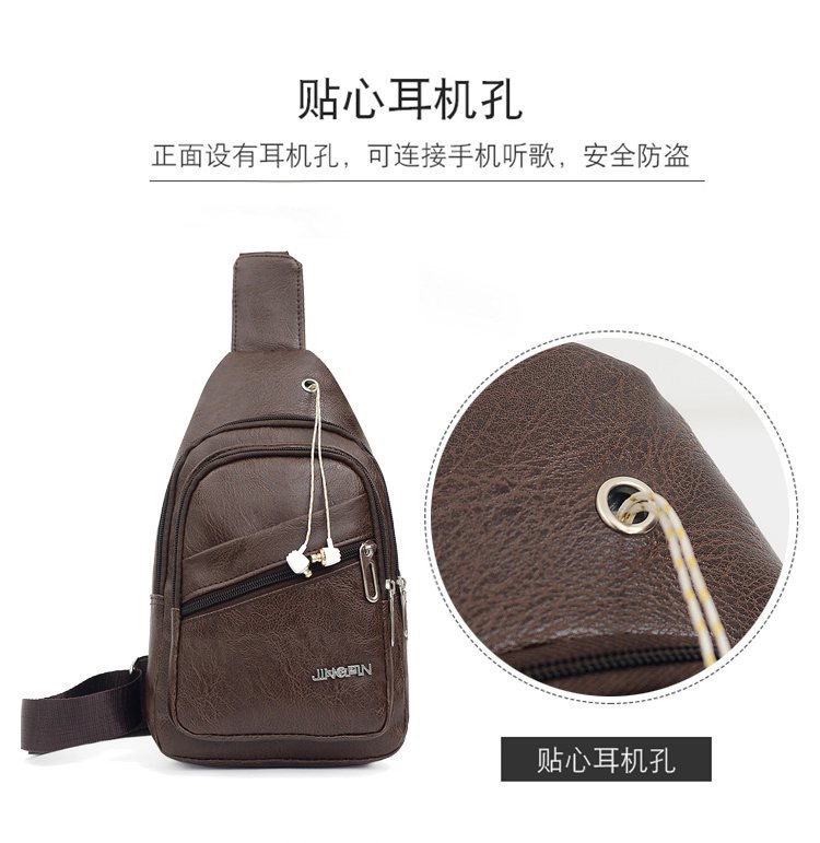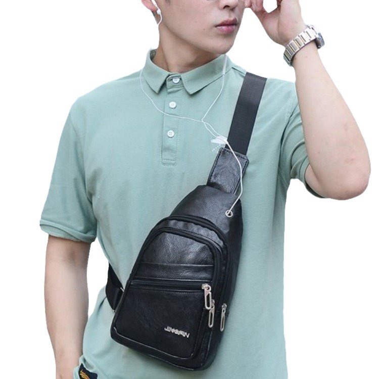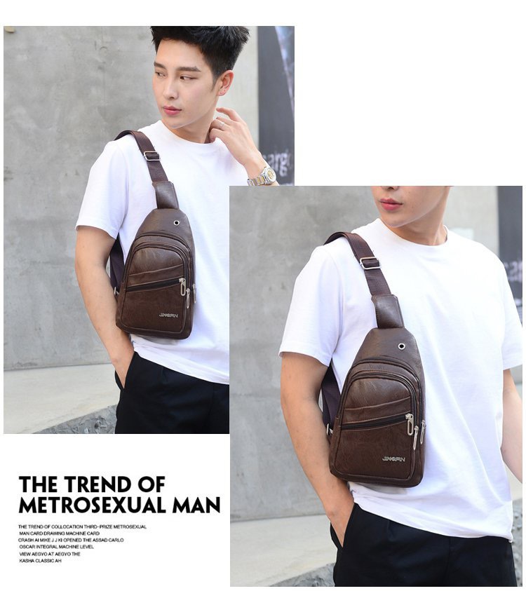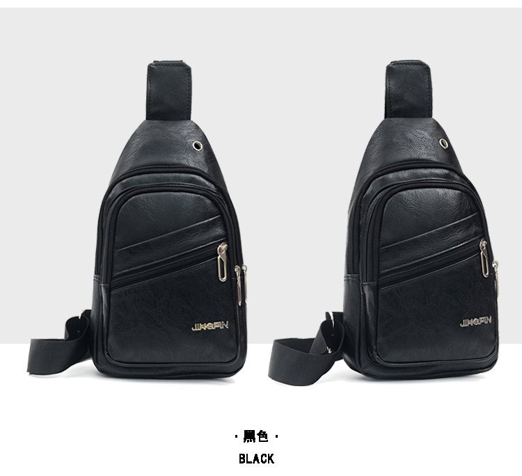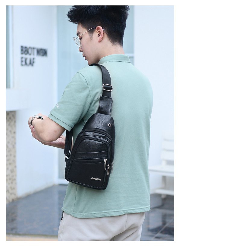 男士胸包双拉链休闲胸包多功能户外大容量斜挎包pu皮单肩斜挎包包